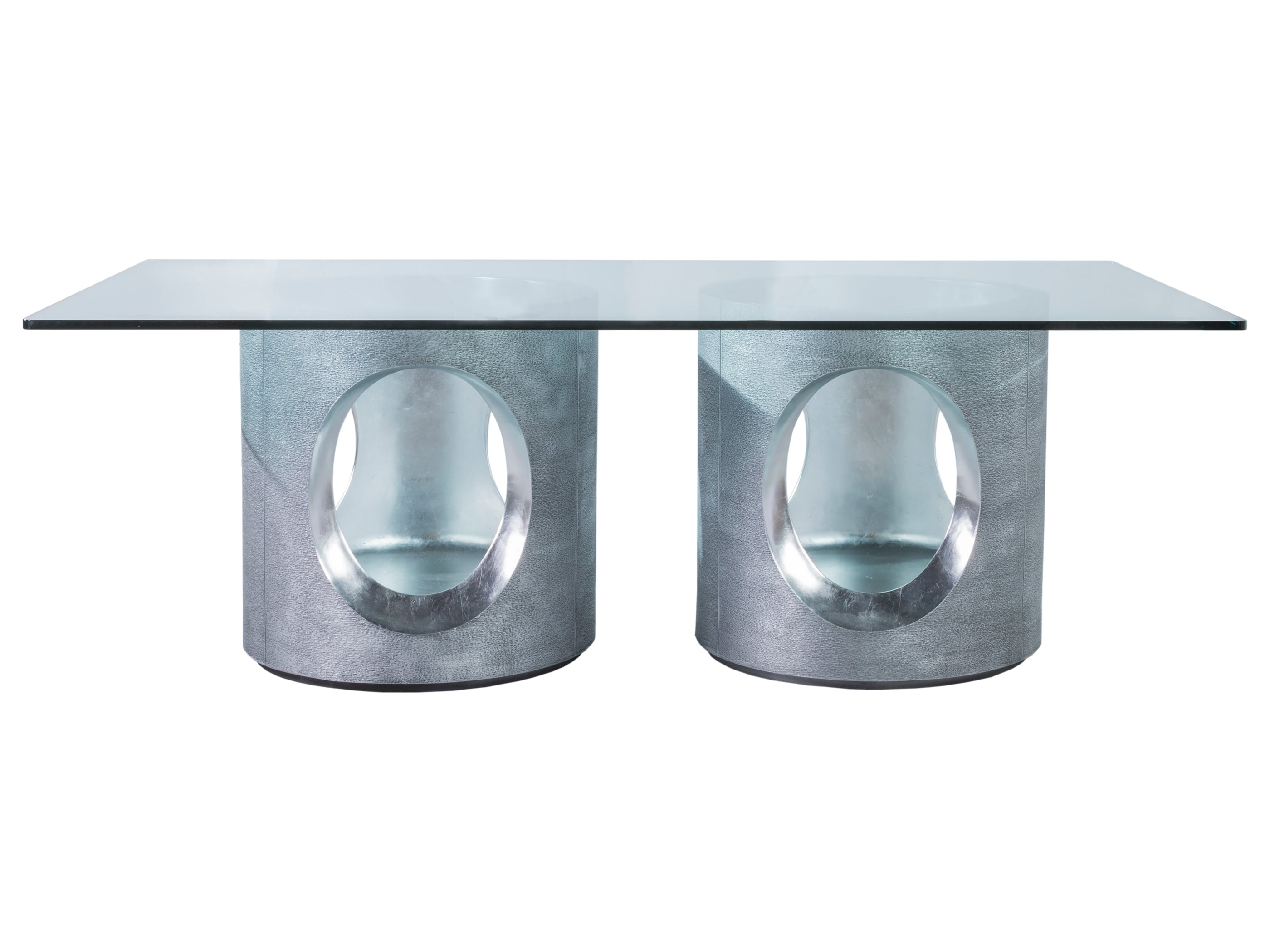 Modern, organic casted design in a textured gray finished exterior with contrasting silver leaf finish in the decorative open area and on the plinth base. Two bases are required for the rectangular glass top. , SIGNATURE DESIGNS ,