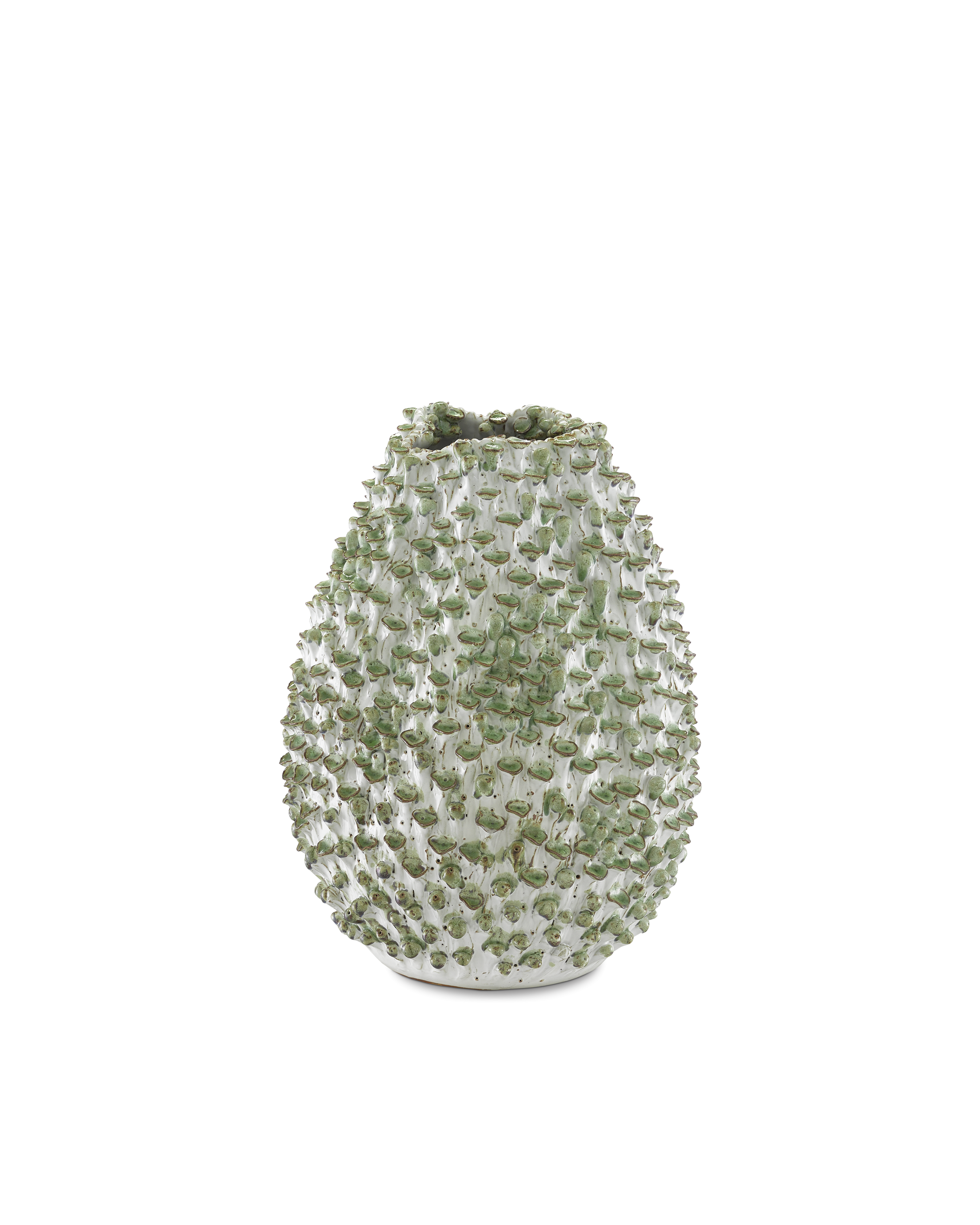 Our Milione Small Green Vase is made by a group of women who live at the border of Burma and Thailand. The black terracotta vase has a white glazing and tiny green leaves, each applied by hand to the side of the vase. This white vase is truly an artisanal piece, as each leaf is hand-glazed with a very subtle green glazing.