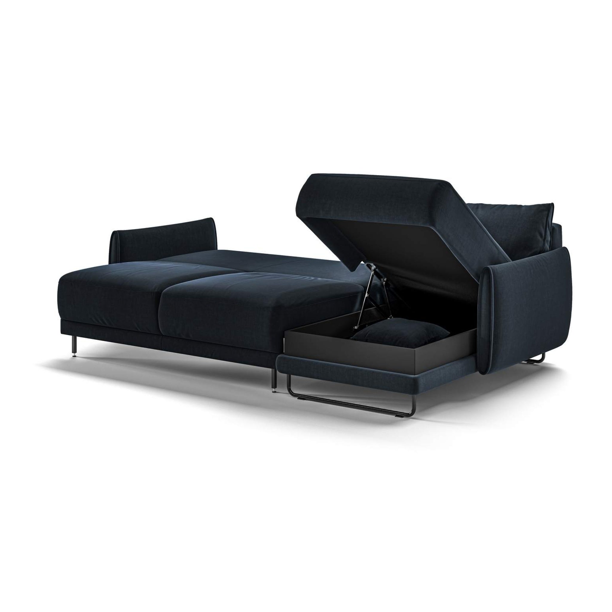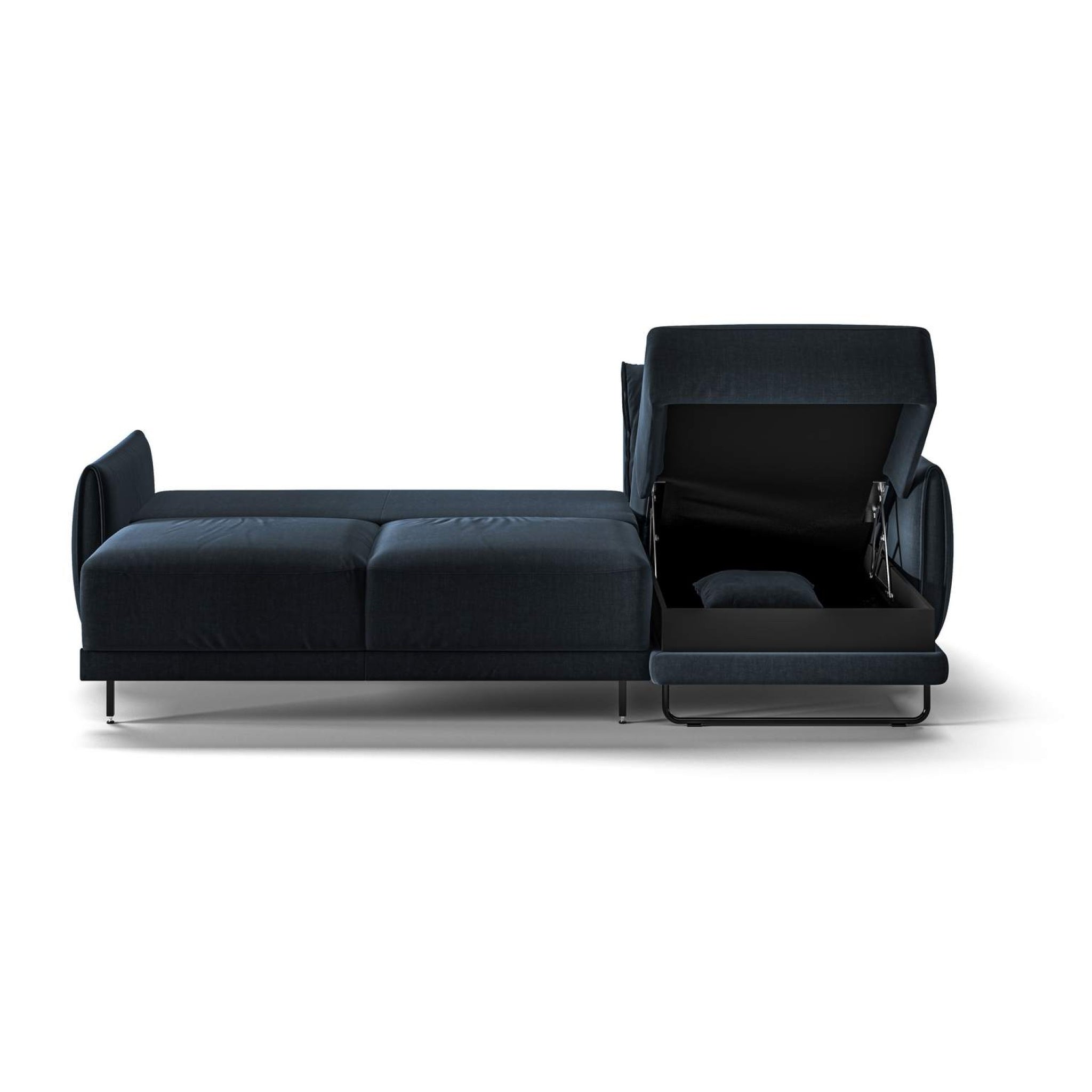 This sectional sleeper offers more function than just a sleeper, with a reversible storage chaise, Insertable Lumbar cushions and a triple chaise.