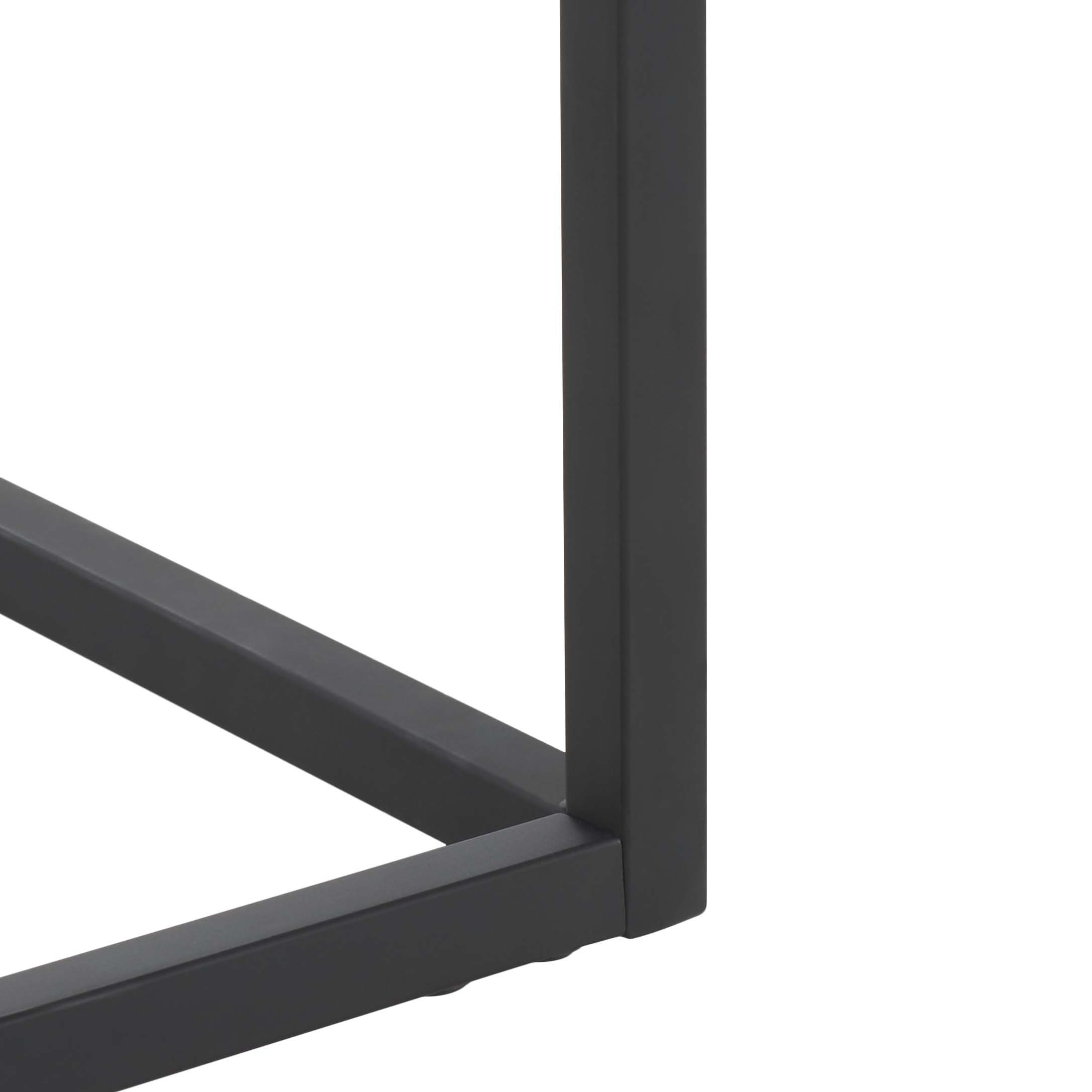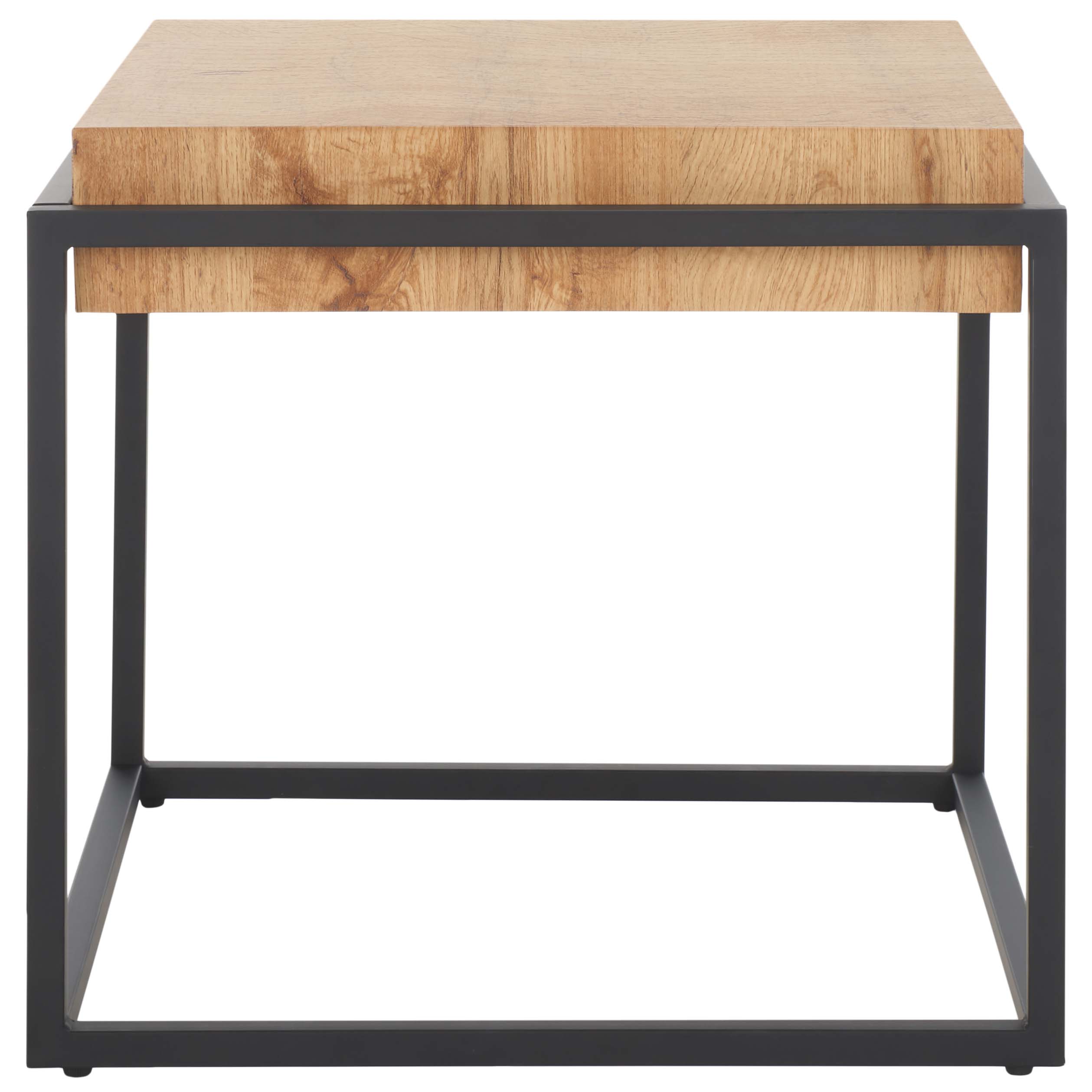 Give a modern and industrial edge to your home with our Edgefield end table. A stunning natural paper veneer top is anchored within a clean-lined rectangular base. The base features a sleek black metallic finish for an inviting industrial edge. Vouching for an airy profile and modernist silhouette, our end table serves as a welcoming and versatile addition to any corner. It brings modern charm to serve as a convenient spot to display and keep your essentials within easy reach.