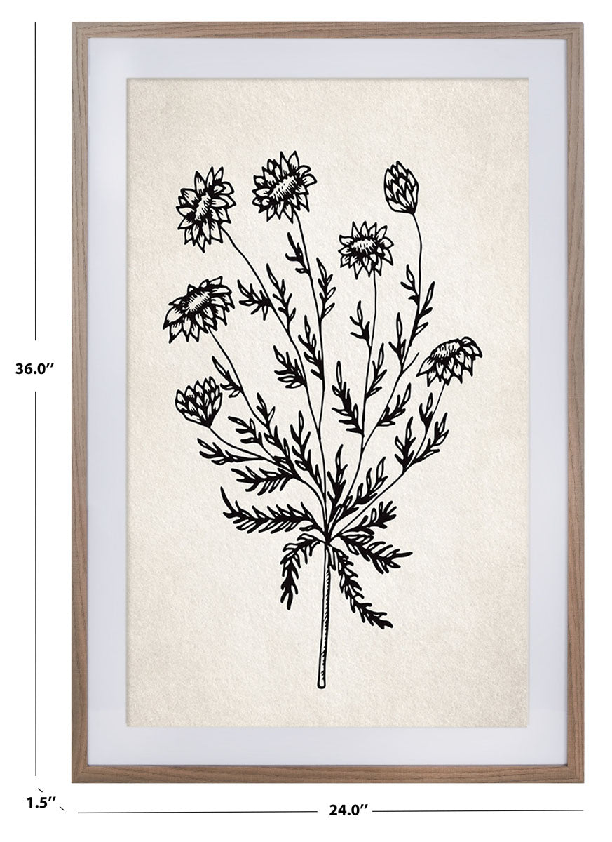 Embrace the simplicity and elegance of modern botanical art with our Fresh Cut Flora framed wall art. The modern and minimalist artwork depicts freshly cut florals in a simple and delicate line drawing. It adorns a monochromatic color scheme in black and ivory to sit easy and gracefully in a variety of settings. Our wall art is finished off with a wooden frame to add a refined touch of nature to your entryway, living area, bedroom, or kitchen.