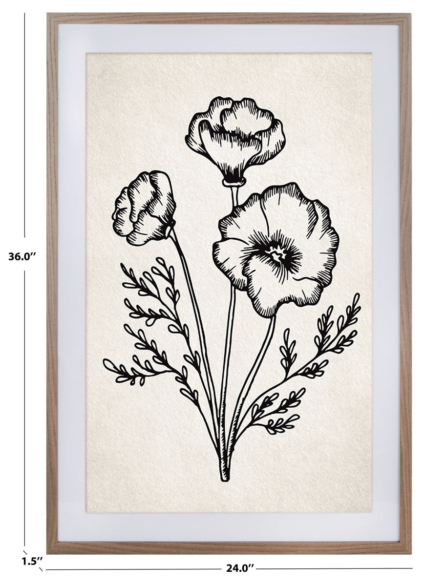 Bring a touch of nature to your home with our minimalist and charming From the Garden framed wall art. A modern take on botanical art, our wall art depicts florals in a simple and refined line drawing. The artwork is rendered in a monochromatic scheme in black and ivory to complement a variety of styles and decor. Finished off with a wooden frame, our wall art presents a simple and elegant way to liven up your entryway, living area, kitchen, or bedroom.