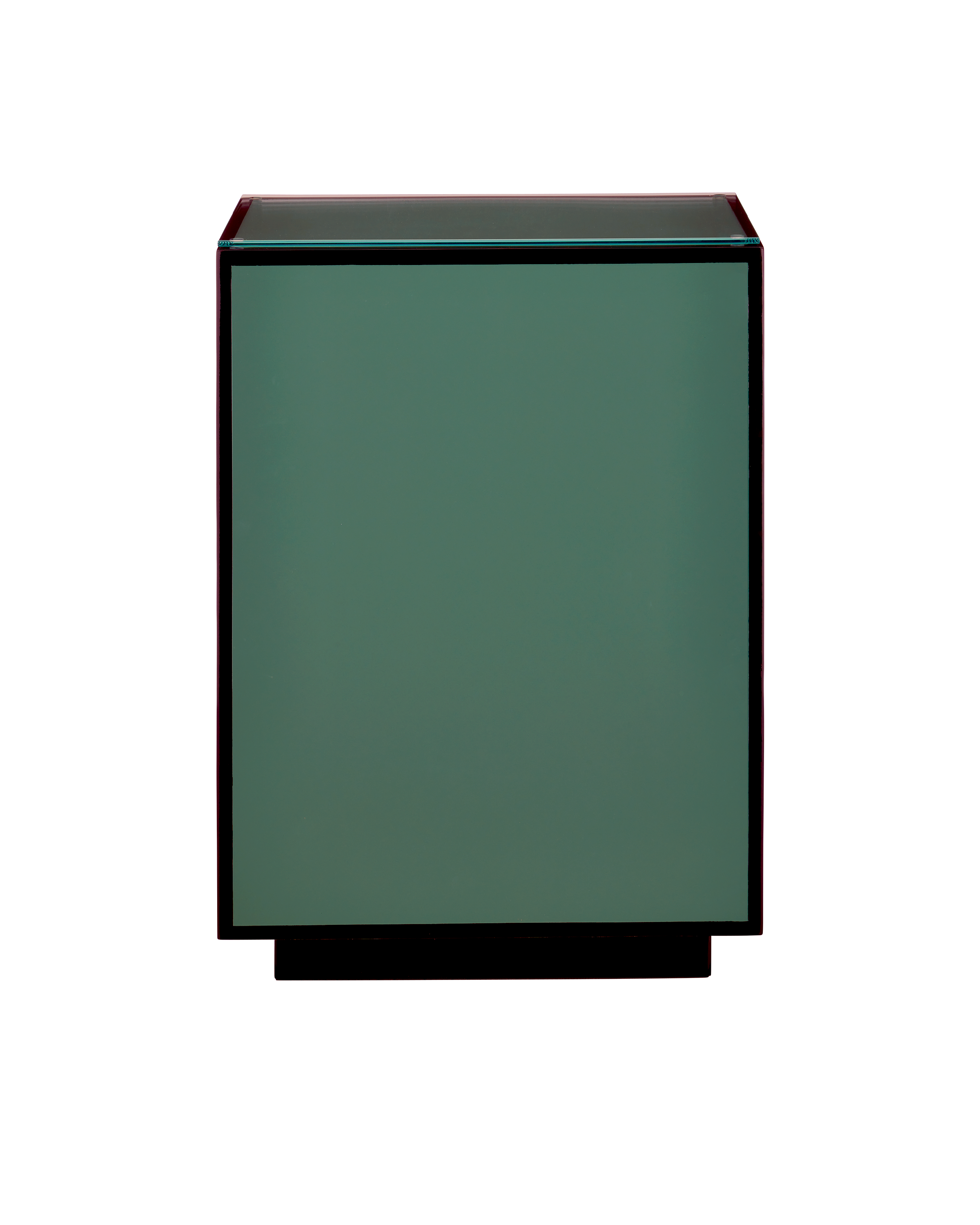 Nothing beats the sheen of lacquer where decorative elements are concerned, as is evident in the sleek surfaces of the Green Lacquer Side Table. Made of wood, the accent table has been covered in the time-honored lacquer process. The luxe green surfaces are rimmed in rich black, and the top is fitted with a square of tempered glass. The plinth base is a design feature of note.