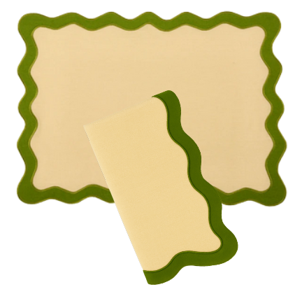 Hampton Tan & Moss Green Trim Placemat & Napkin