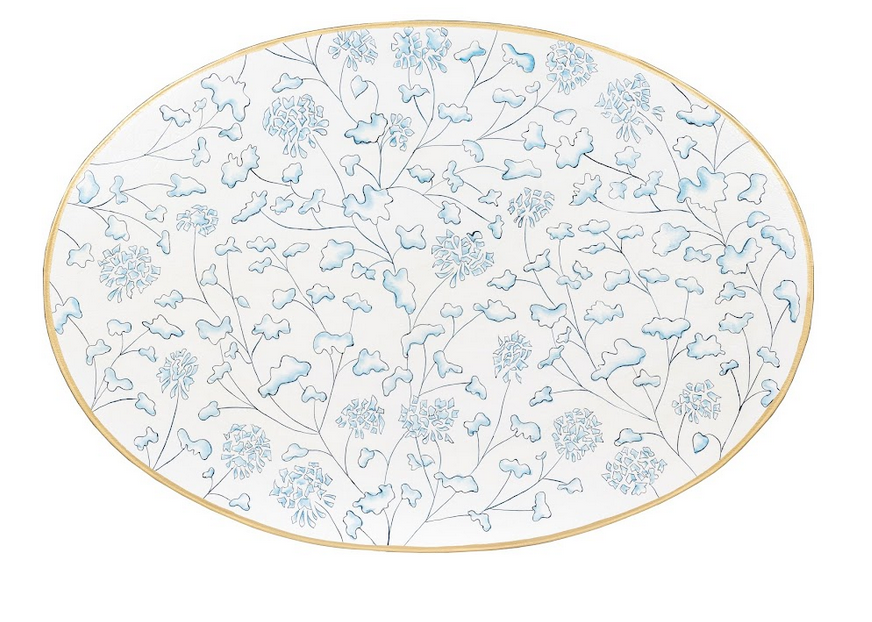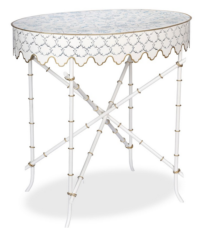 Ivory & Blue Trellis Oval Scalloped Table
