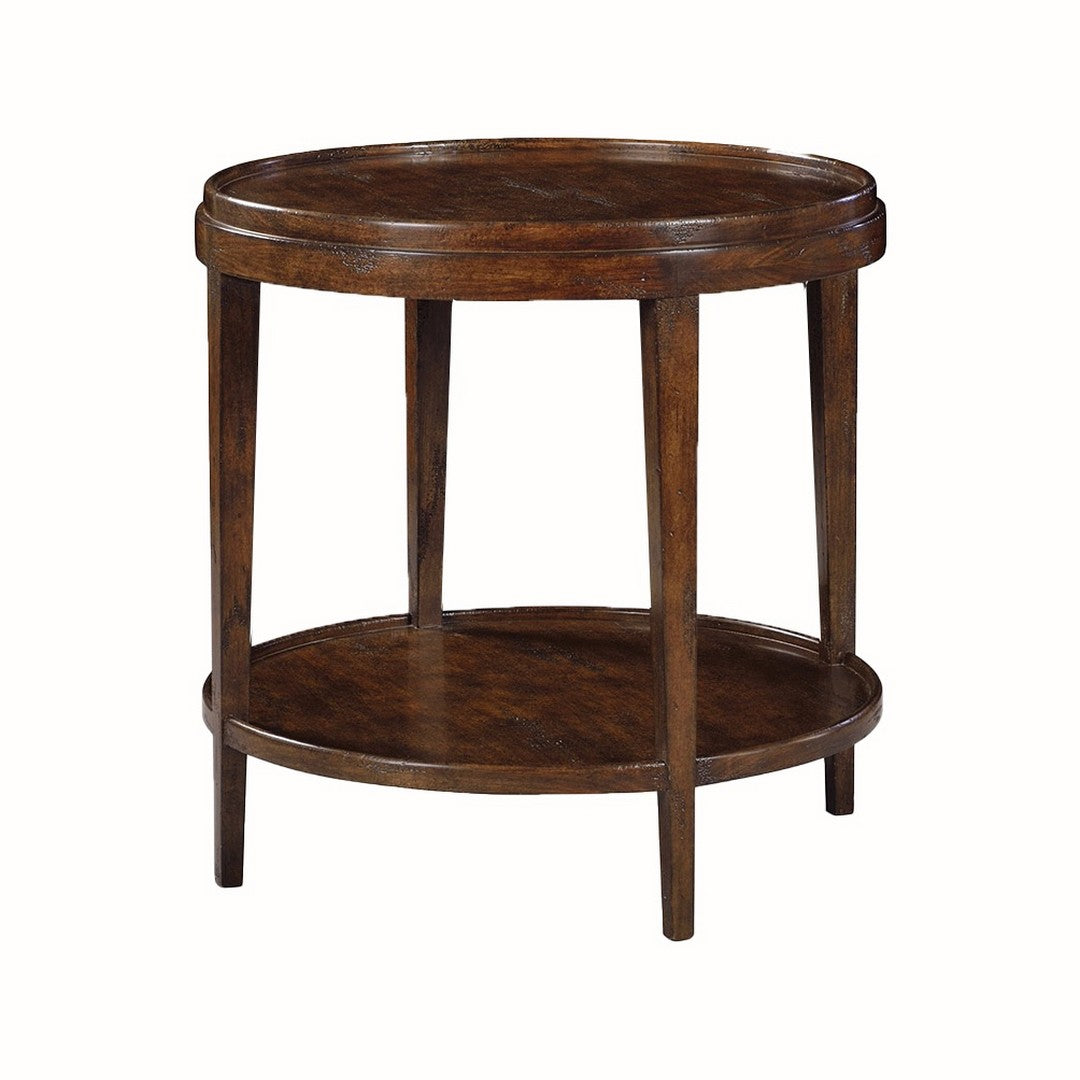Our Liz Side Table features a round, lip top and shelf and tapered legs