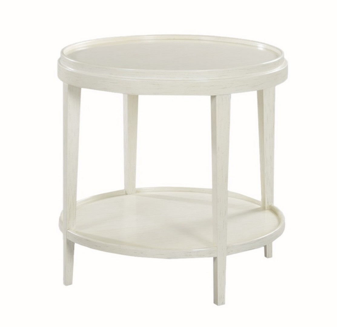 Our Liz Side Table features a round, lip top and shelf and tapered legs