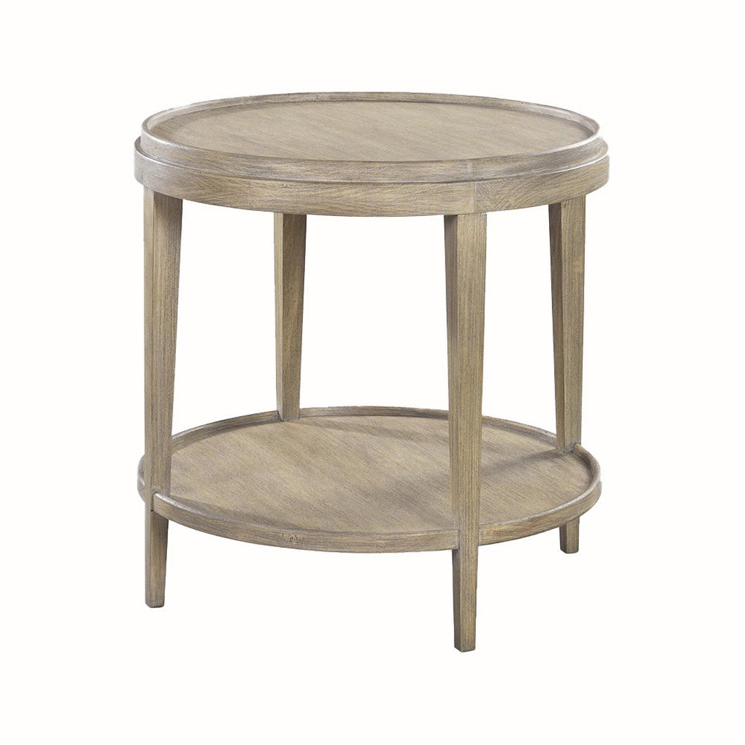 Our Liz Side Table features a round, lip top and shelf and tapered legs