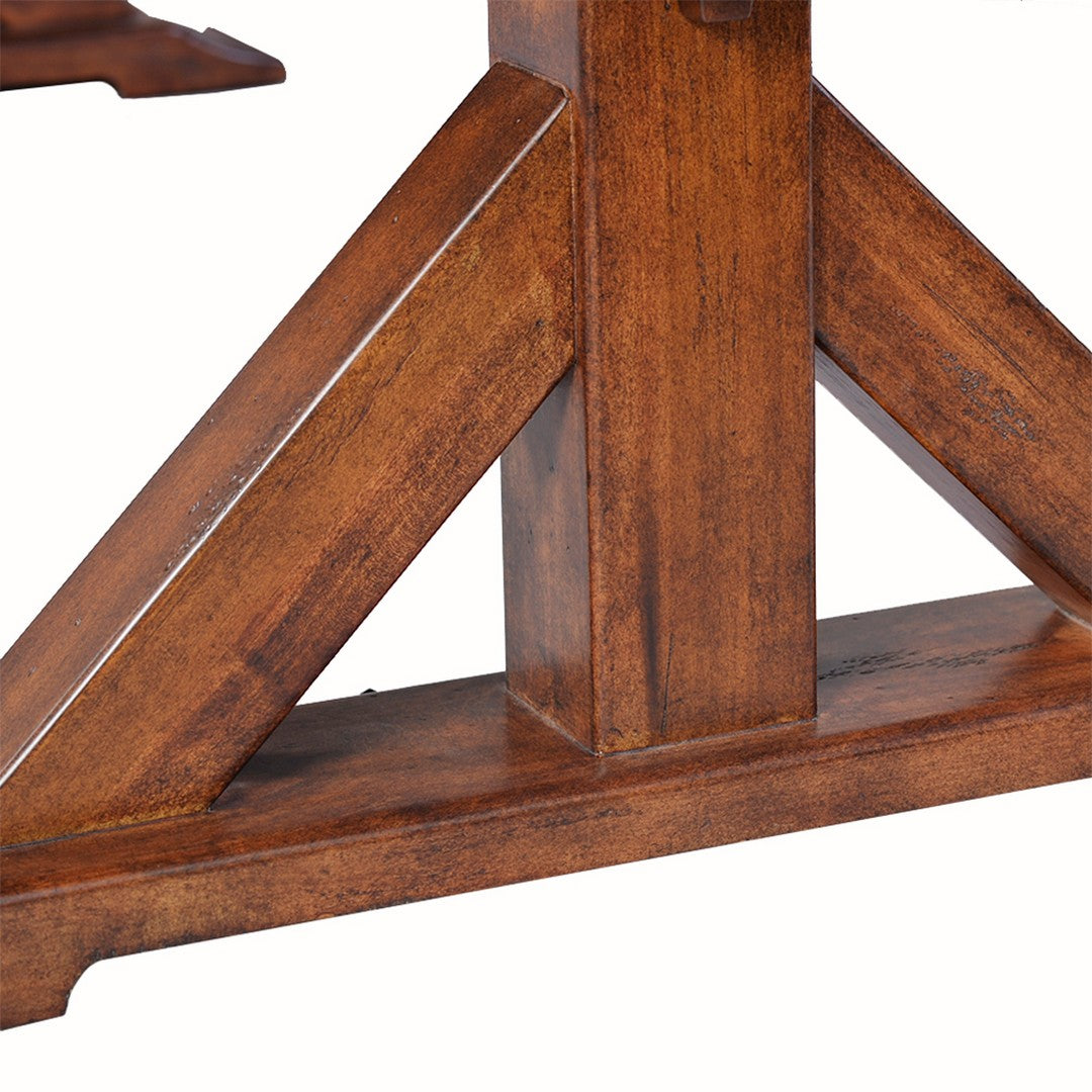 Our Madison Dining Table features a smooth top and top edge, two “K” shaped bases, and a trestle stretcher.