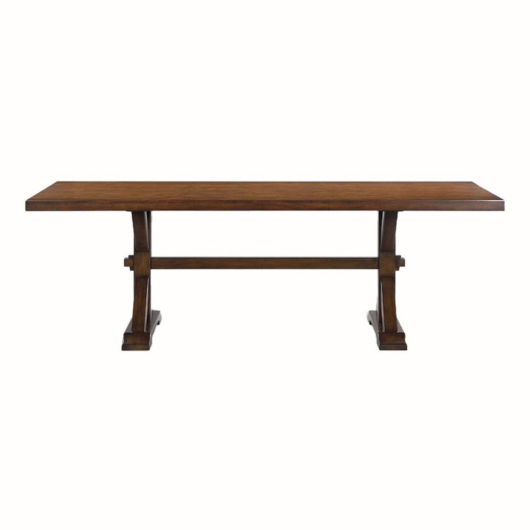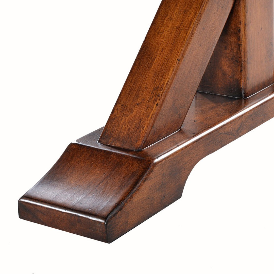 Our Madison Dining Table features a smooth top and top edge, two “K” shaped bases, and a trestle stretcher.