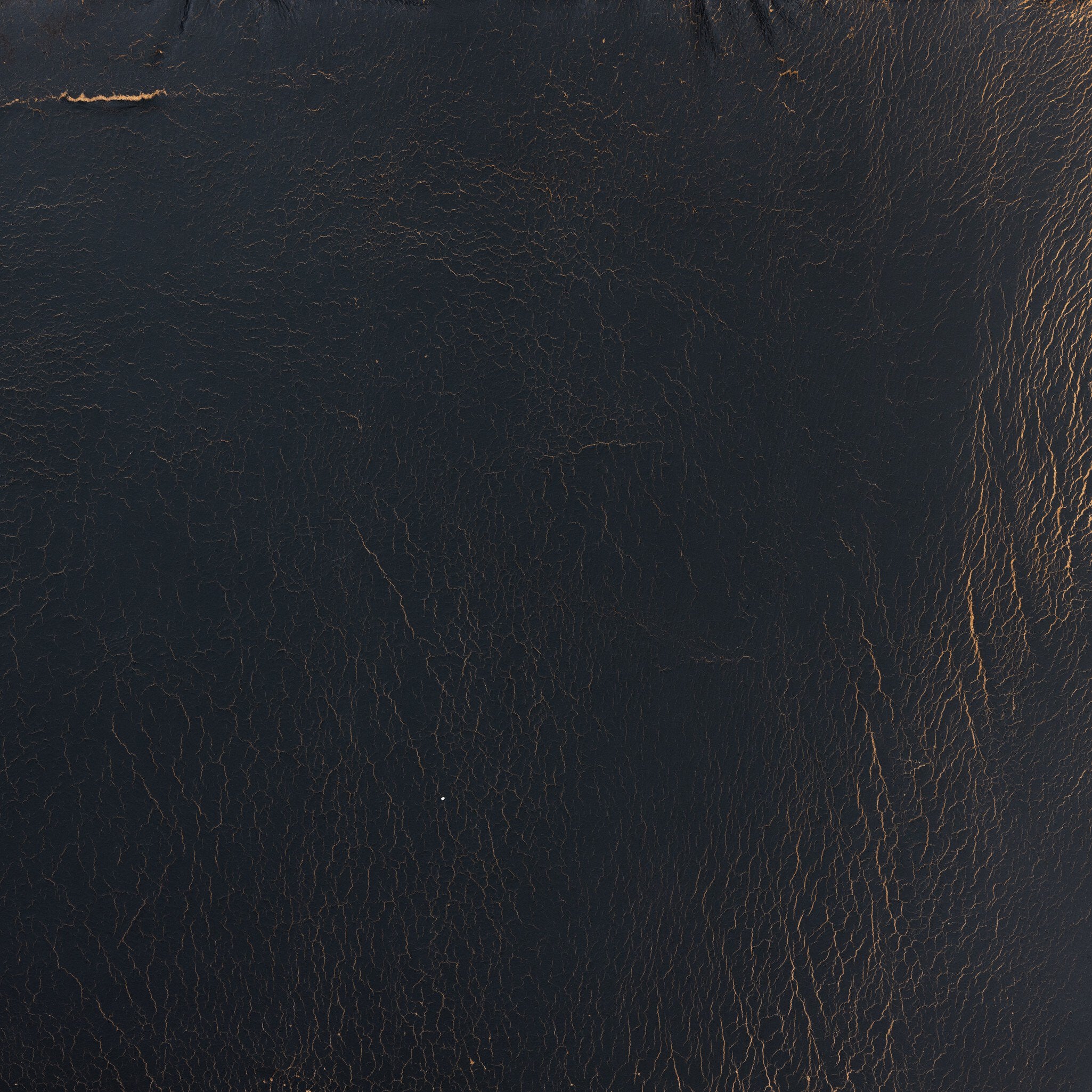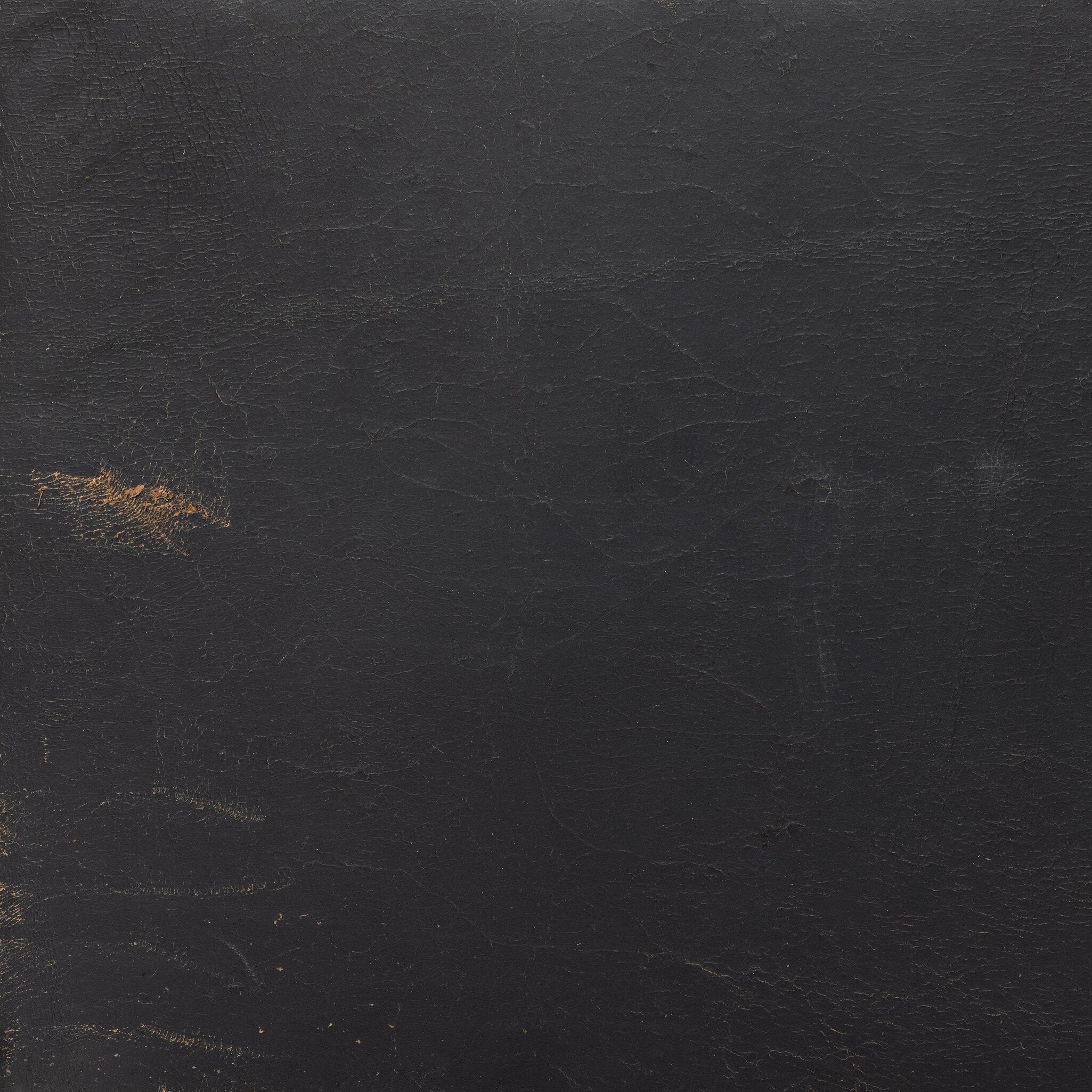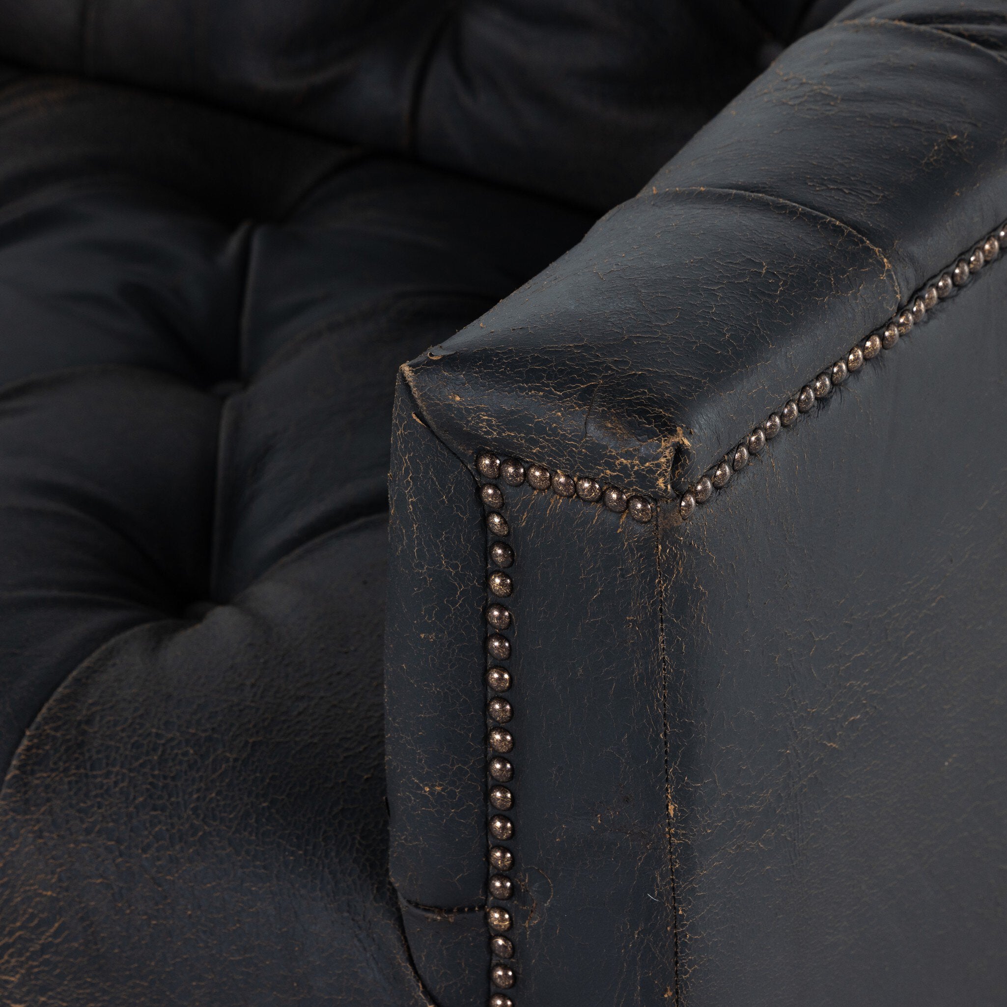 A modern take on the classic library sofa. Covered in black top-grain leather and finished with a specially designed formula that creates intentional cracking and distressing for a naturally aged look. Mounted on a weathered oak base and finished with aged bronze nailheads.