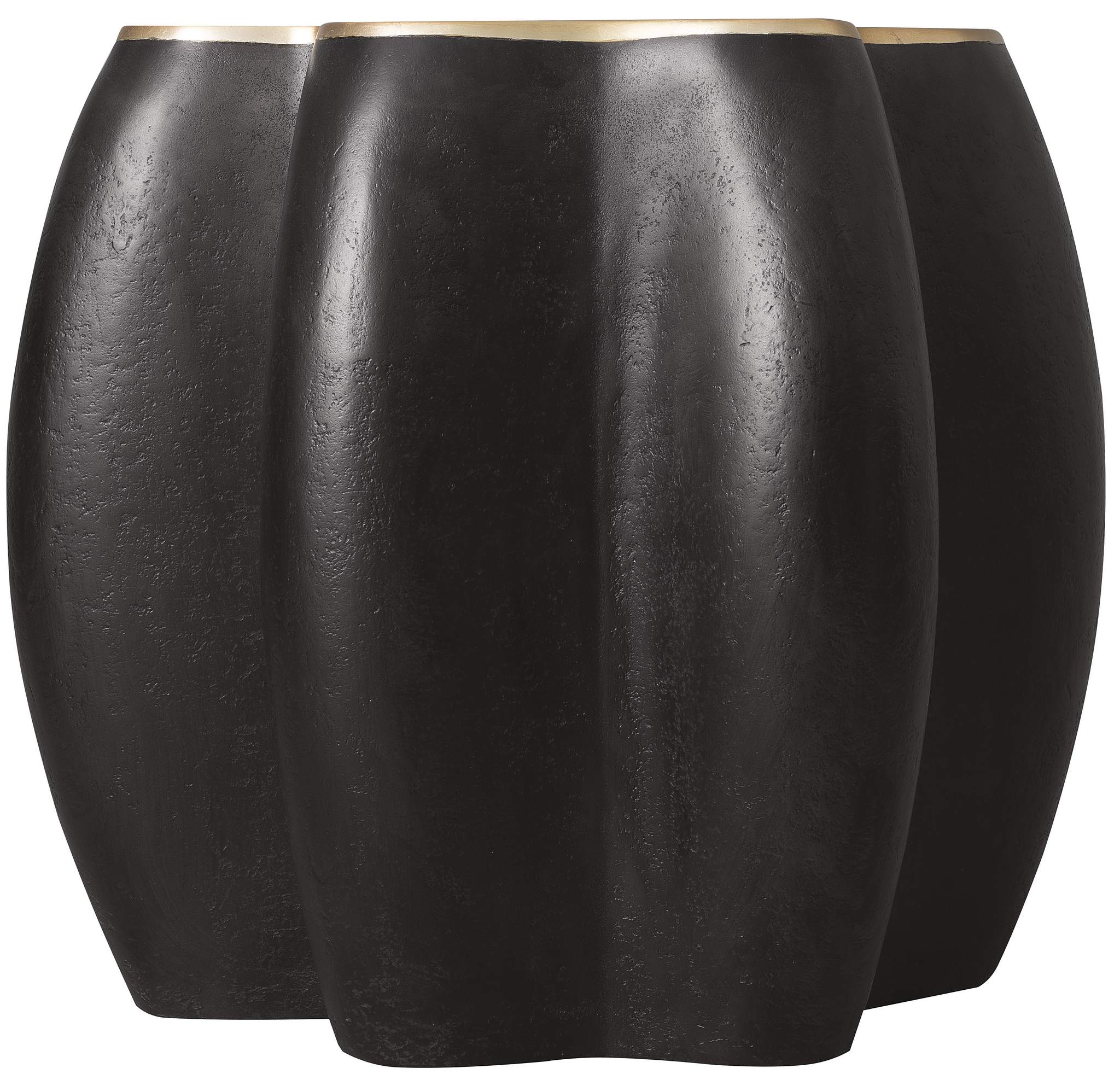 Organic in form and luxe in material, the Even and Flow End Table features a gold-leaf top with inset glass and a rich black sculptural base. A true showpiece for transitional or eclectic interiors.