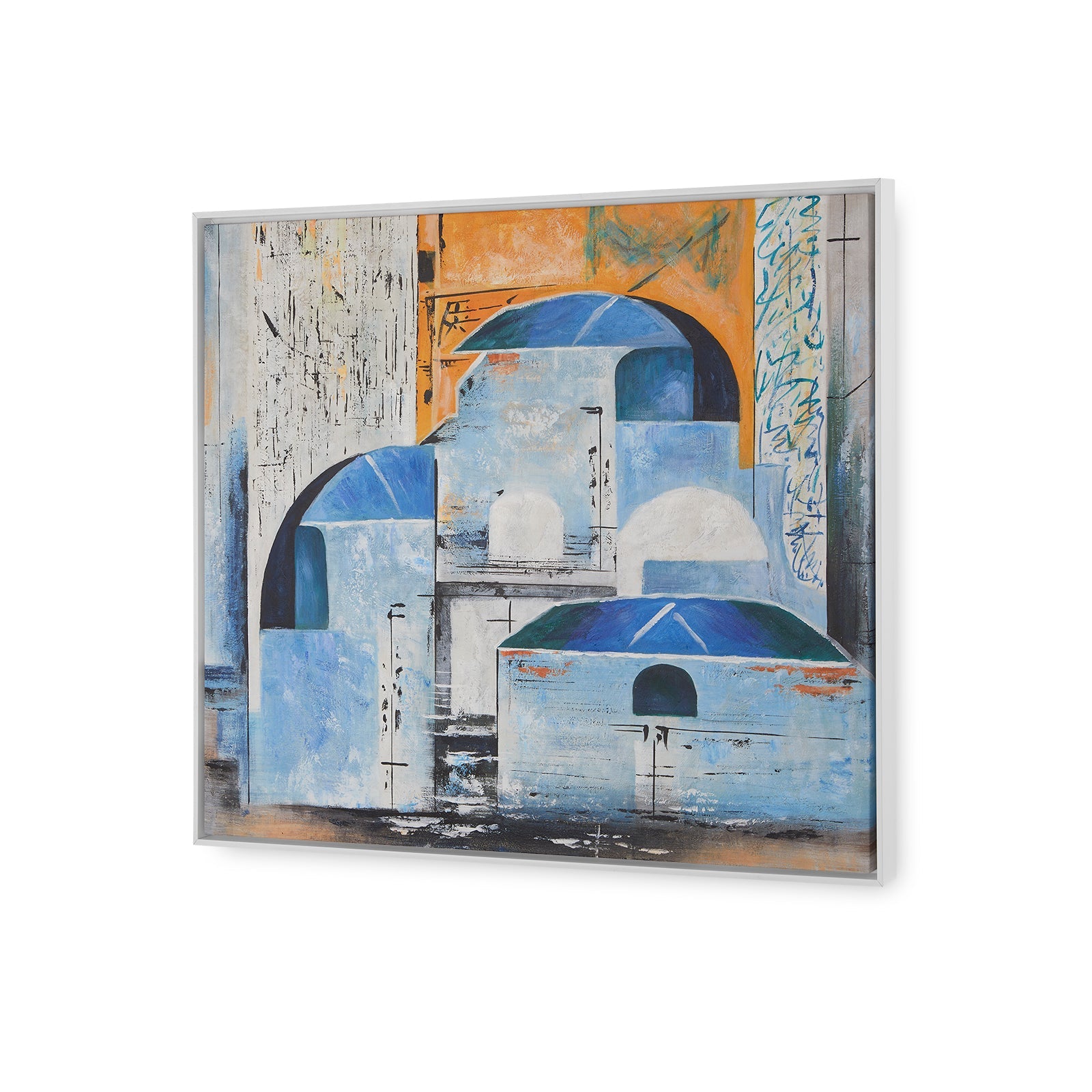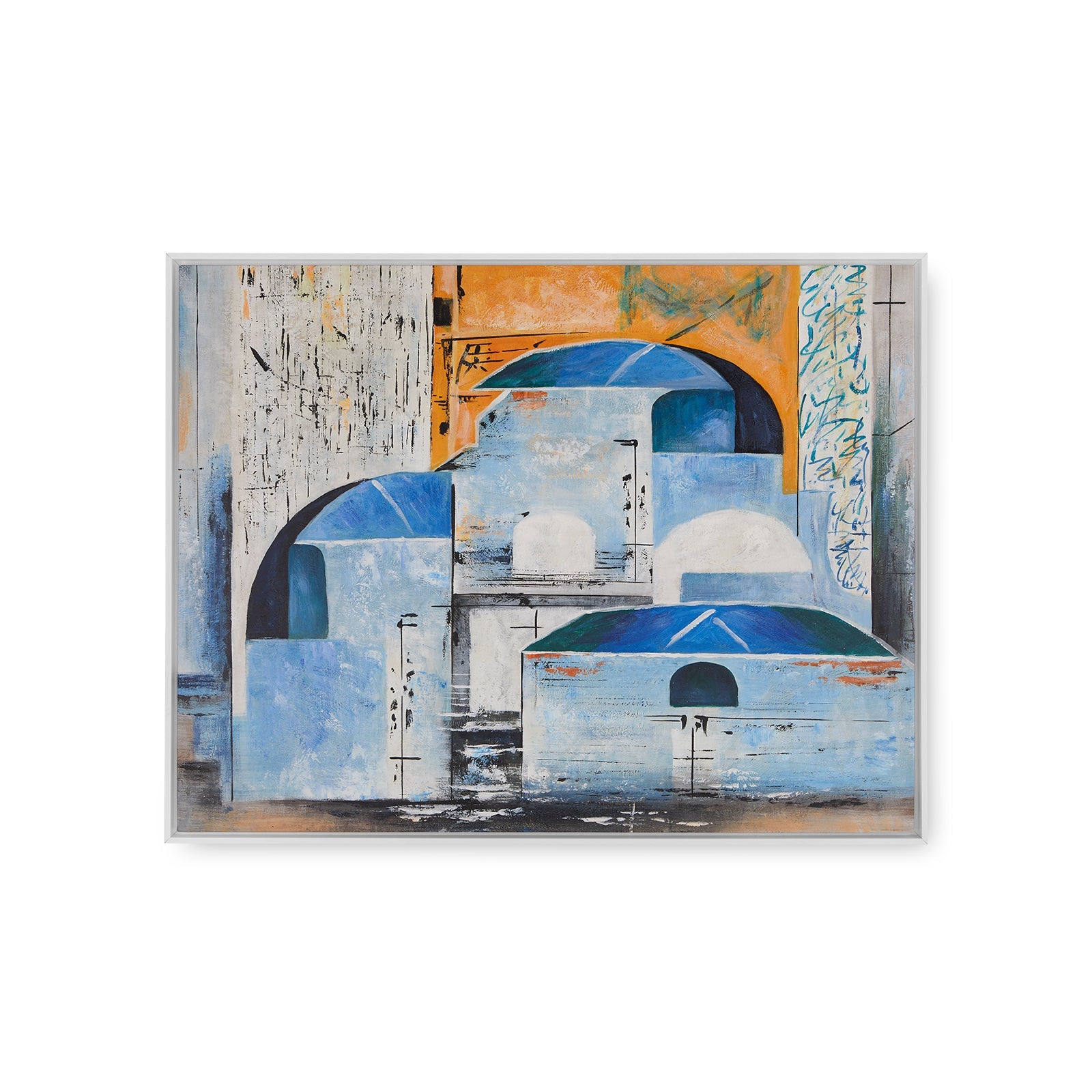 The Reggio Framed Canvas is a hand-painted abstract that captures the spirit of sun-soaked travels and ancient landscapes. Reminiscent of an impressionist postcard, its layered geometry and warm, earthy hues evoke weathered stone, sunlit facades, and architectural fragments from distant lands. The interplay of form and color radiates warmth and nostalgia, offering a sense of place without depicting a specific scene. Framed for a clean, gallery-ready presentation, this piece brings texture, light, and a worldly sensibility to any interior.