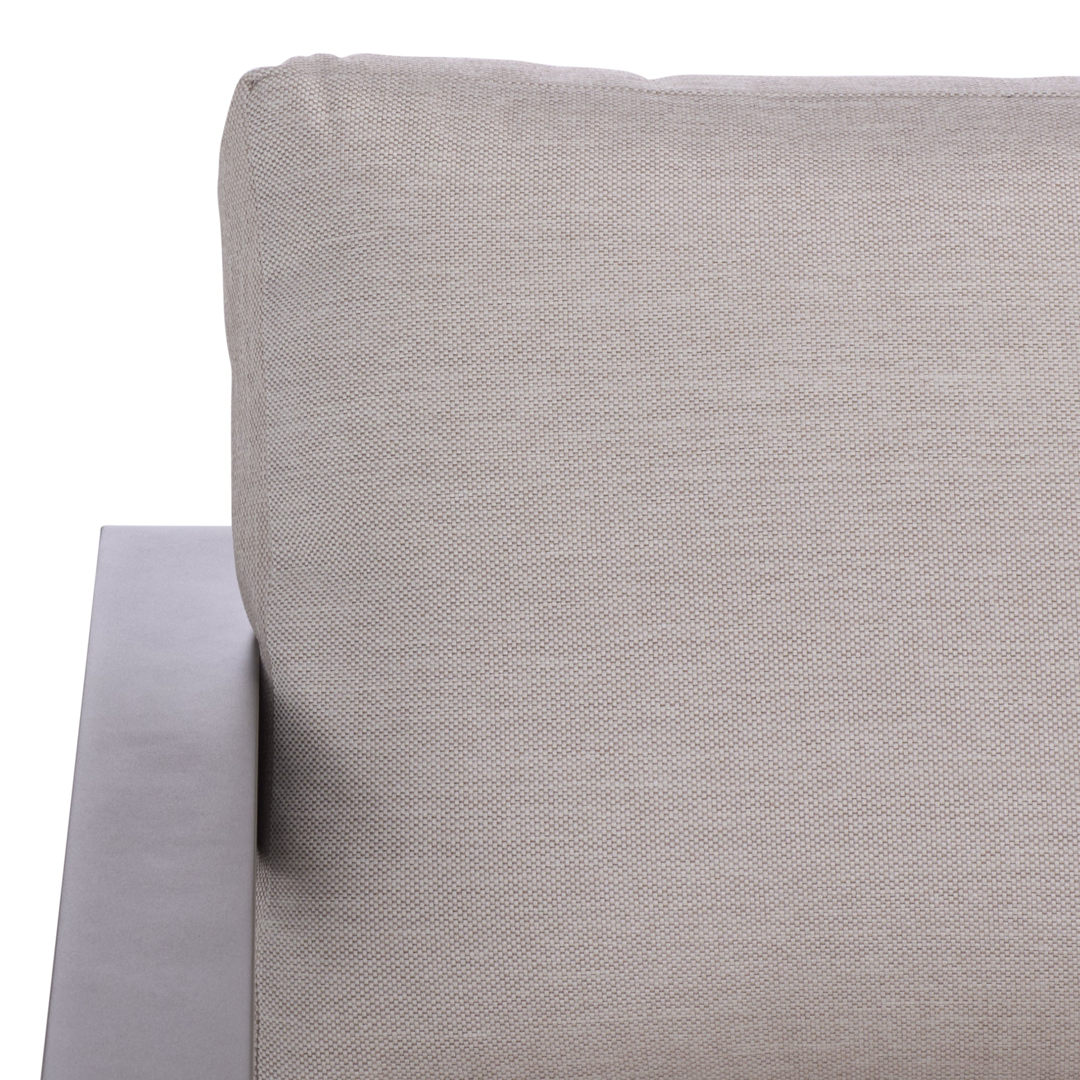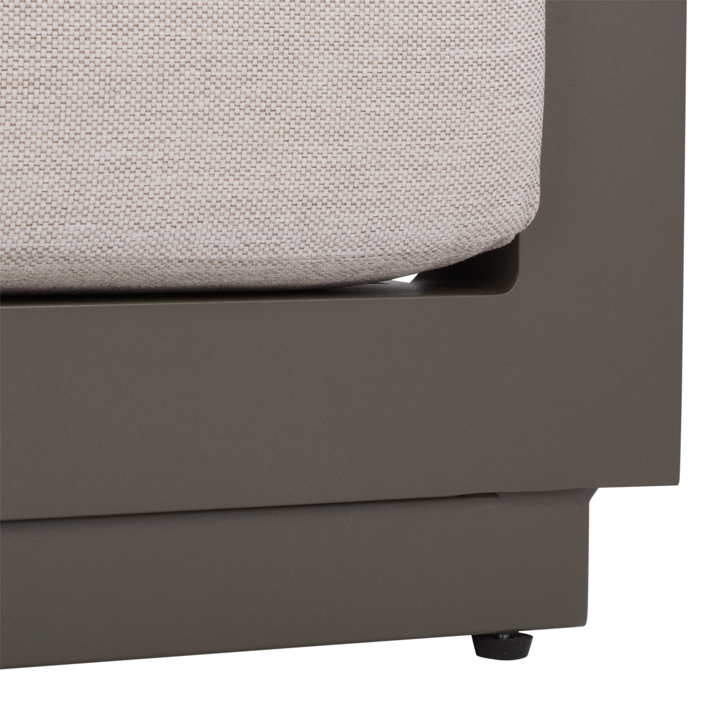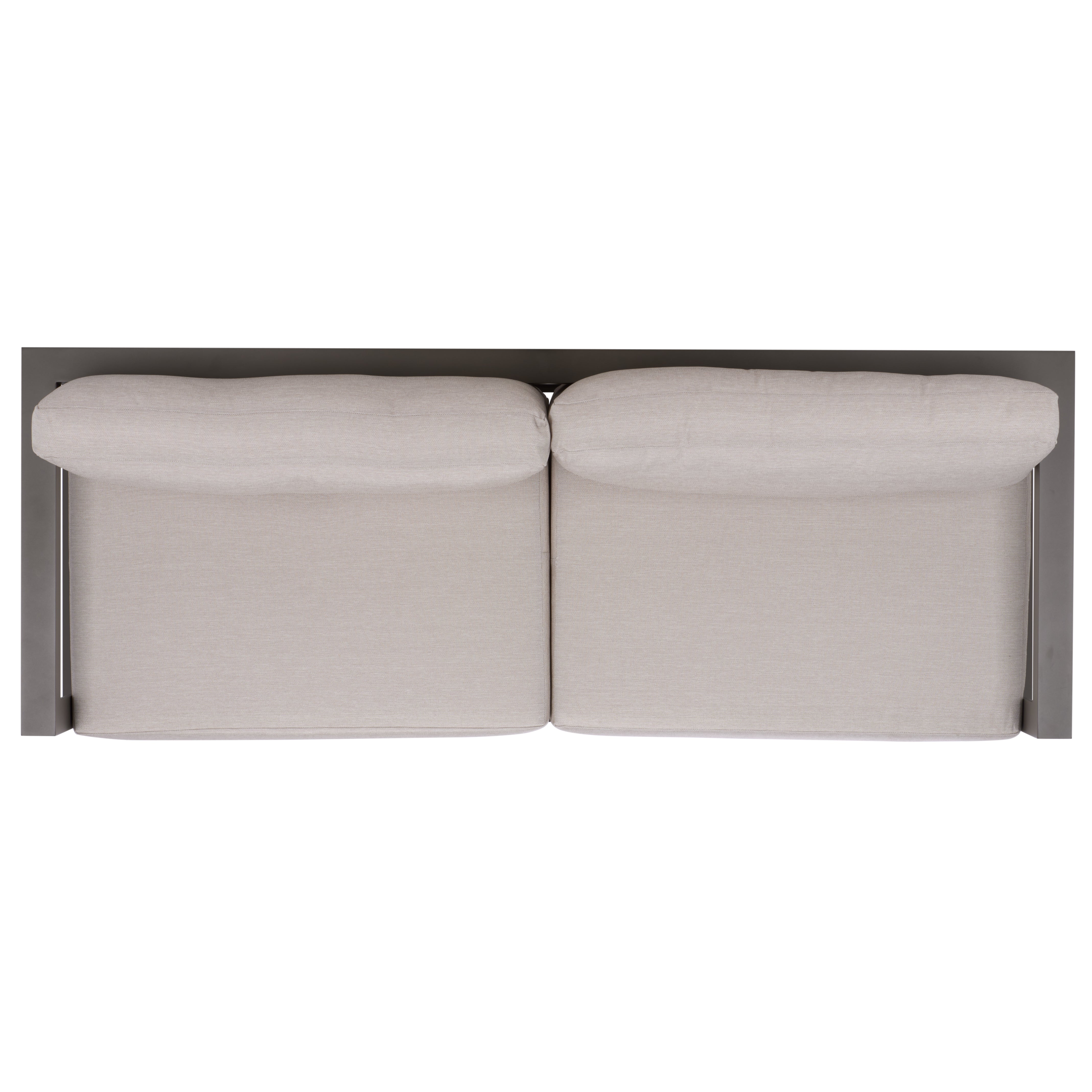 Introducing the Donaldo aluminum outdoor sofa, a blend of style and comfort tailored for your patio or garden. Crafted with a sleek dark grey metal frame, it offers a modern flair to any outdoor setting. Complementing its sturdy build are plush beige cushions made from quality fabric and foam that promise comfort during your leisure time.