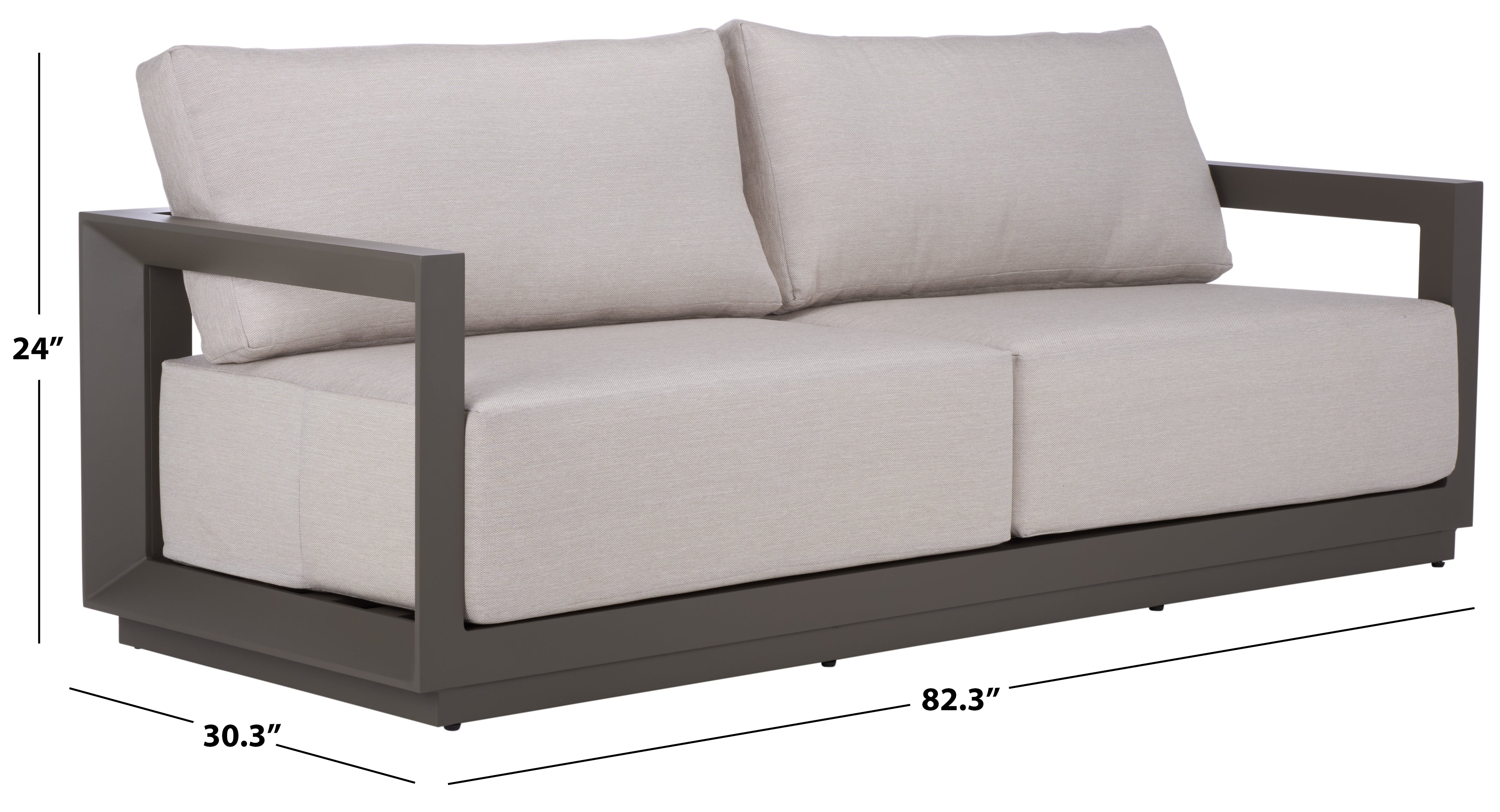 Donaldo Aluminum Outdoor Sofa | Safavieh Couture - CPT4011 - DARK GREY / BEIGE / 82.3" X 30.3" X 24" is backordered and will ship as soon as it is back in stock.