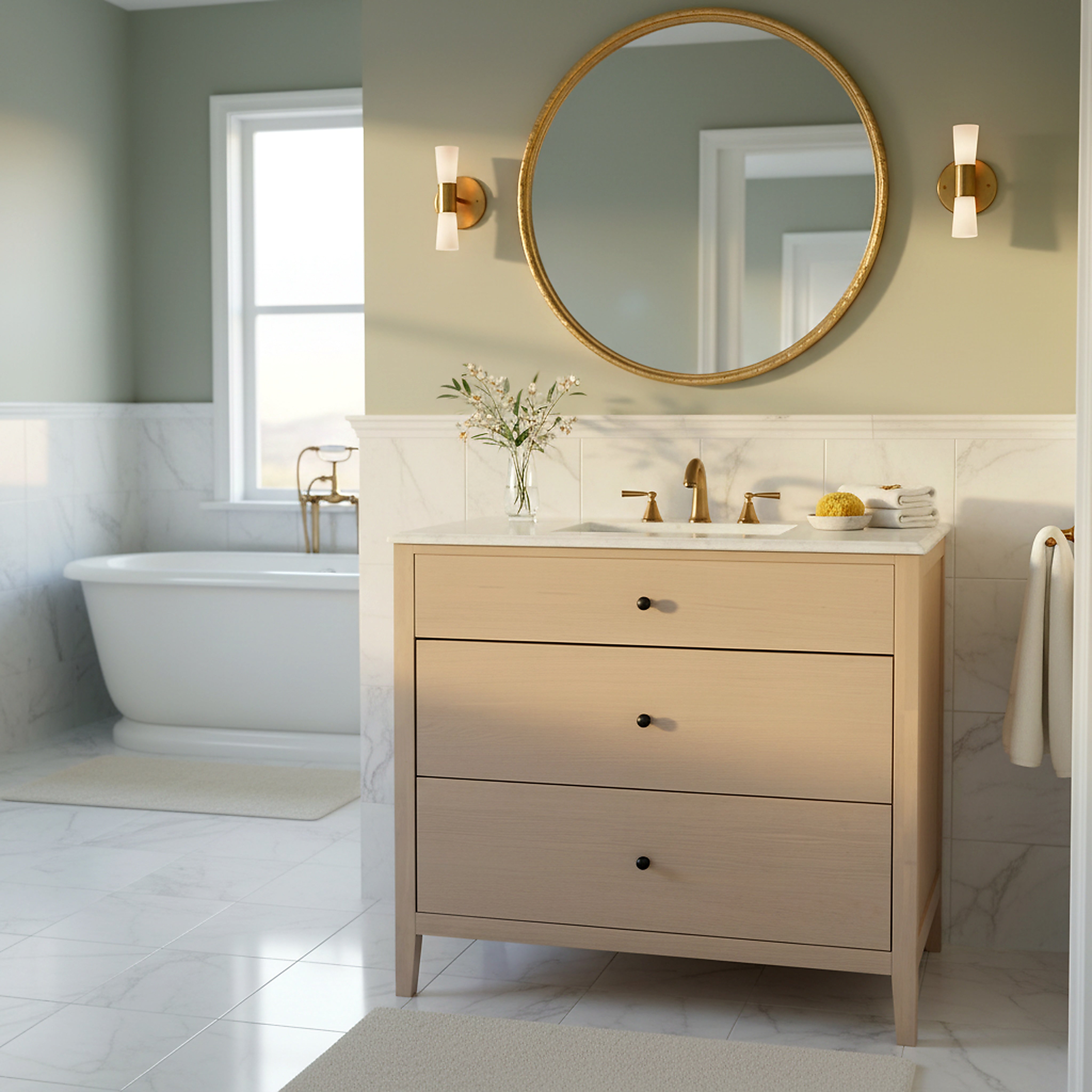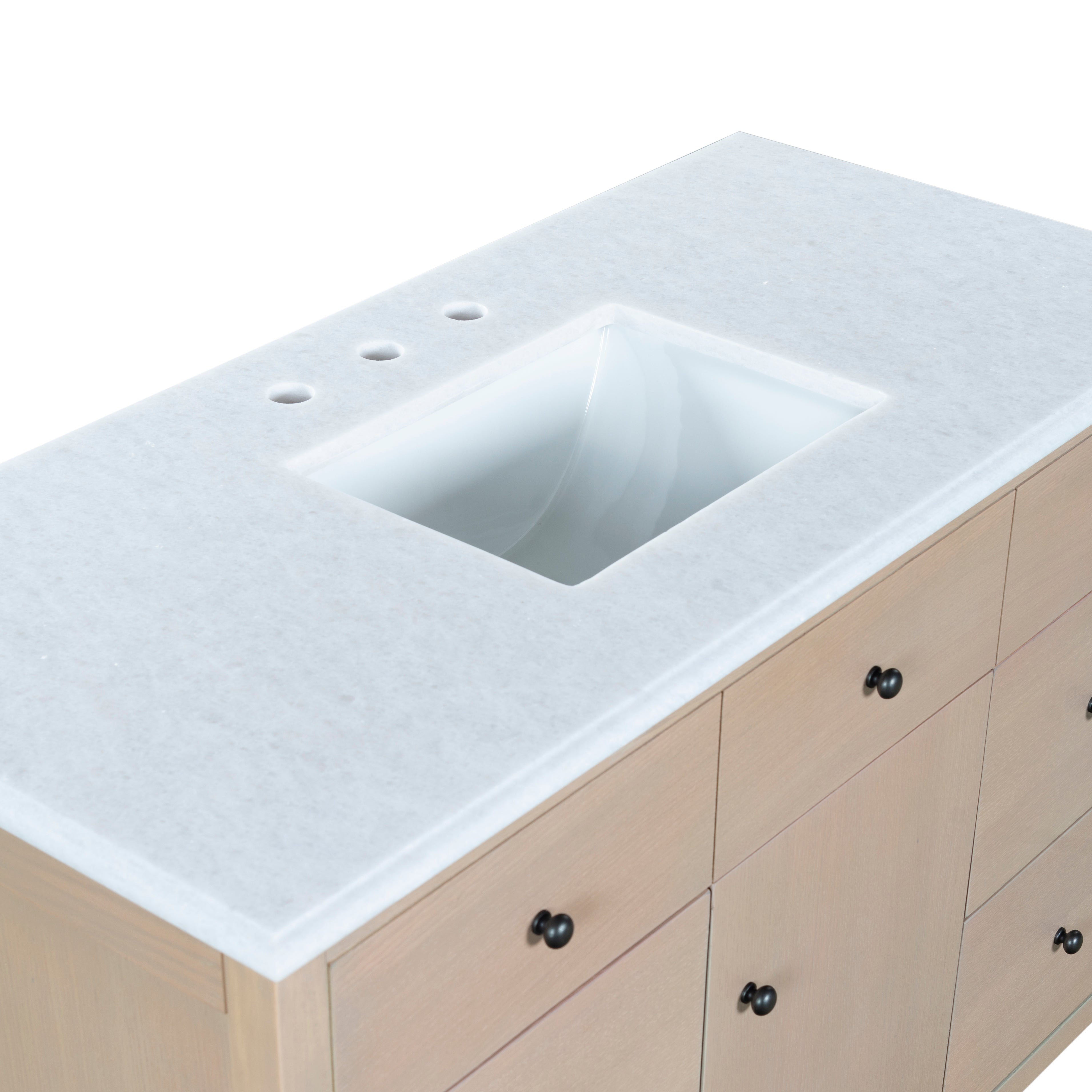 Transform your bathroom with the OLIVIABELLA vanity in natural and white. This elegant piece effortlessly combines style and function. Its natural wood finish offers a warm and inviting feel, expertly complementing the pristine white tones of the marble top. The ceramic sink enhances the sophisticated design, providing a sleek and smooth surface for daily use. Designed to fit seamlessly into a variety of decor styles, this vanity exudes a timeless charm that adds depth and character to any space. The spacious countertop and ample storage options keep your essentials organized and within easy reach, making your morning routine more enjoyable. Embrace practicality and beauty with the OLIVIABELLA vanity, where every element has been thoughtfully curated to elevate your living experience. Go beyond the usual and bring home this exquisite piece that reflects a perfect blend of modern aesthetics and classic details. Revitalize your bathroom with grace and functionality today.