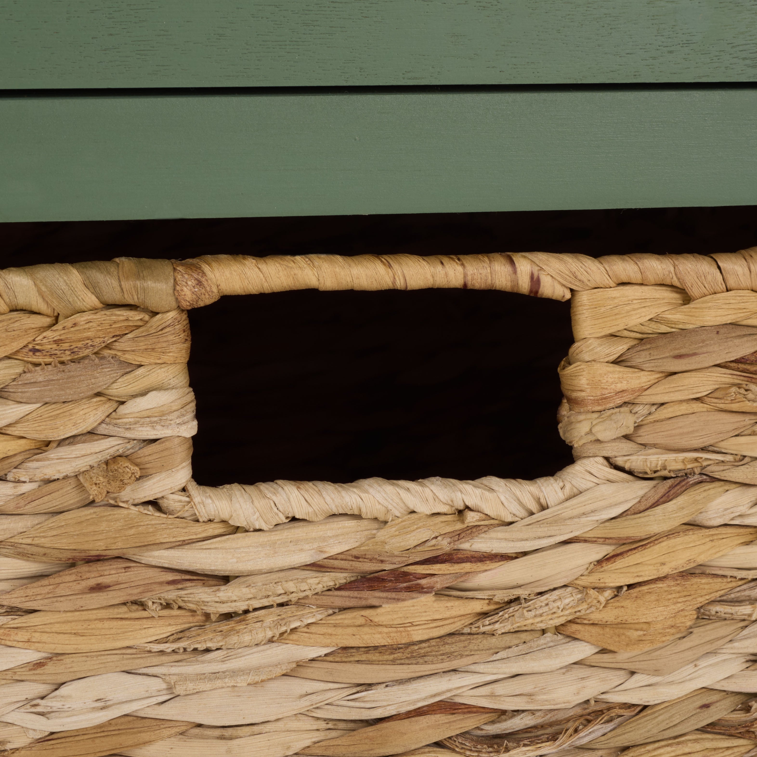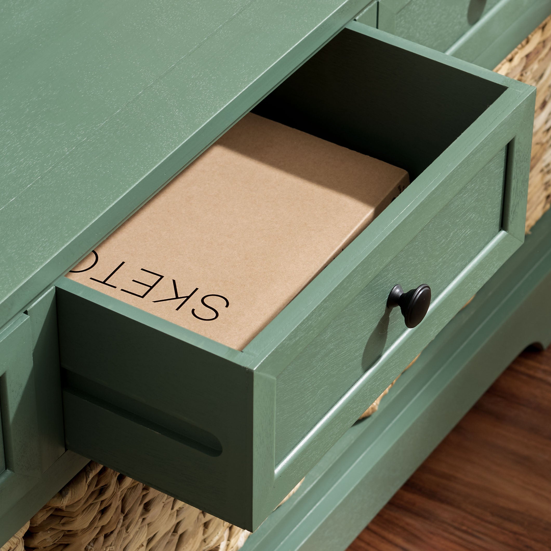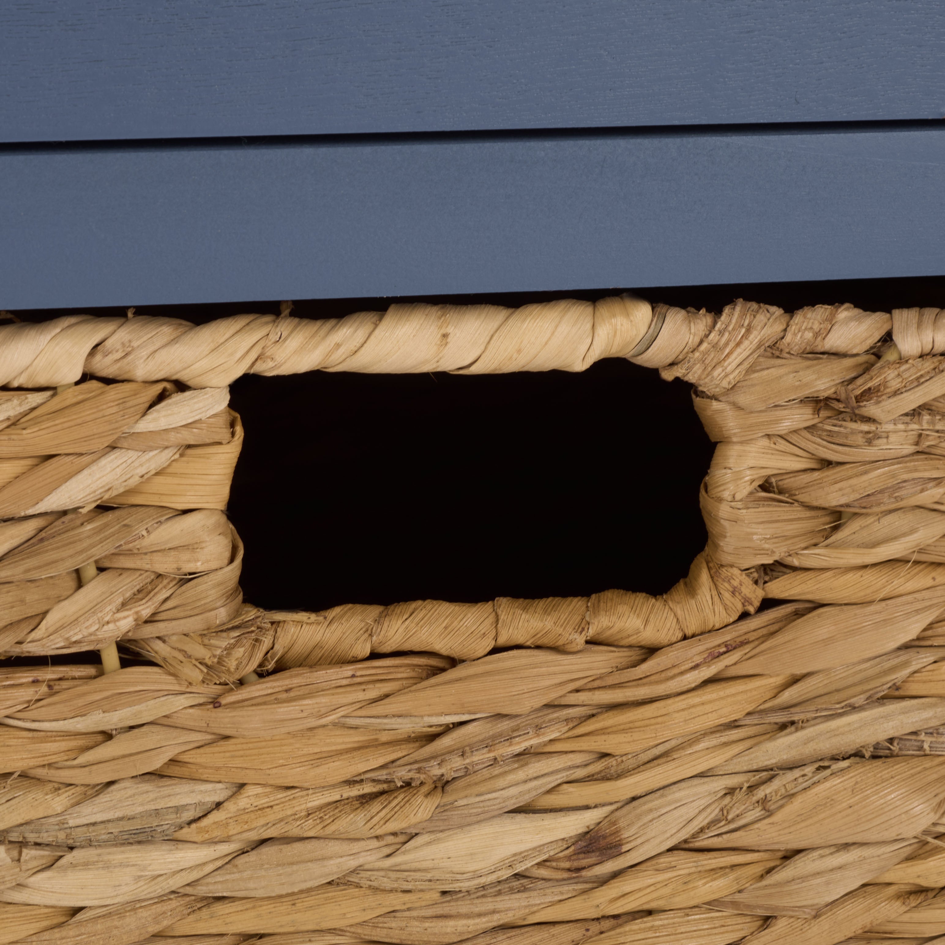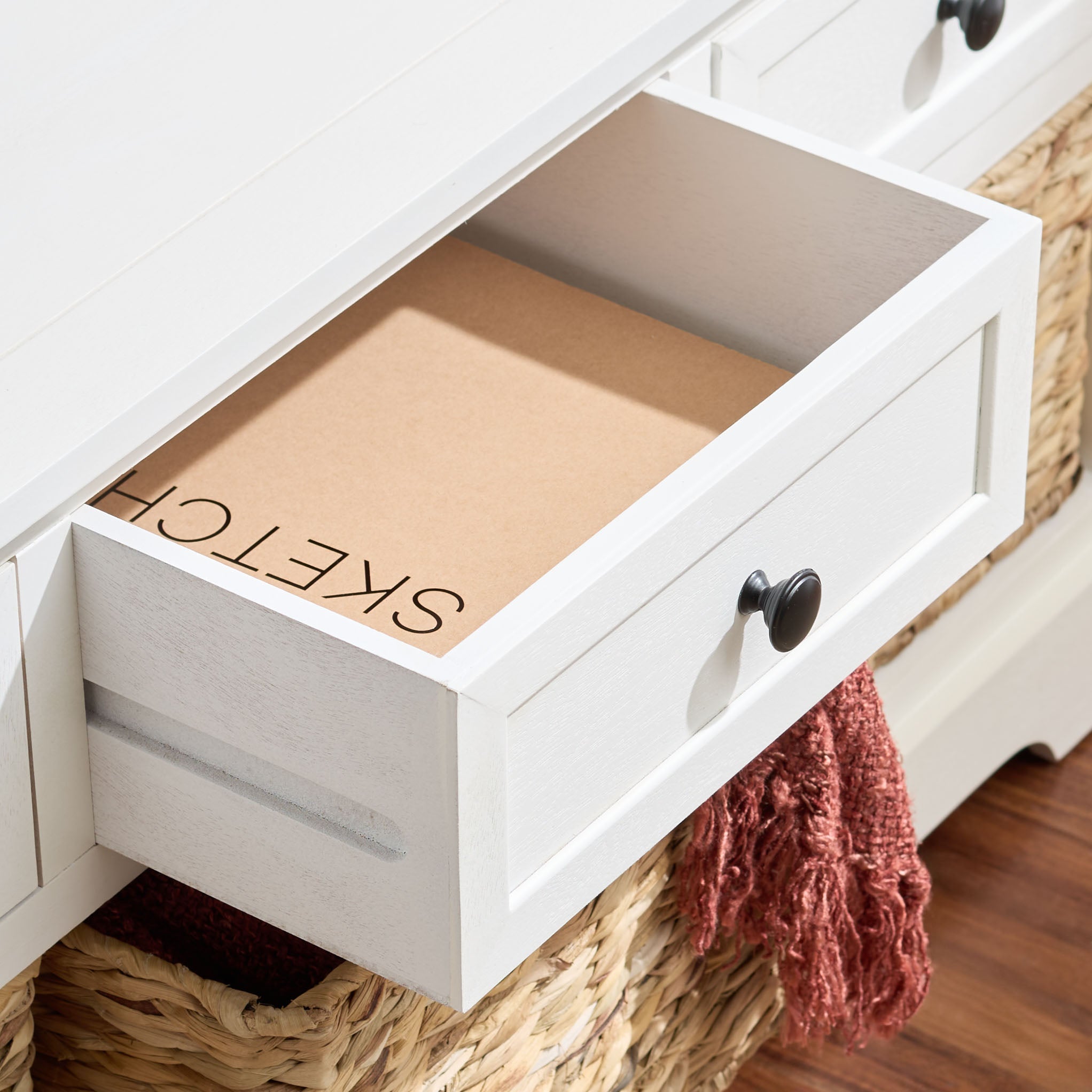 Keep clutter tucked away in style with the Damien Storage Bench. Damien's wood frame in a finish that boasts three slim drawers for smaller items above three wicker baskets that slide in and out for easy use, making it ideal for today's busy lifestyles.