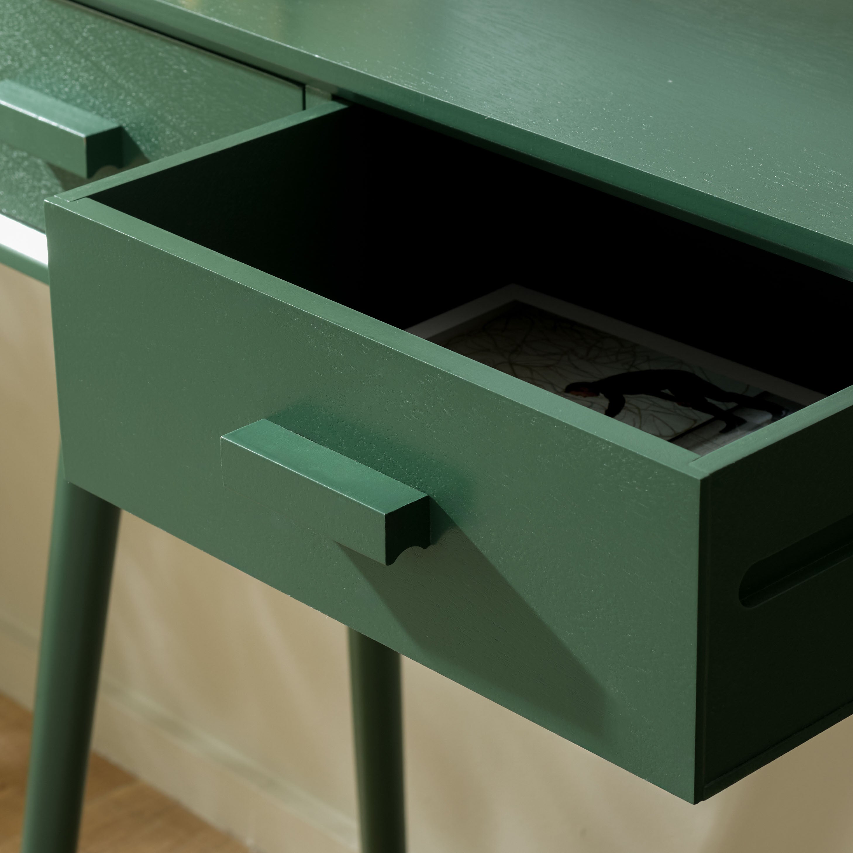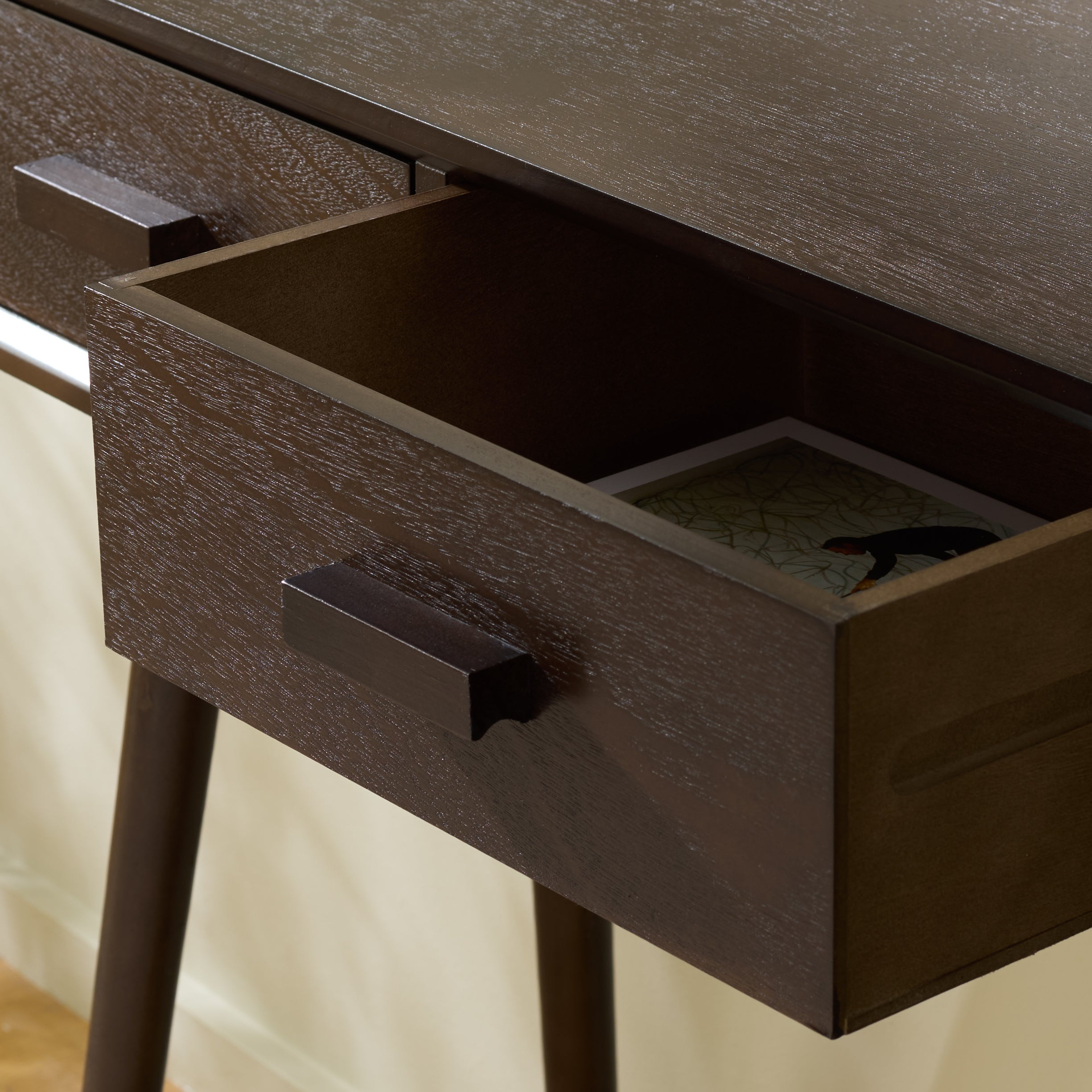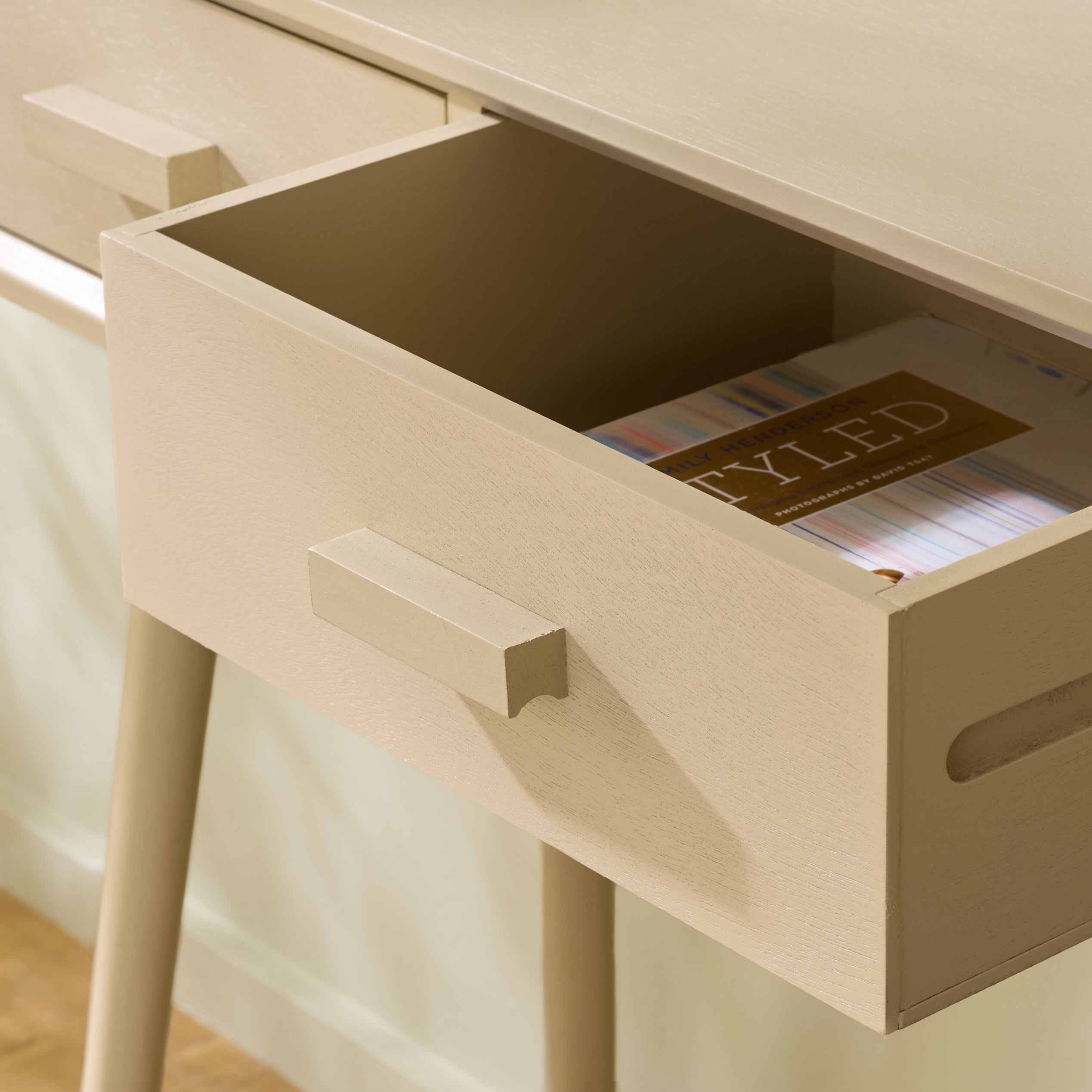 Bring the warmth of retro vintage style to any interior with this contemporary 2 drawer vanity desk. Designed with a special water-based paint treatment, its urban finish illuminates the natural beauty of its pine wood blend construction.