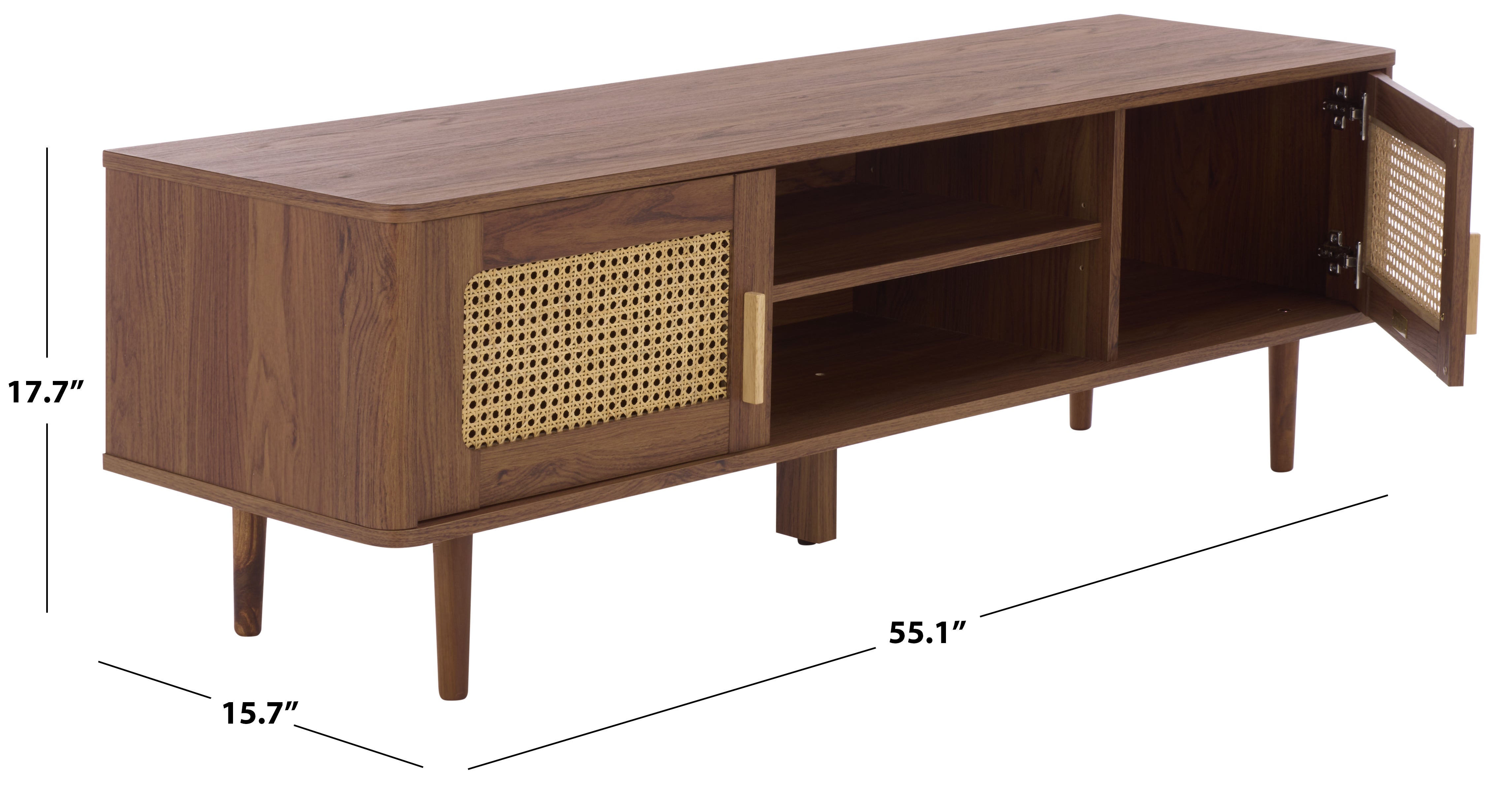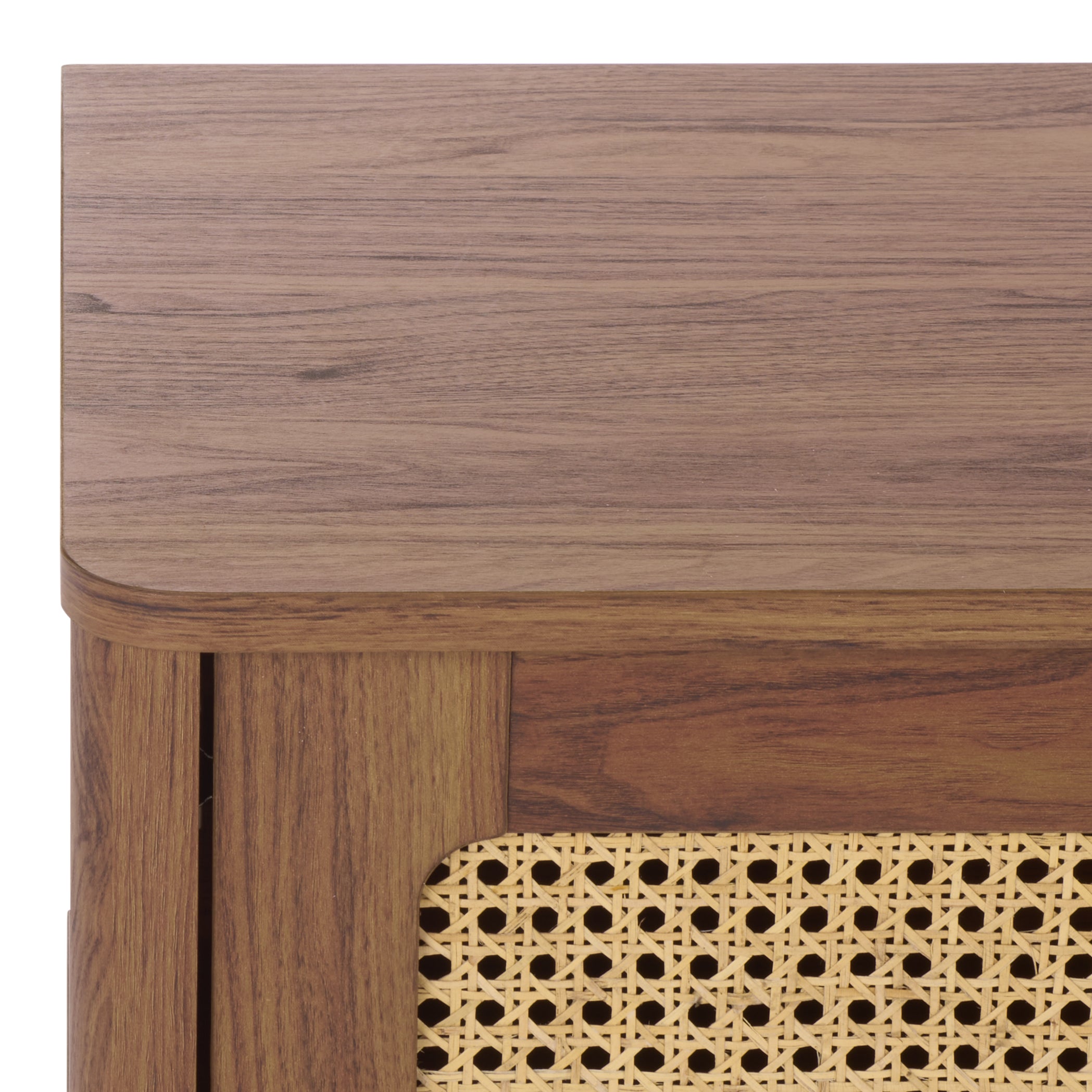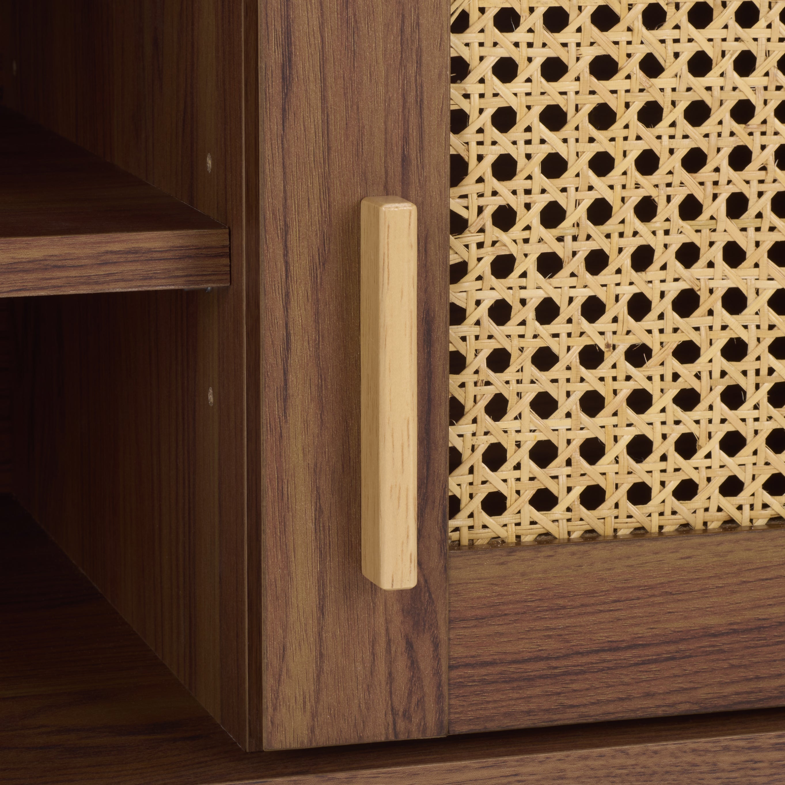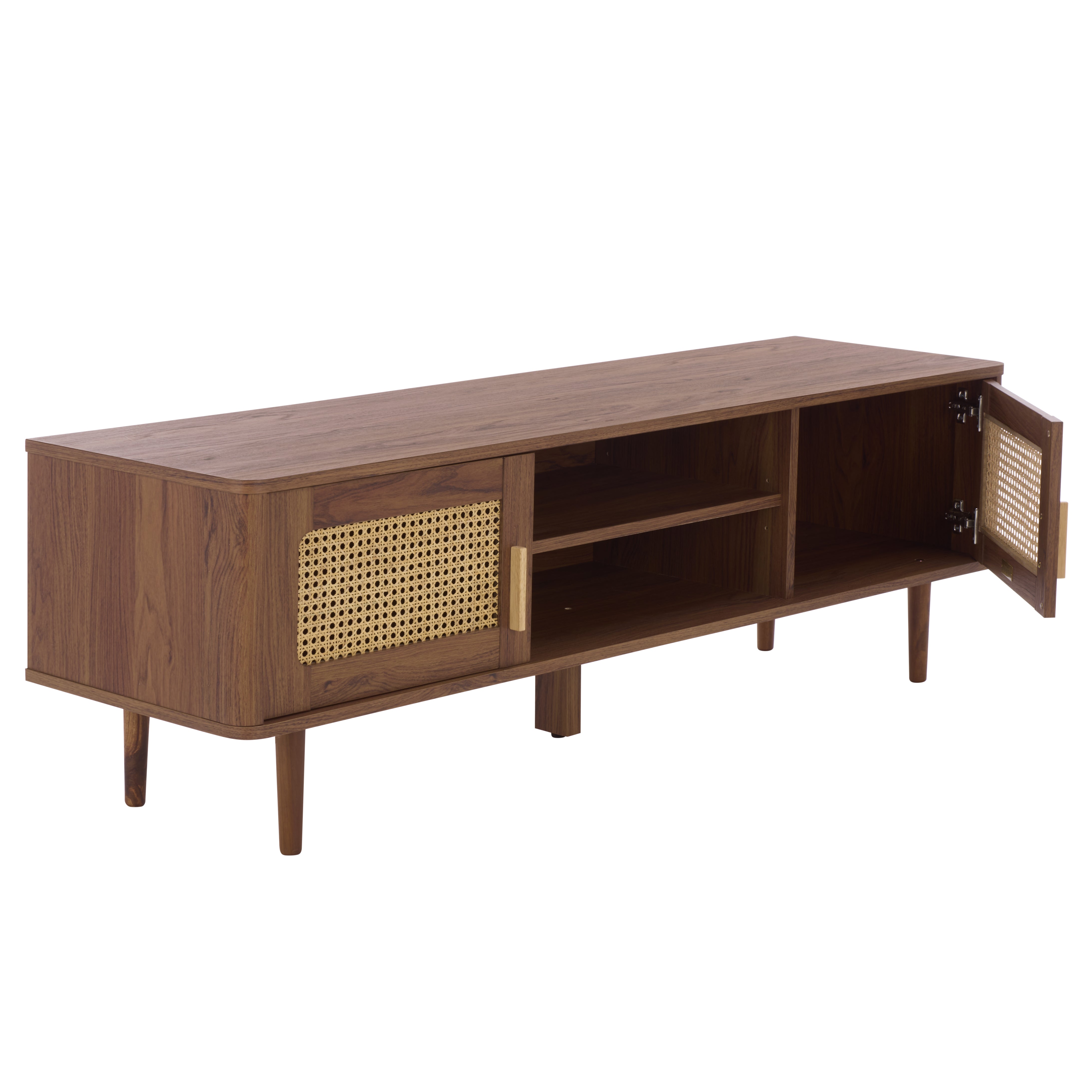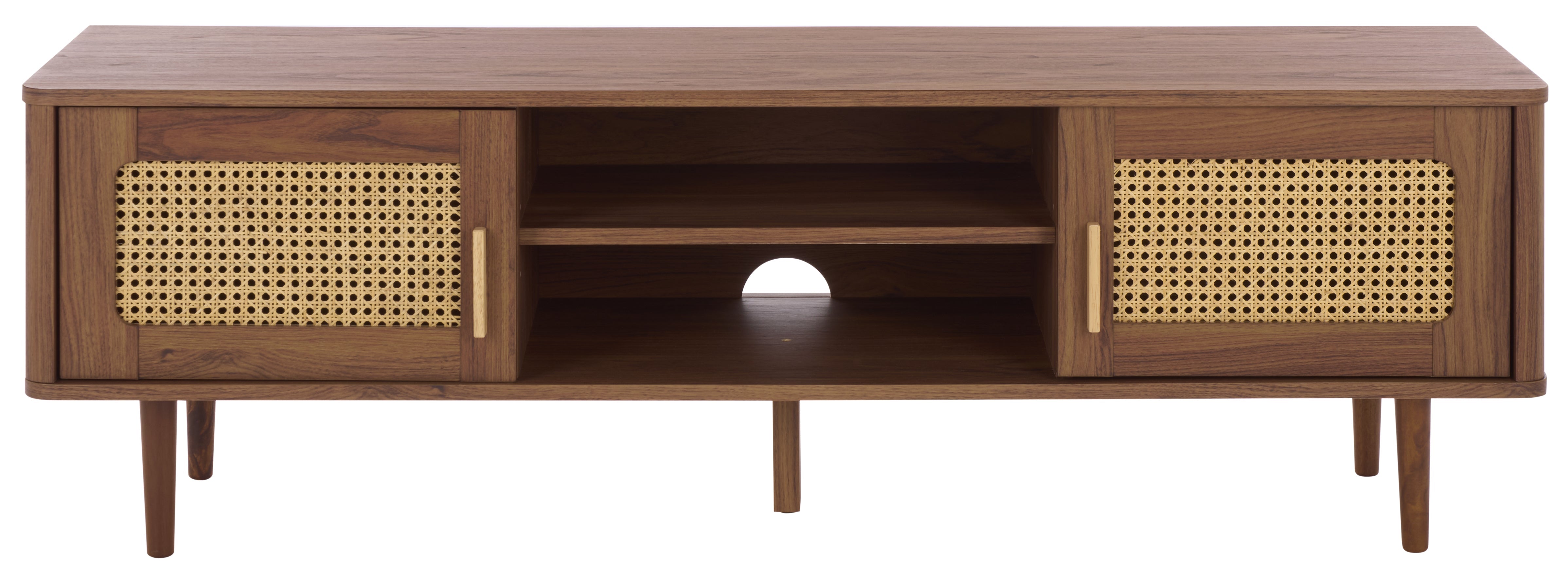 Discover the stylish and functional appeal of our DERS 2 SHELF 2 DOOR SIDEBOARD/TV STAND. This chic sideboard, presented in the stunning shade of walnut, provides a beautiful and practical solution for your storage needs. Made from the versatile material, rattan, this piece of furniture is not just robust but also adds an aesthetic touch to your space. Its two-tiered shelf and a pair of doors ensure ample room to house your essentials, while also serving as a TV stand. Ideally, our TV Stand allows you to display a 55" sized TV.