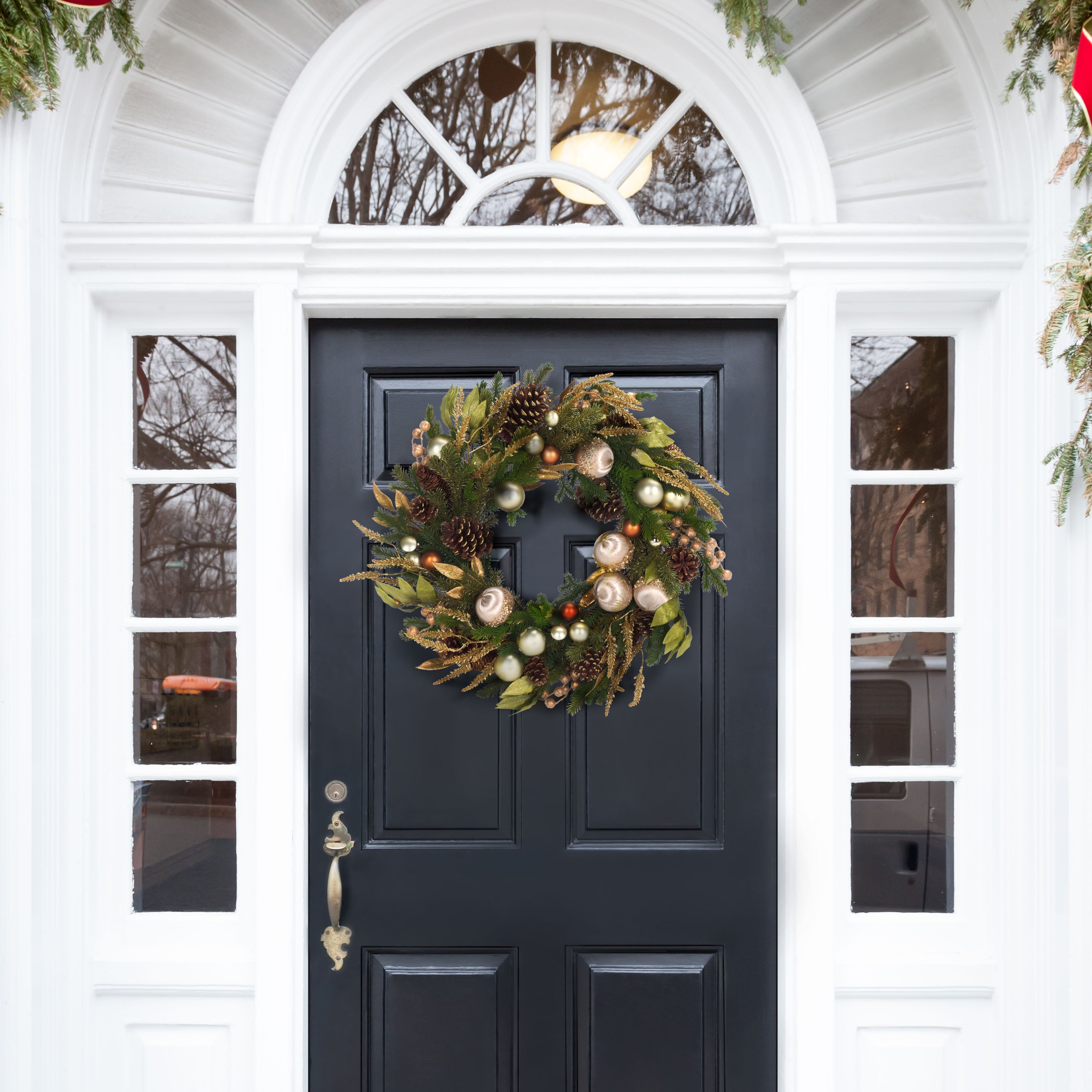 Whether displayed on your front door, above a mantel, or in a welcoming entryway, this wreath adds a golden glow and sophisticated style to any space.