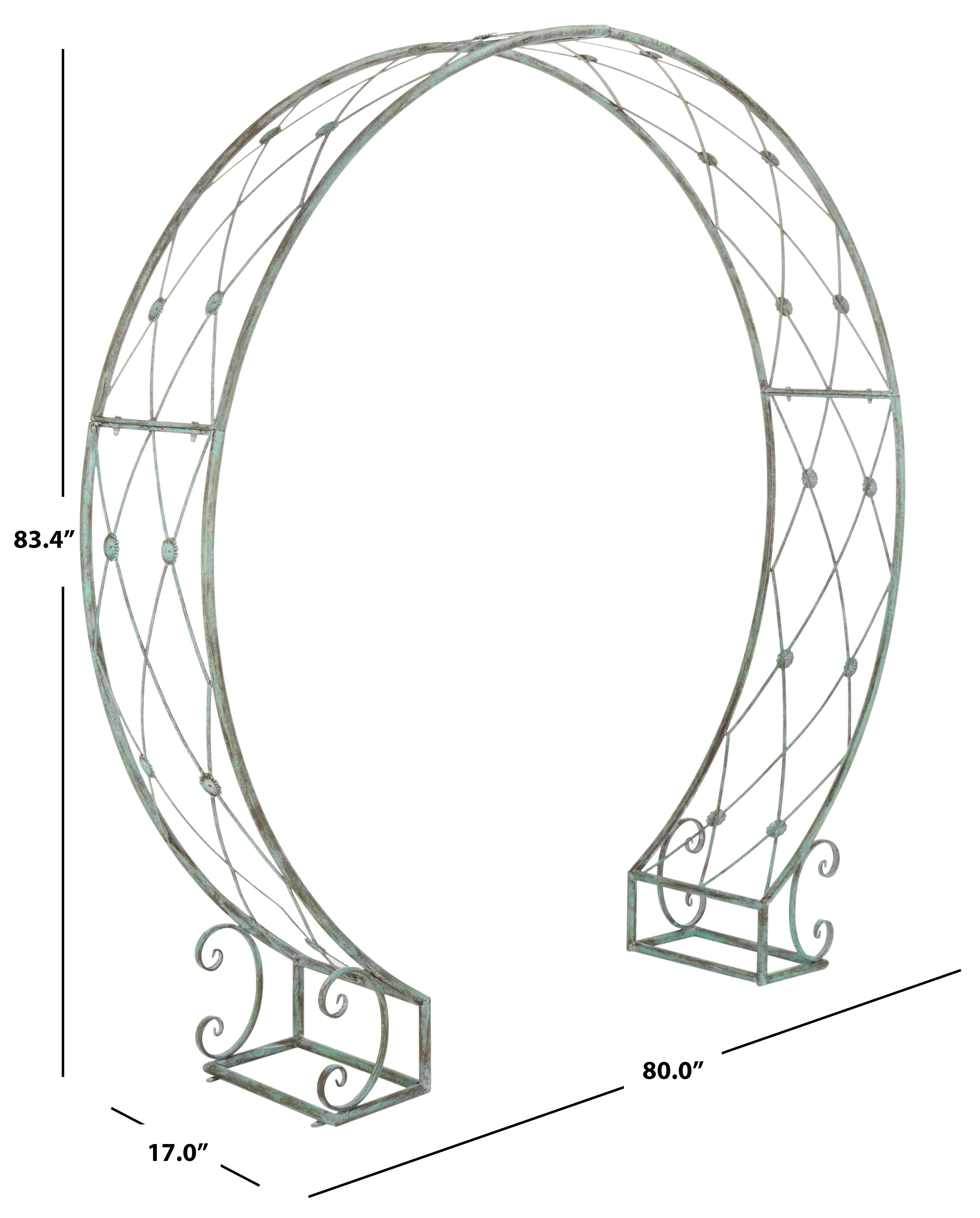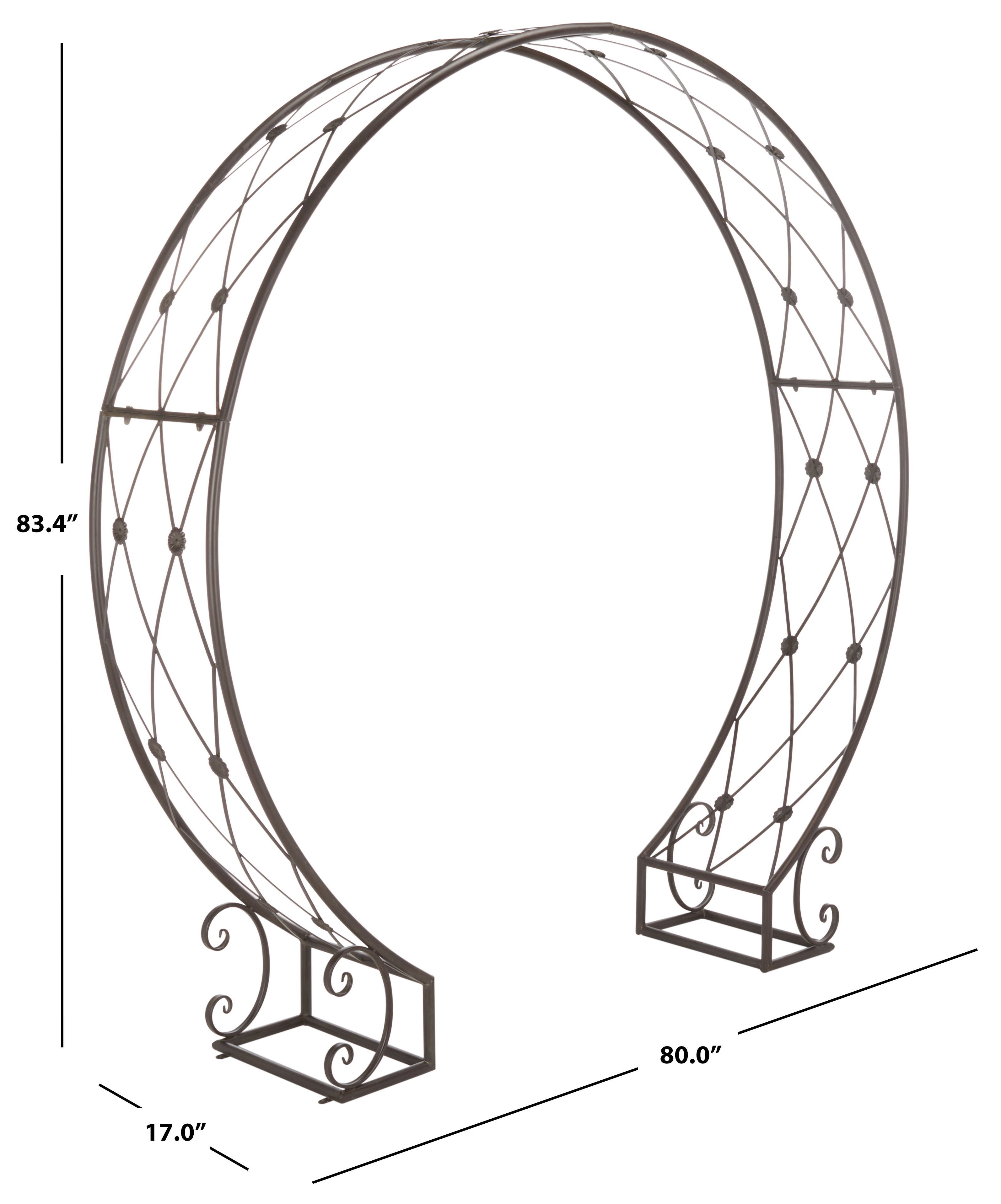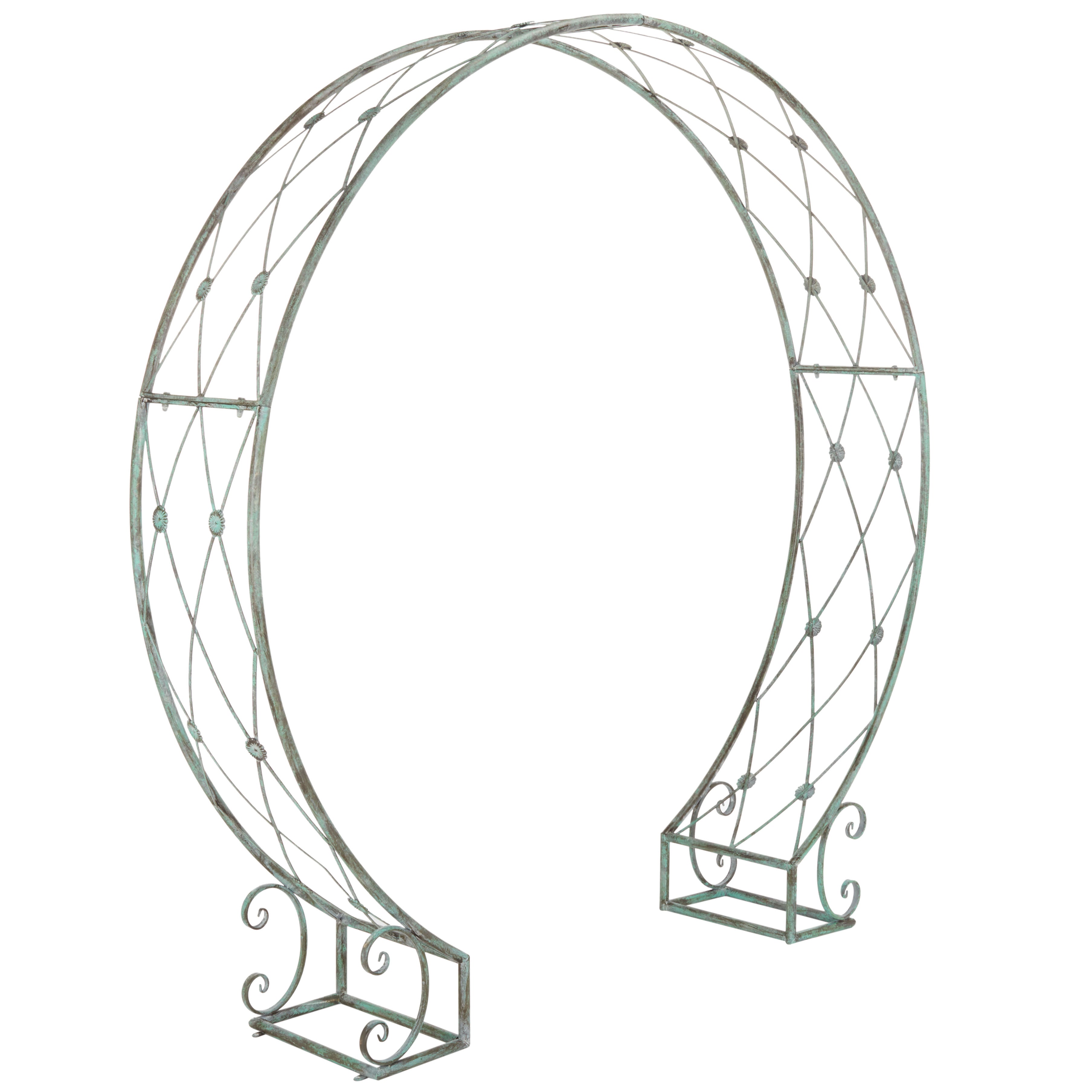 Add a striking architectural feature to your garden with our Mizell moon gateway. With a bold circular shape, our arbor serves as an eye-catching and charming focal point. It features classic ironwork in an antique finish to become a durable and versatile addition to your garden. With an airy lattice, the gateway is perfect for displaying and housing your plants, vines, and climbing roses. Our stunning arbor brings beautiful definition to a gated entry or garden path or adds a romantic shaded cover for a garden bench.