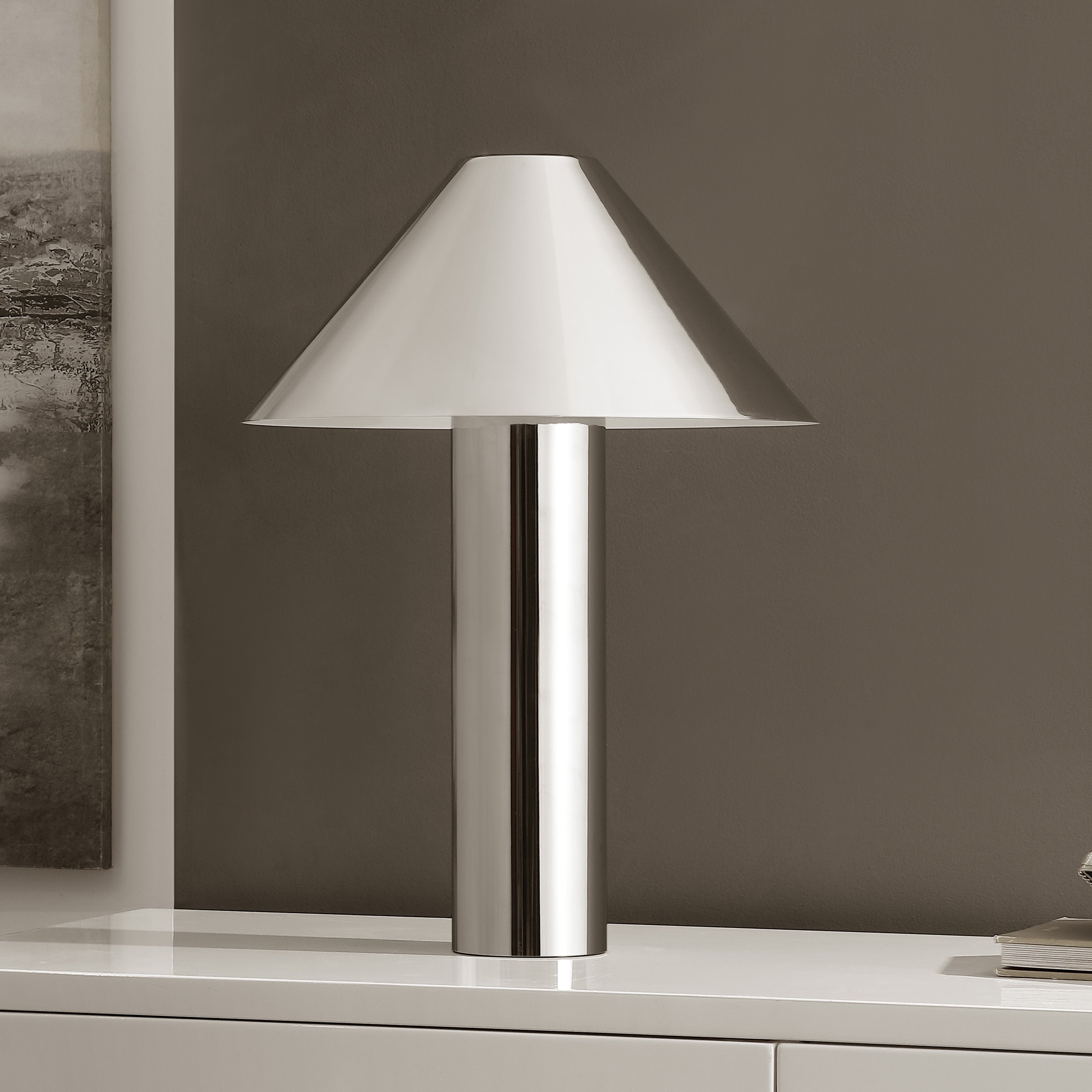 Illuminate your space with the PIA chrome metal table lamp. With its sleek 20.5-inch design, this lamp combines modern aesthetics with practical functionality, making it a stylish addition to any room. The chrome finish adds an element of shine and sophistication, while the metal body and shade ensure a solid build that complements contemporary interiors. Perfect for desks, side tables, or reading nooks, the PIA lamp provides warm and inviting lighting that enhances your decor. Its minimalist design seamlessly integrates into your home, offering an effortless elegance that transforms your environment with every use.