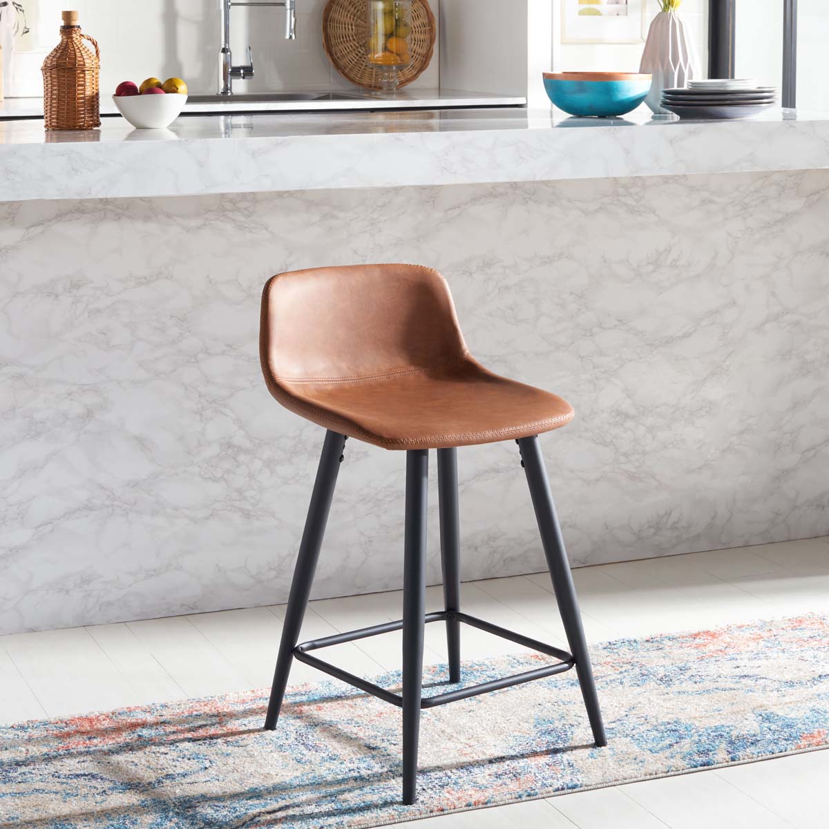 Give your kitchen or breakfast nook a Mid Century upgrade with this Asena Counter Stool. Asena?? low slung back and dramatically angled legs bring decorative drama to any d?cor, while its cigar brown PU leather seat ensures lasting comfortable dining.
