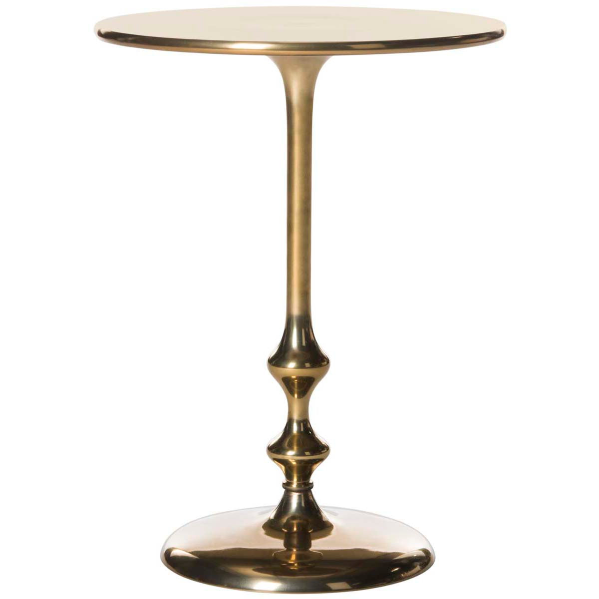 With its contemporary spin on traditional spindle style, this modern side table is a new classic. Its gently sculpted curves, reflected in its graceful tabletop pattern, are paired with a timeless antique brass finish ideal for any urban interior.