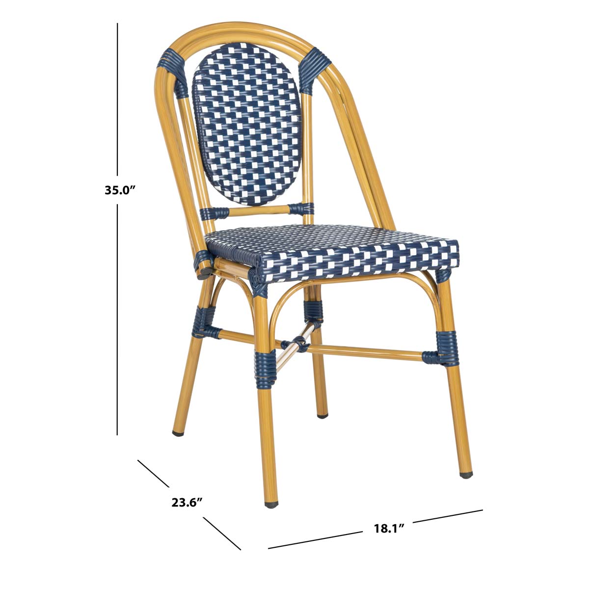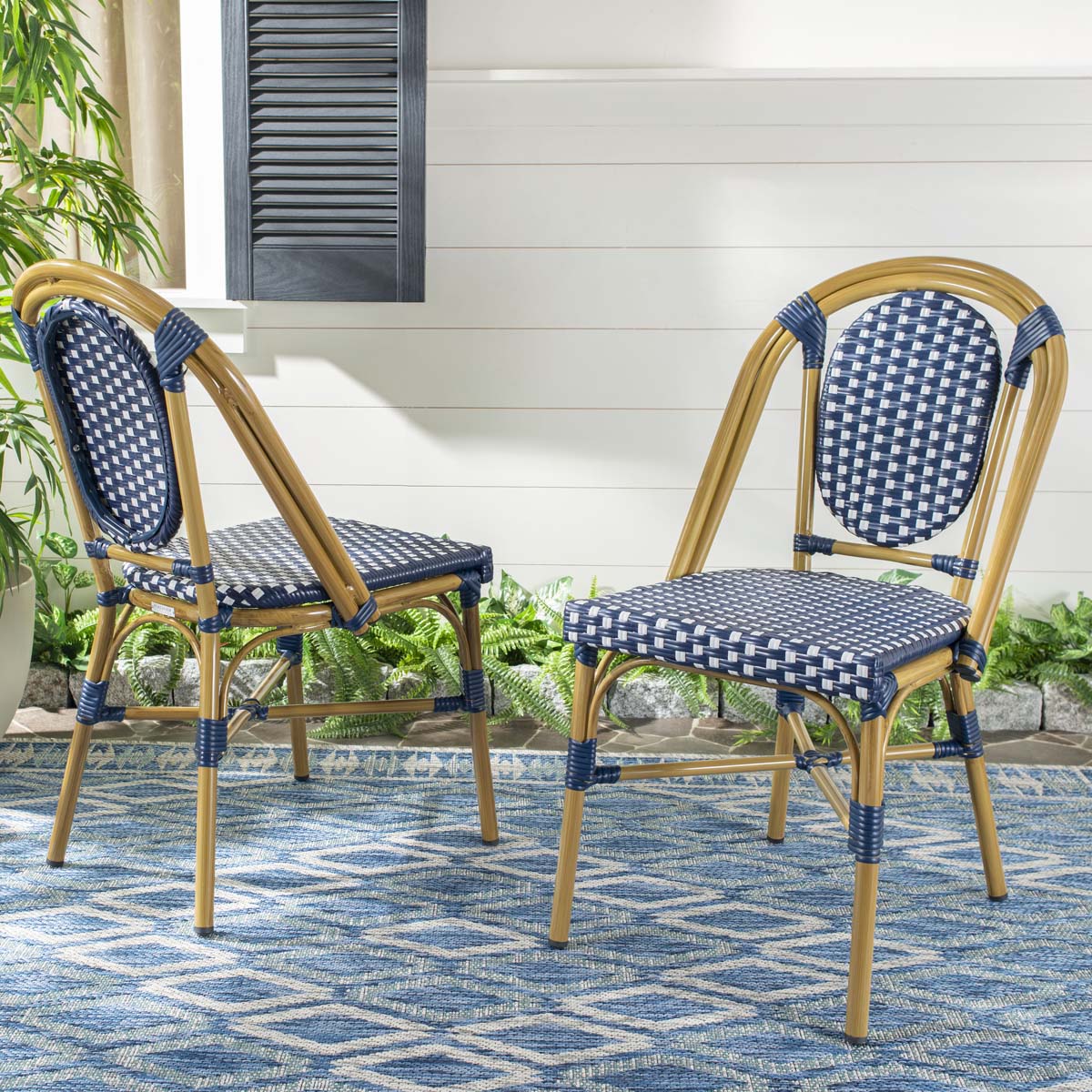 Safavieh Lenda French Stackable Bistro Chair - Navy/White/Brown Frame (Set of 2)