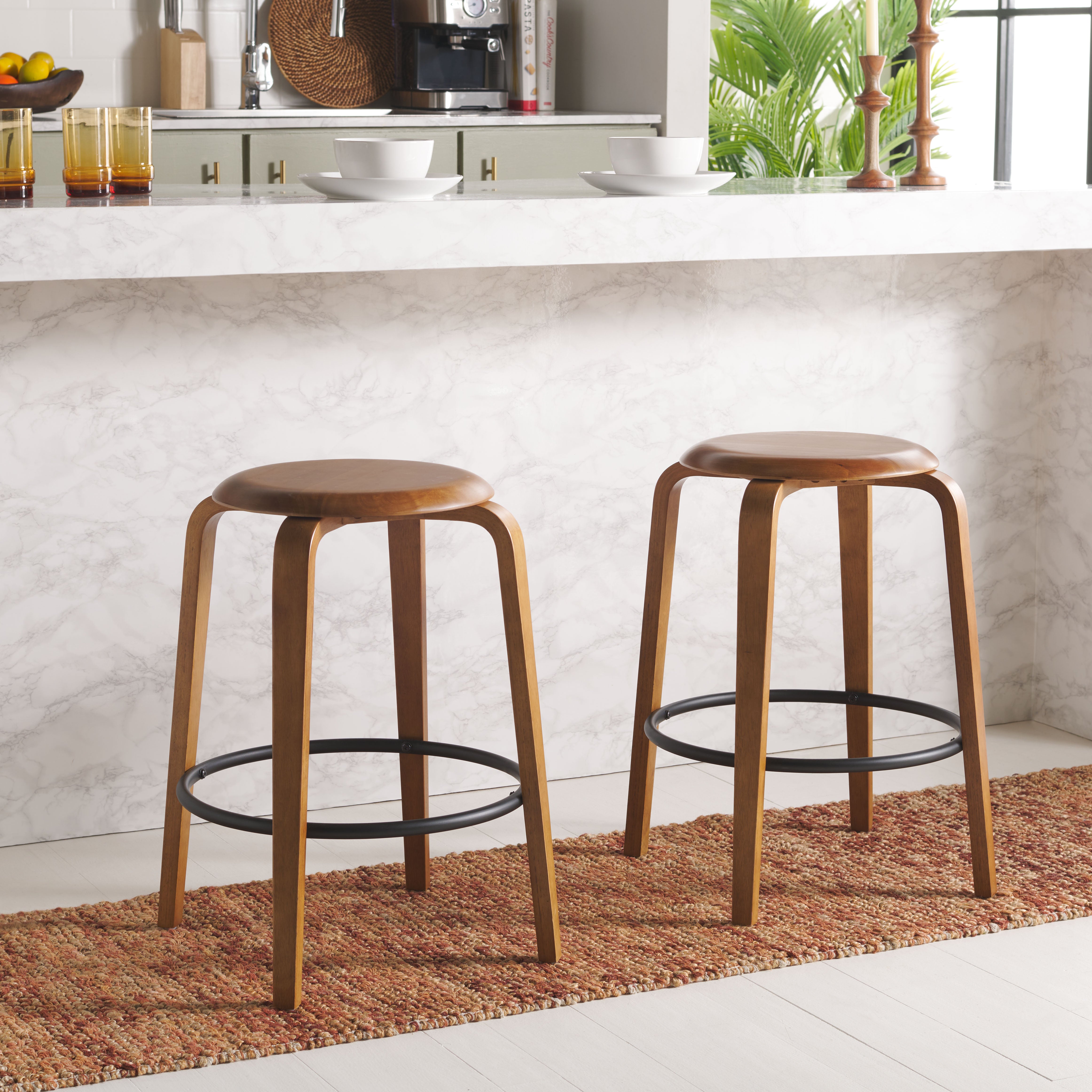 Update your home with the effortless style and convenience of our Luella stackable counter stool. A perfect blend of style and functionality, the stool offers a flexible and inviting seat. Its perfectly rounded seat and sculpted legs are crafted from detail-rich wood with a stunning finish. The counter stool features a black metal ring for leg support and added style. It provides a convenient seat anywhere from your kitchen to your home office and living area. With a lightweight and stackable design, the counter stools can be stored with ultimate ease.