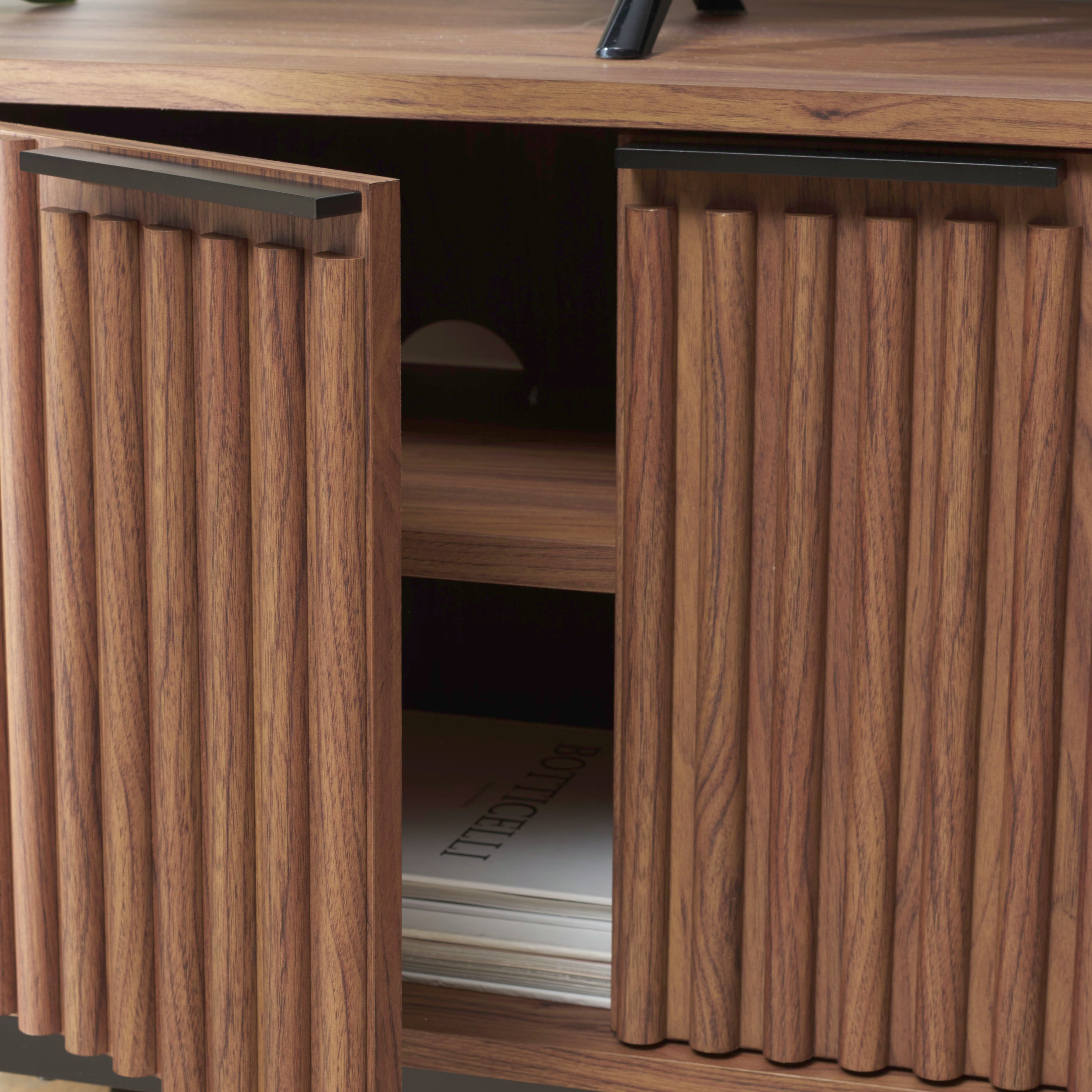 Add a smart and elegant storage unit to your home with our stylish Lylia media stand. It showcases the timelessness of mid-century design in a thoughtfully detailed and streamlined design. The clean and linear profile of the media unit is perched upon tapered legs. The media stand showcases rich grains of wood in a deep walnut finish for a versatile and charming appeal. Its tambour doors allow full access to the adjustable shelves to house all your media essentials. The three drawers are perfect for storing your knick-knacks, keeping your space organized at all times.