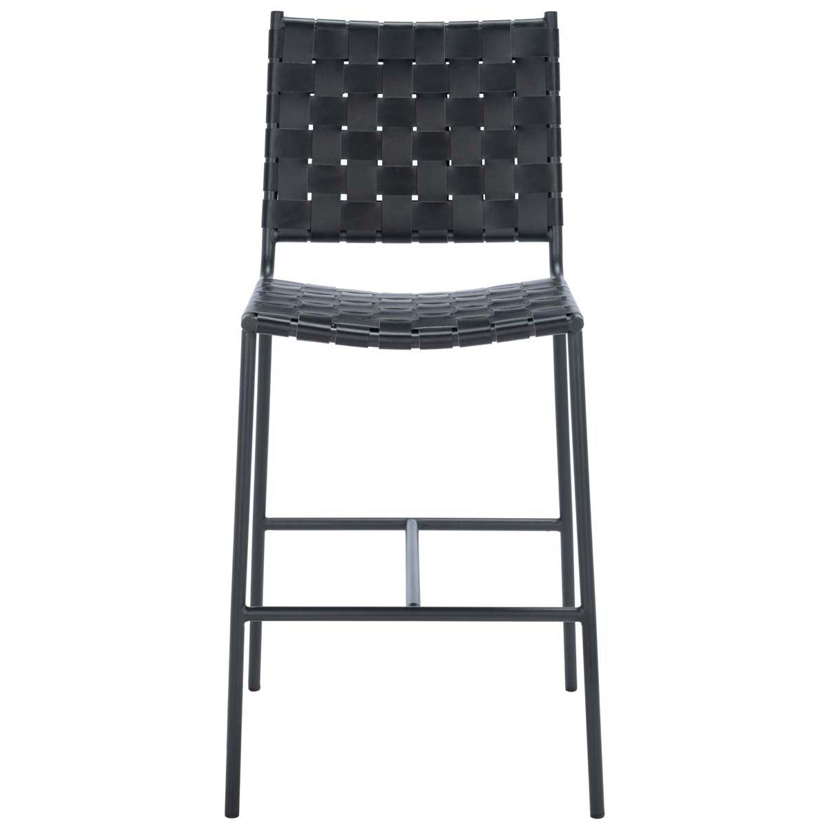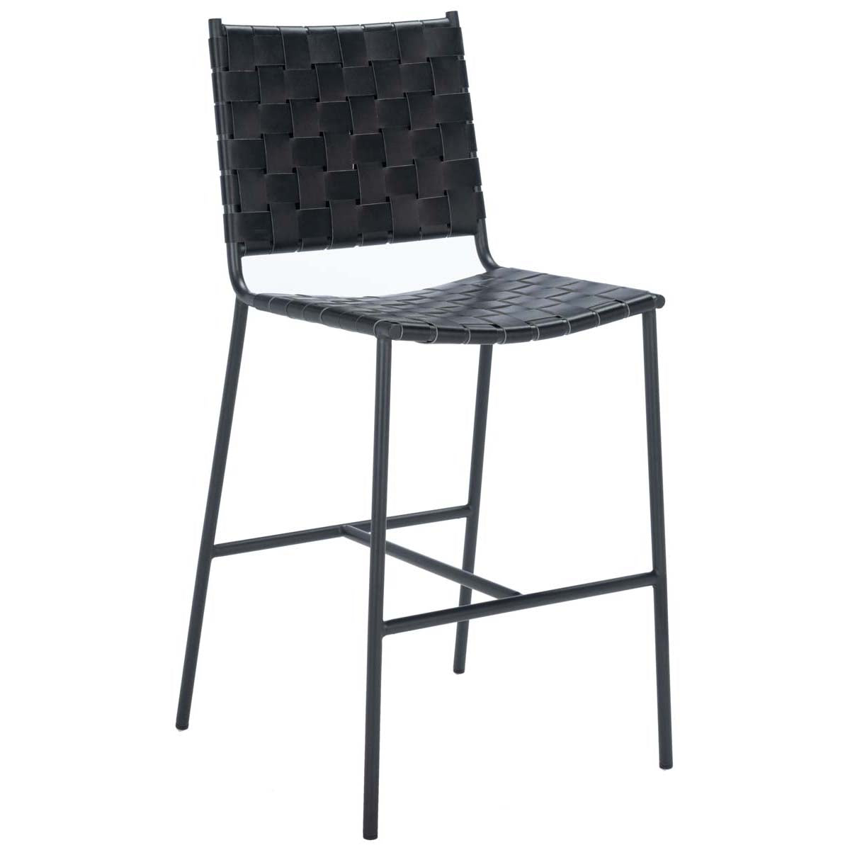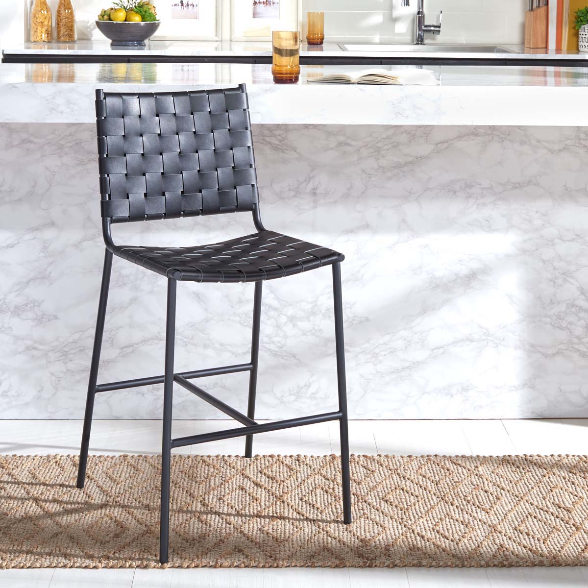 This Olenna Counter Stool redefines any modern interior with relaxed contemporary beauty, making it a favorite of artistically inclined designers. A stunning study in decorative contrast, Olenna emanates visual and textural depth with its basket-woven black leather strips and clean-lined black metal base.