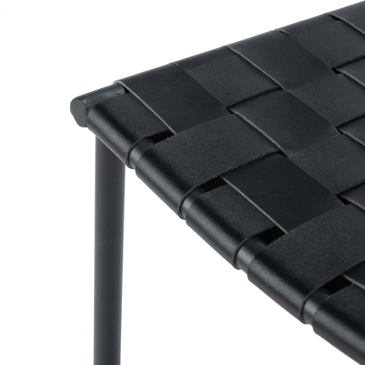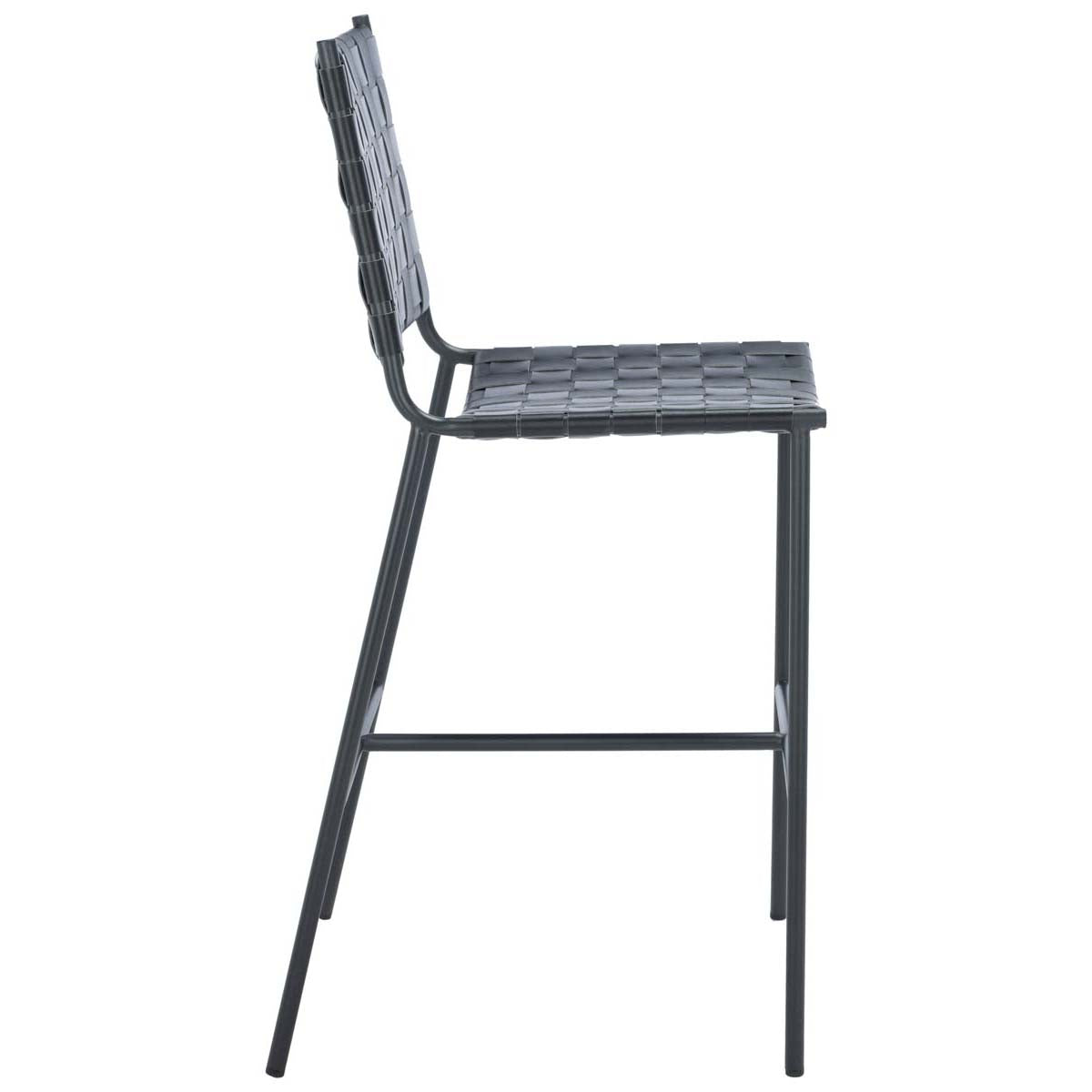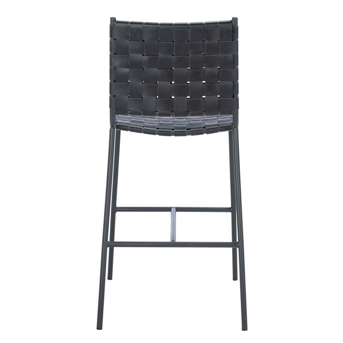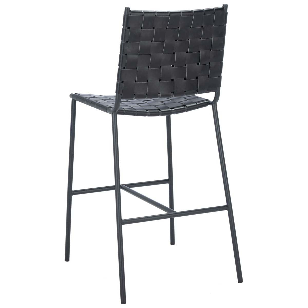 This Olenna Counter Stool redefines any modern interior with relaxed contemporary beauty, making it a favorite of artistically inclined designers. A stunning study in decorative contrast, Olenna emanates visual and textural depth with its basket-woven black leather strips and clean-lined black metal base.