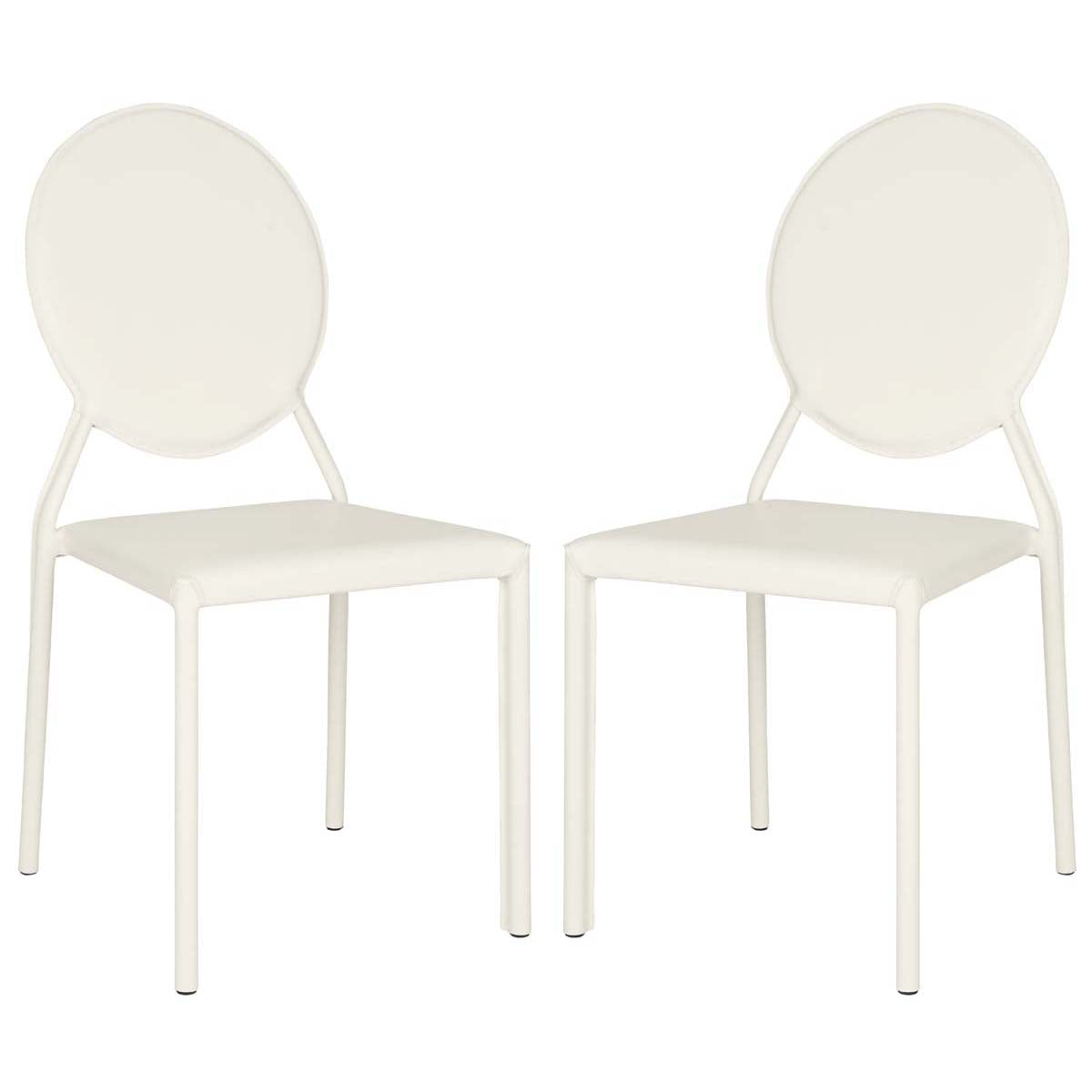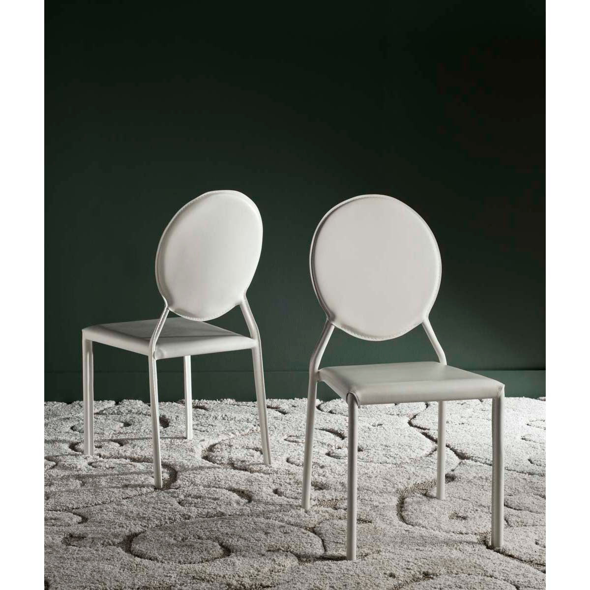 Safavieh Warner 37''H Round Back Leather Side Chair-White (Set of 2)