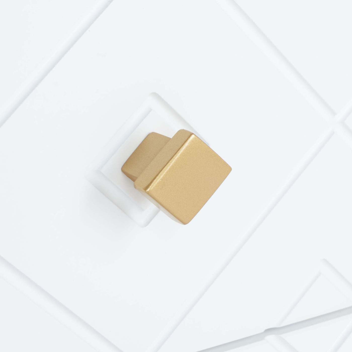 The bedroom gets a lot more glamorous with this stunning Wilfred Nightstand. Wilfred's two drawers feature an illusionary concentric diamond pattern that's perfectly accented by diamond-shaped gold pulls, effortlessly enhancing its decorative depth, further highlighted by its matching gold Mid-Century base.