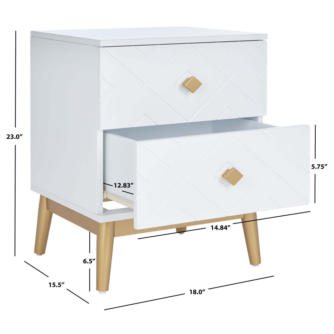 Safavieh Wilfred 2 Drawer Patterned Night Stand - White / Gold