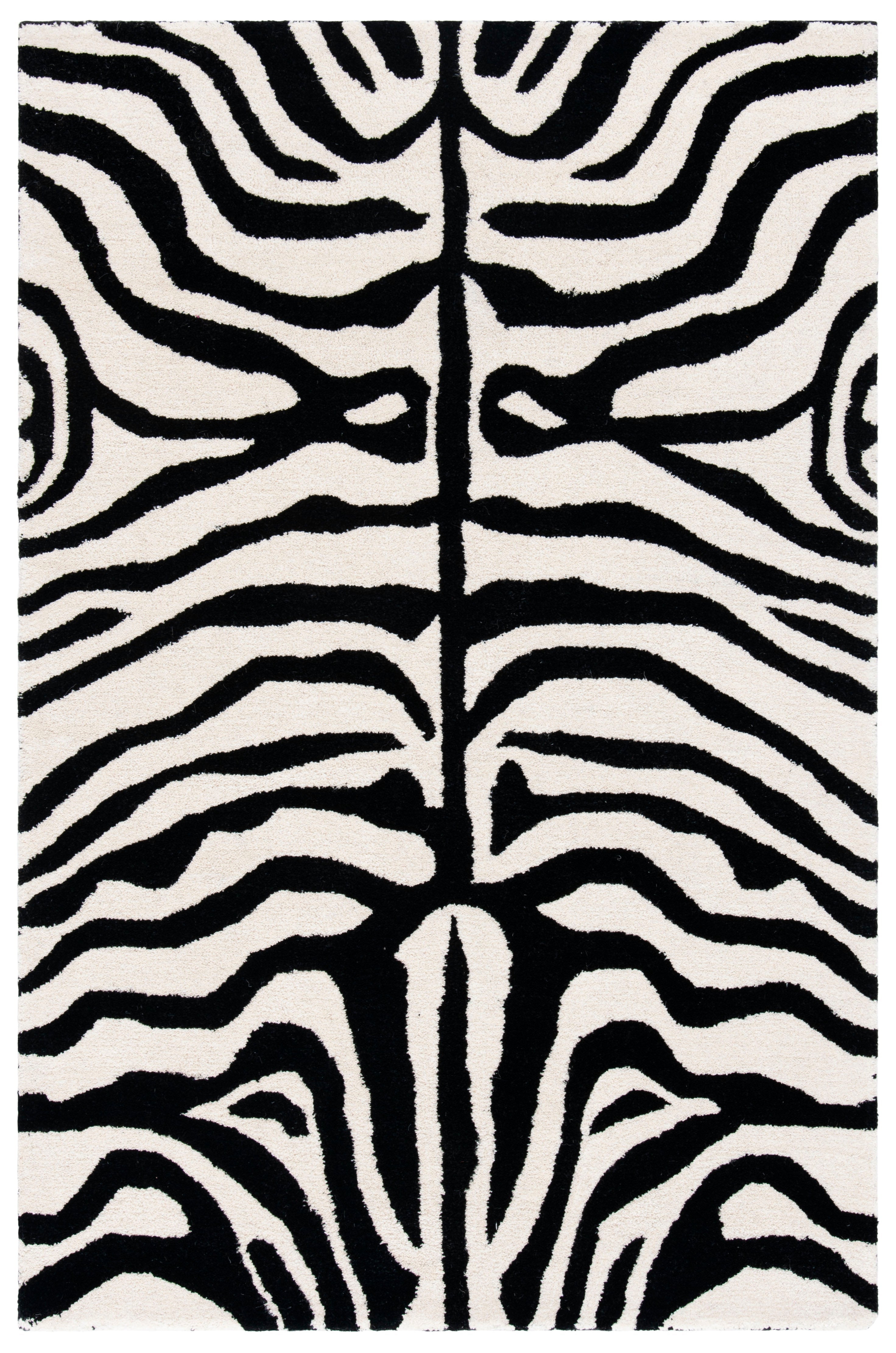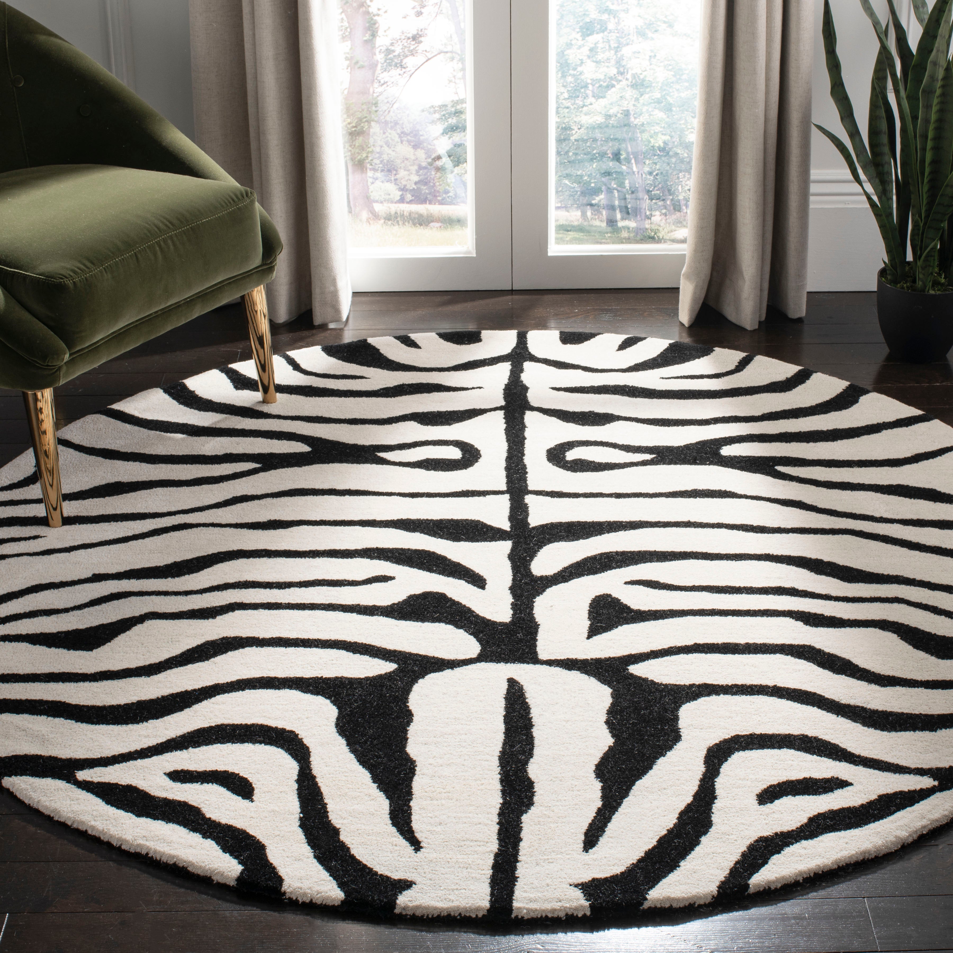 Transform your living space with this stunning area rug. Sized at 9 feet 6 inches by 13 feet 6 inches, this large rectangle rug is a perfect addition to any room. The black and white color scheme with an eye-catching animal print design adds a bold contemporary touch to your decor. Hand-tufted using wool, this rug offers a soft and inviting texture underfoot.