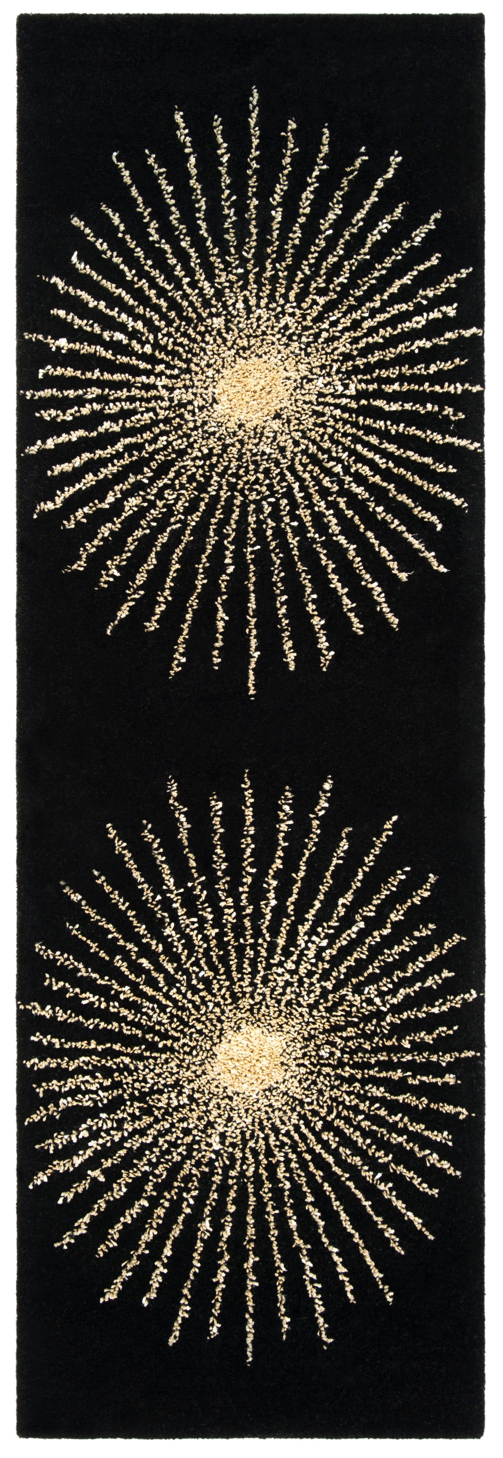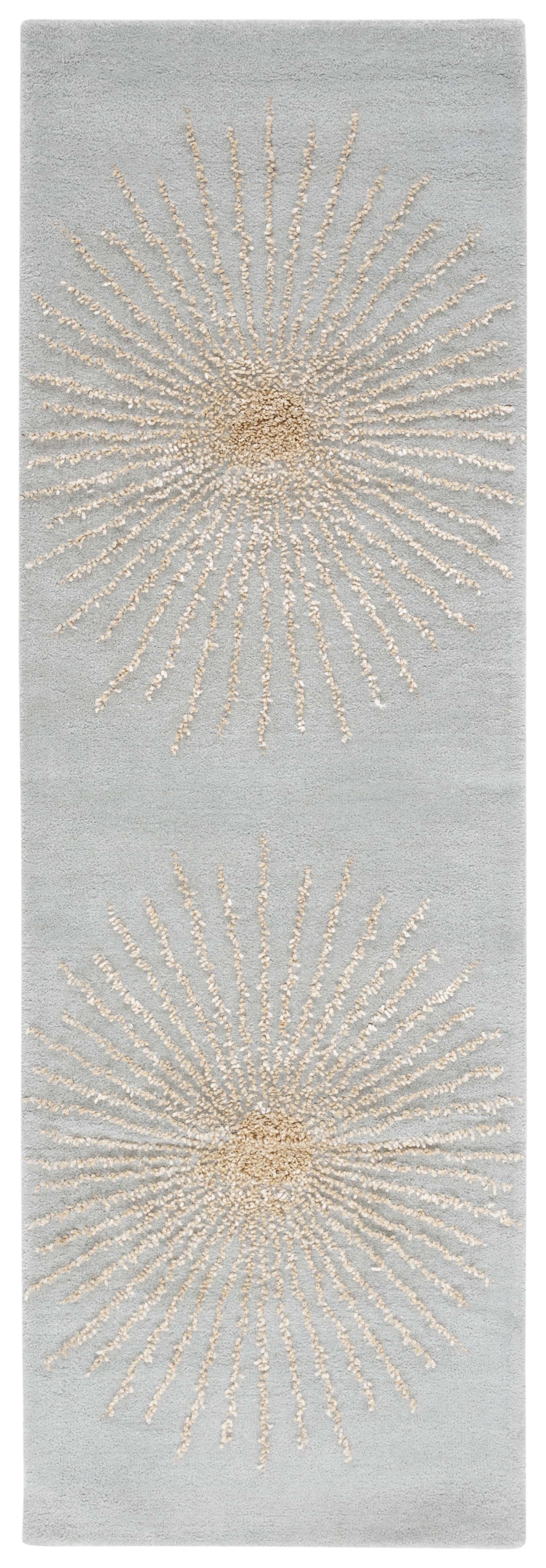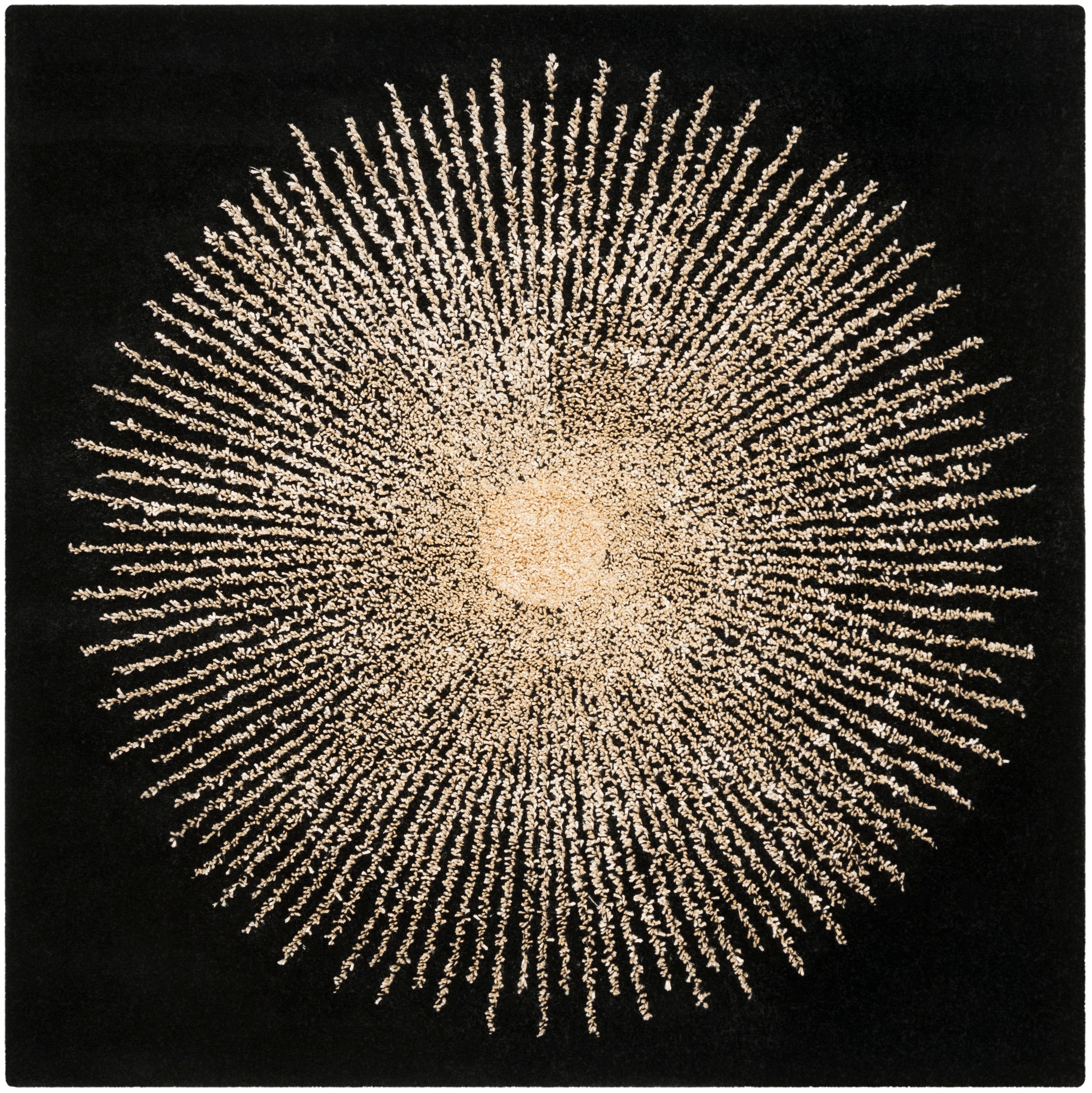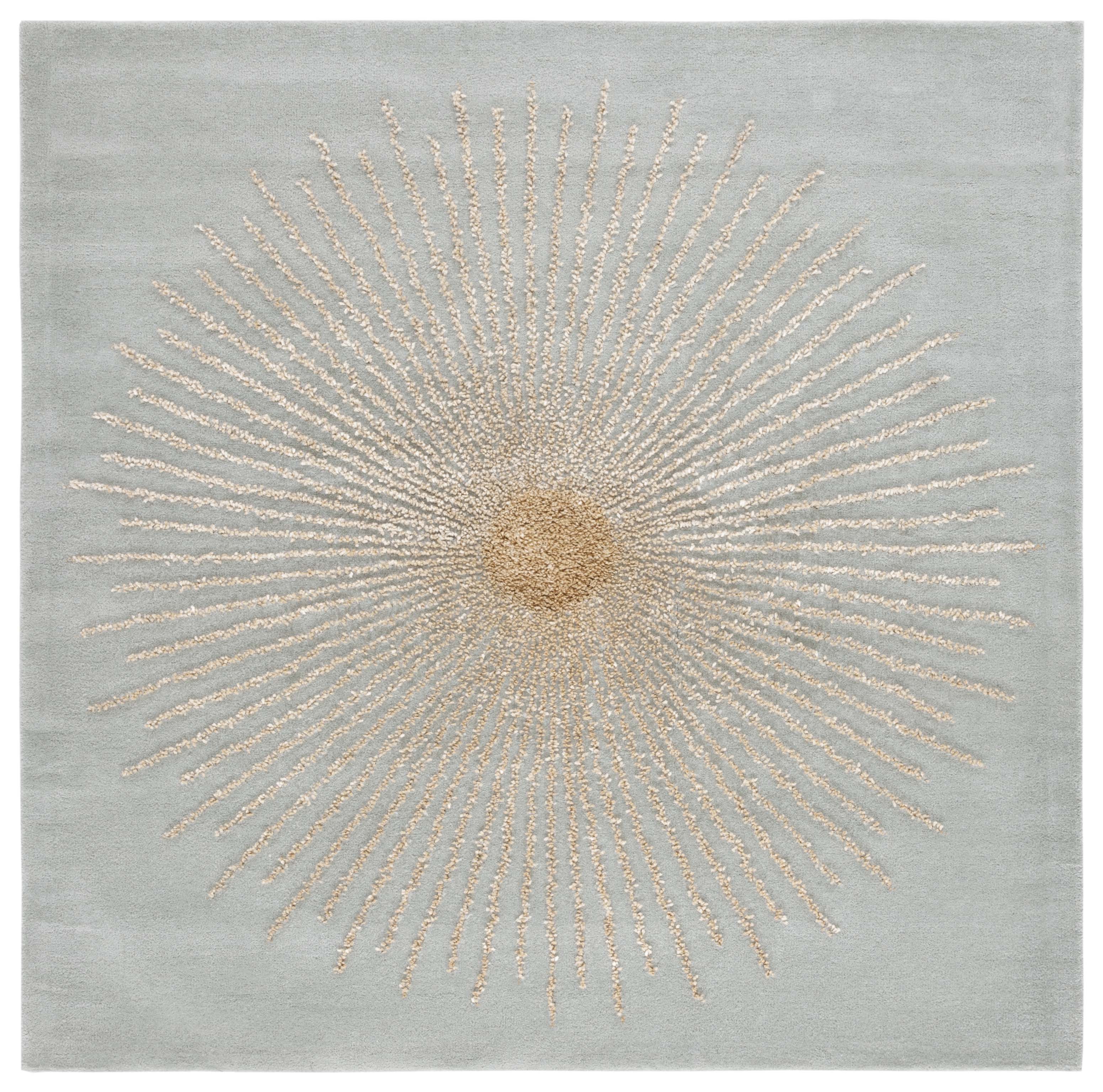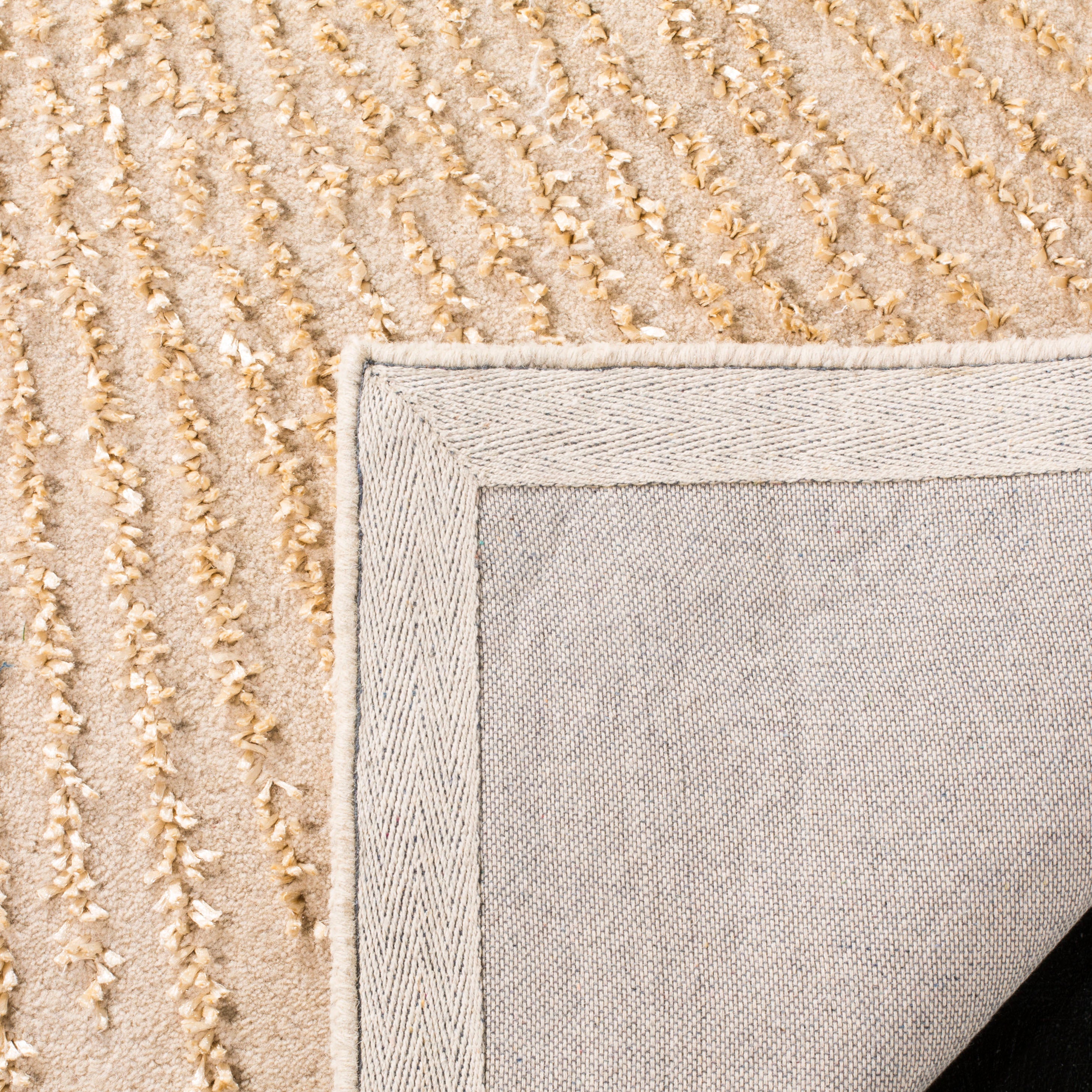 The rug's inviting beige tone serves as a versatile backdrop for its exquisite pattern, radiating from the center like golden rays of sunshine. The contrast between the subtle beige background and the shimmering, textured pattern creates a captivating visual effect, lending a touch of sophistication and warmth to any room.