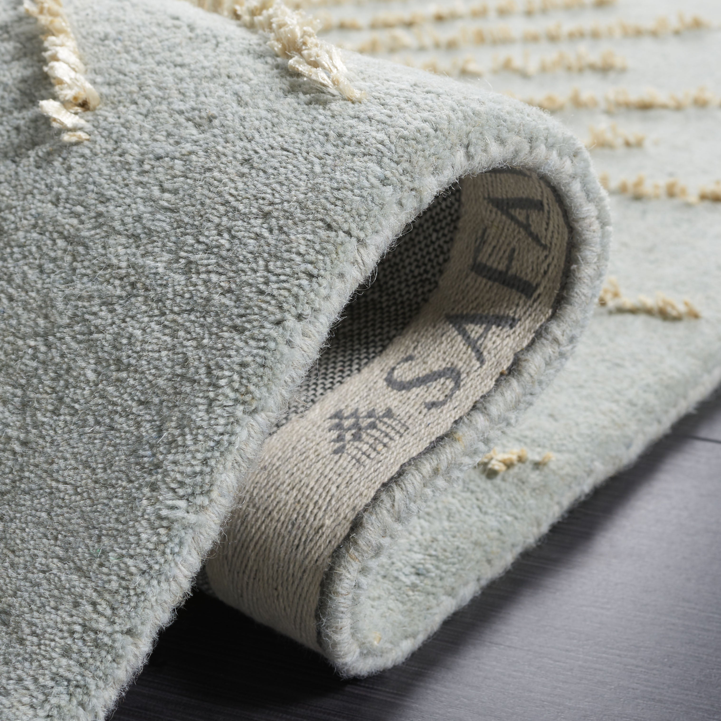 Whether placed by your bedside, under a coffee table, or in a cozy nook, this accent rug is sure to enrich your decor with its understated yet striking appeal. The combination of its plush pile height and the artisanal hand tufted technique guarantees a unique piece that not only accentuates your home but also stands the test of time.
