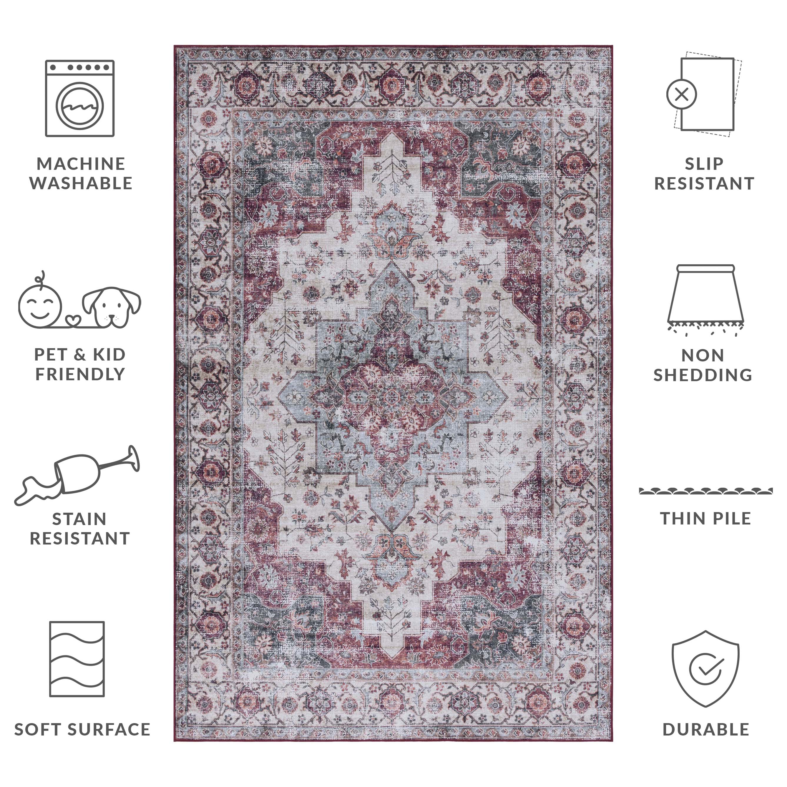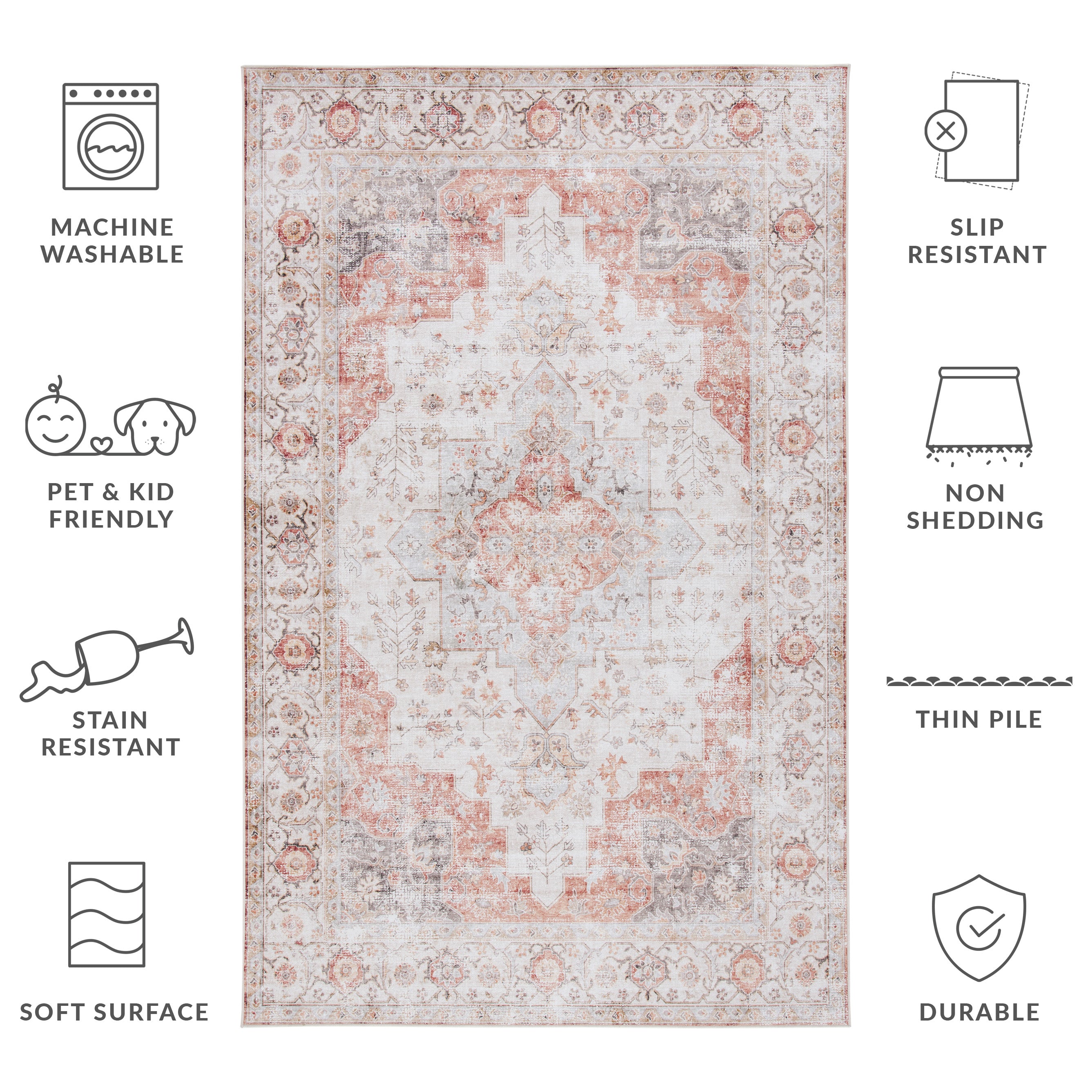 Style and high-performance highlight the brilliant design of the Tucson Rug Collection. Versatile, machine washable and made to stand up beautifully in any space, Tucson is power loomed using durable synthetic yarns and a non-slip backing for a comfort-soft feel underfoot and cushioned stability on any surface.