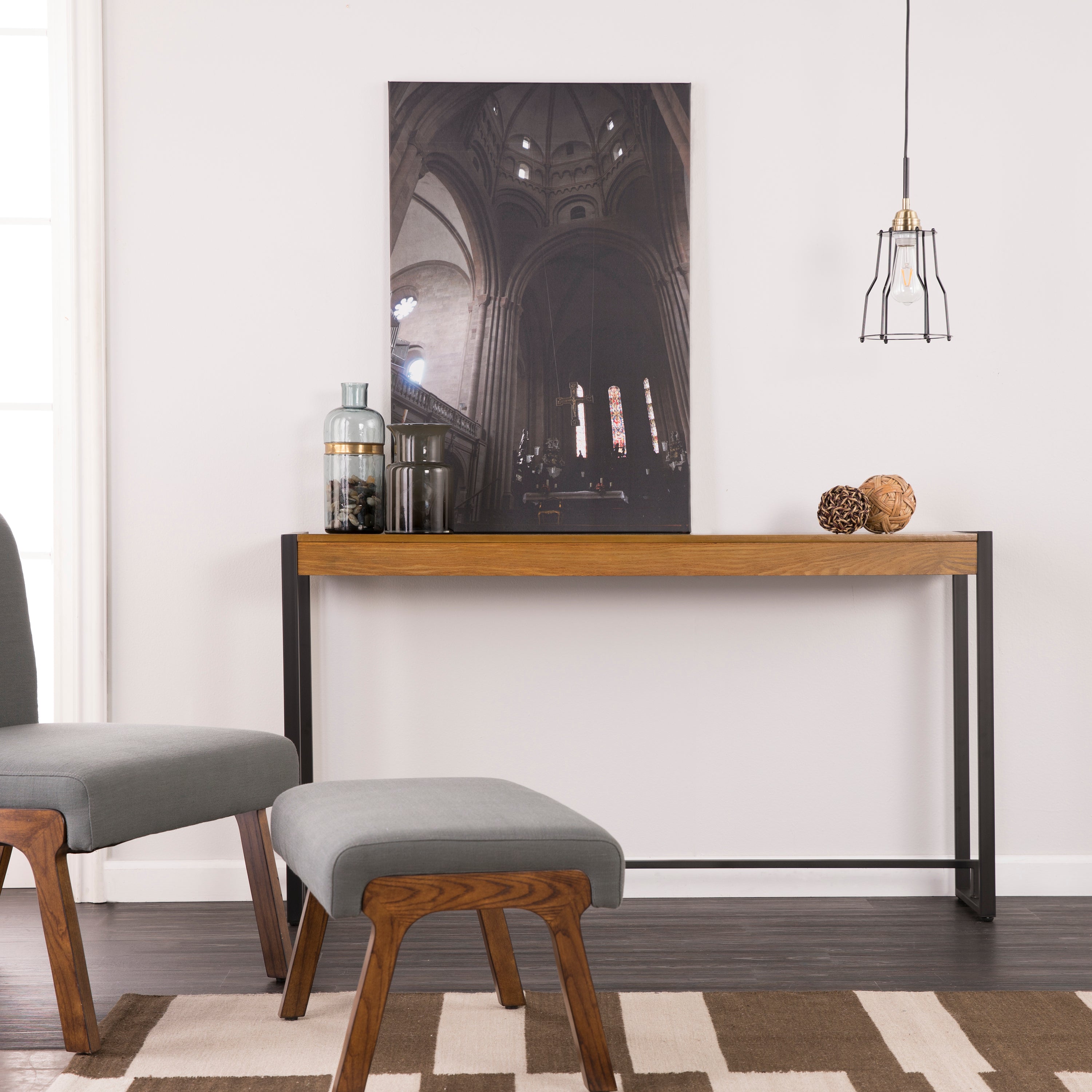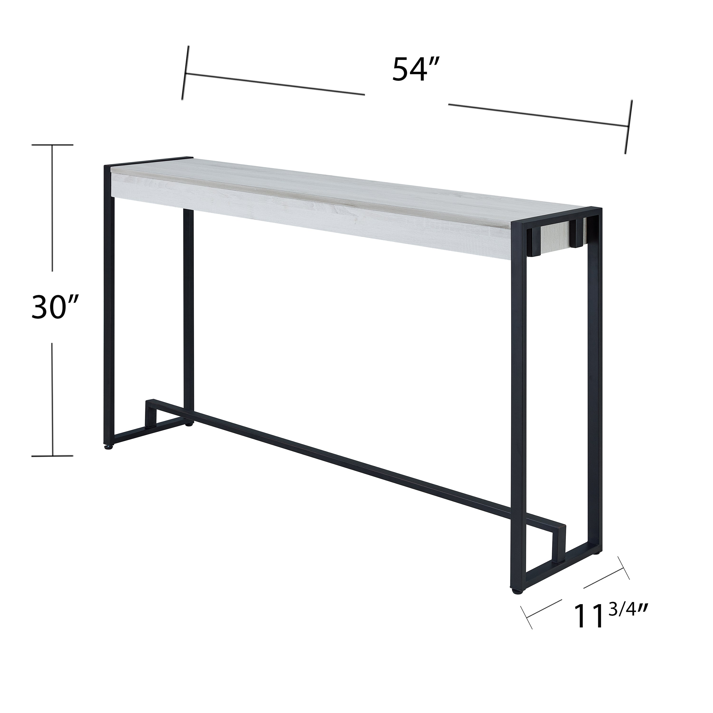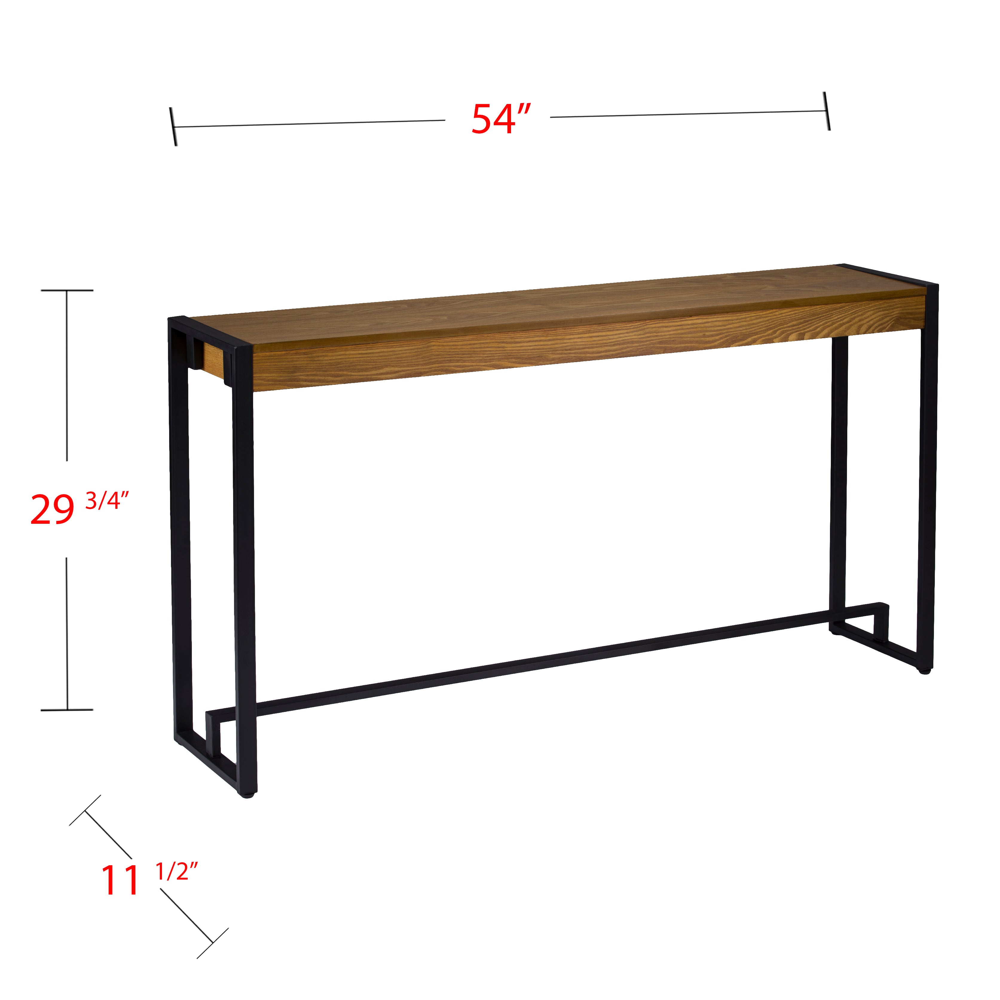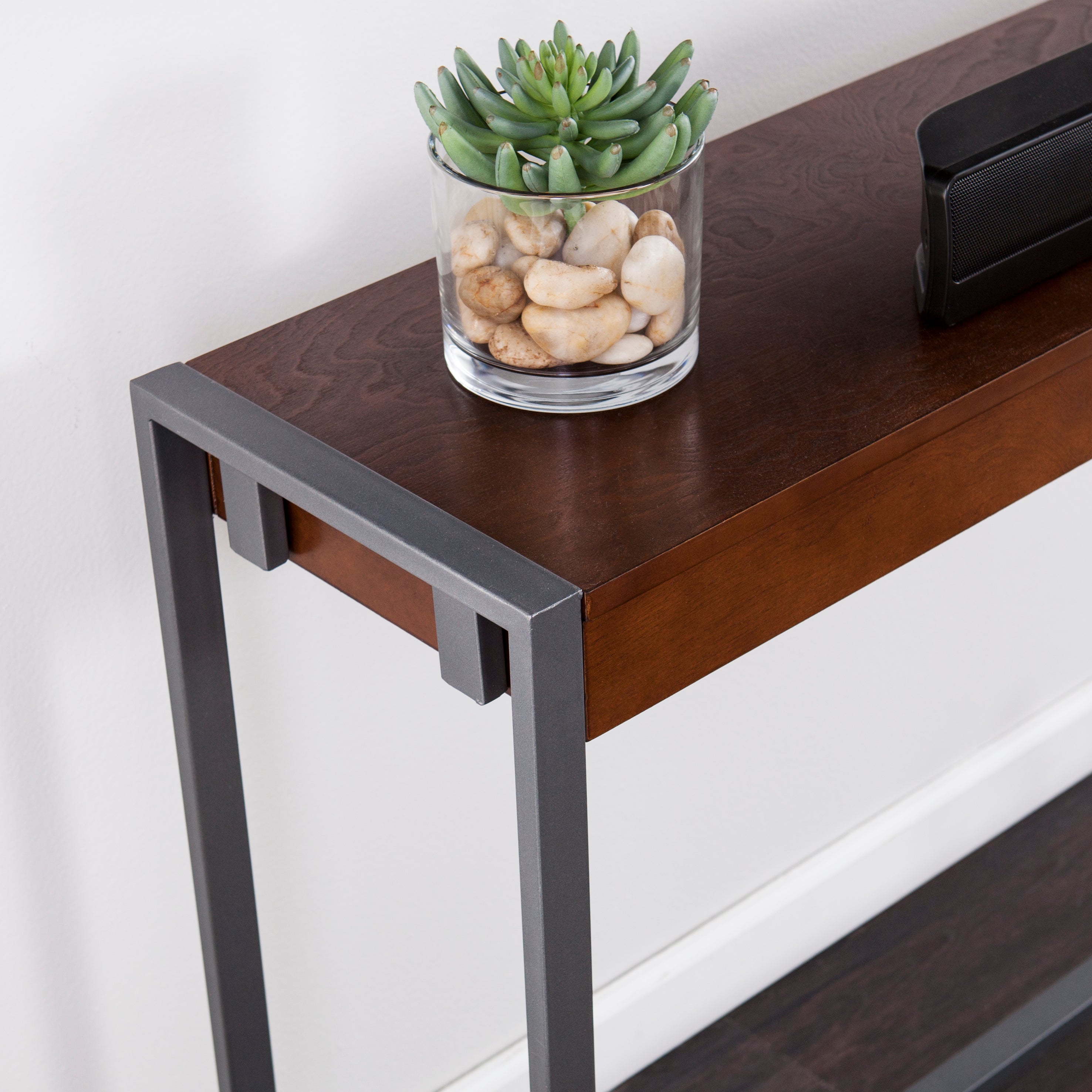 Knock on wood. The Macen Console keeps life simple yet makes a bold statement with mixed materials and an industrial vibe. Flexible to fit your style… and put it on display. Warm up small spaces with the reclaimed look of dark tobacco, while contrasting gunmetal gray gives this narrow console table a firm leg to stand on.