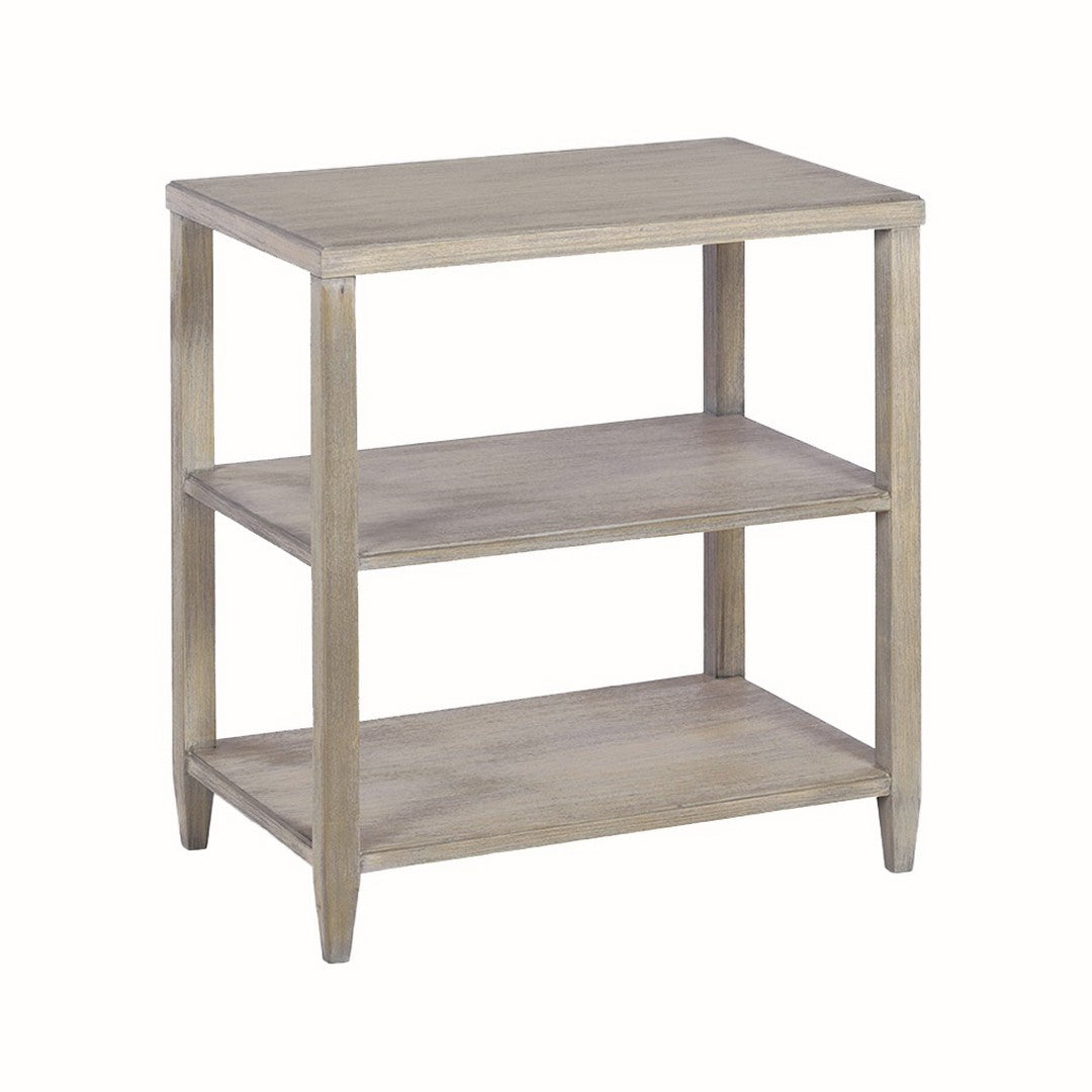 Our Tempo Side Table features two tiered shelves, straight legs, and tapered feet.