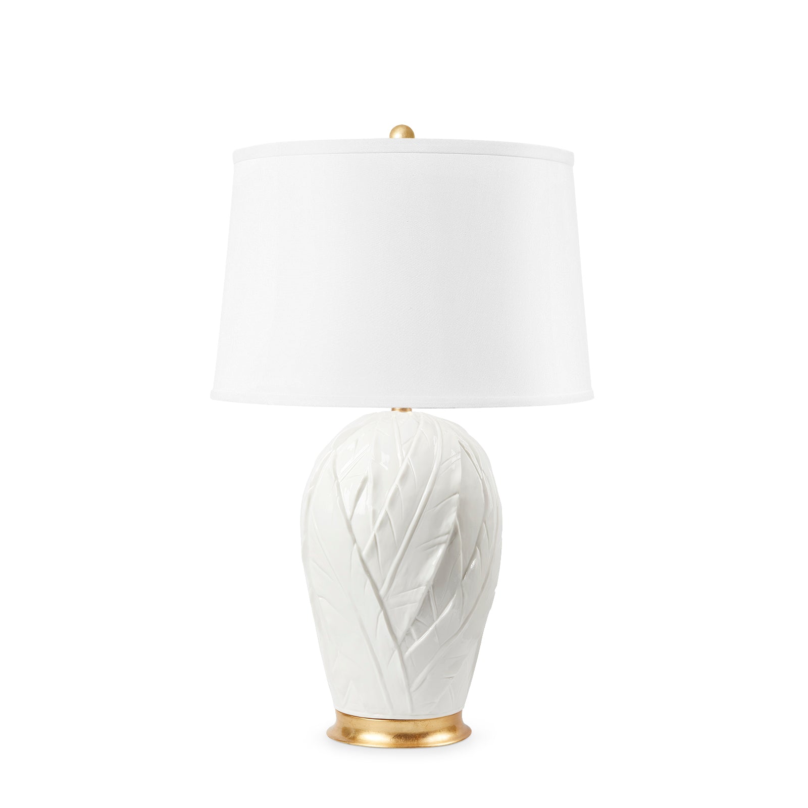 Tobacco Leaf Lamp with Shade 17-inch White Linen, with Gold - Blanc de Chine| Villa & House - TOC-800-422-109-WS - Blanc de Chine / 11" X 11" X 28" is backordered and will ship as soon as it is back in stock.