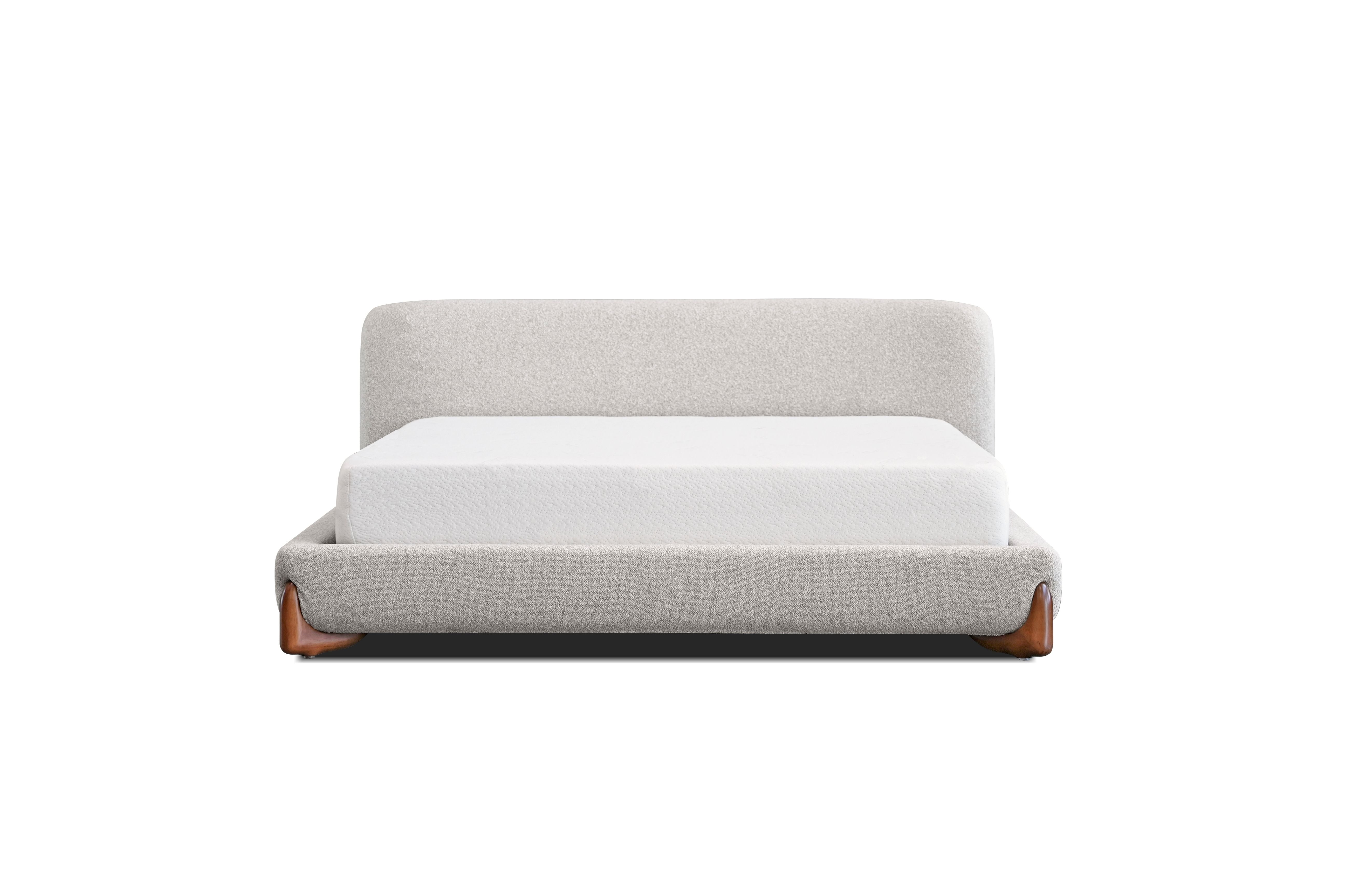 MESA Upholstered Bed King Oat Tweed Fabric / Walnut Legs | Mobital - BED-MESA-OATT-KING