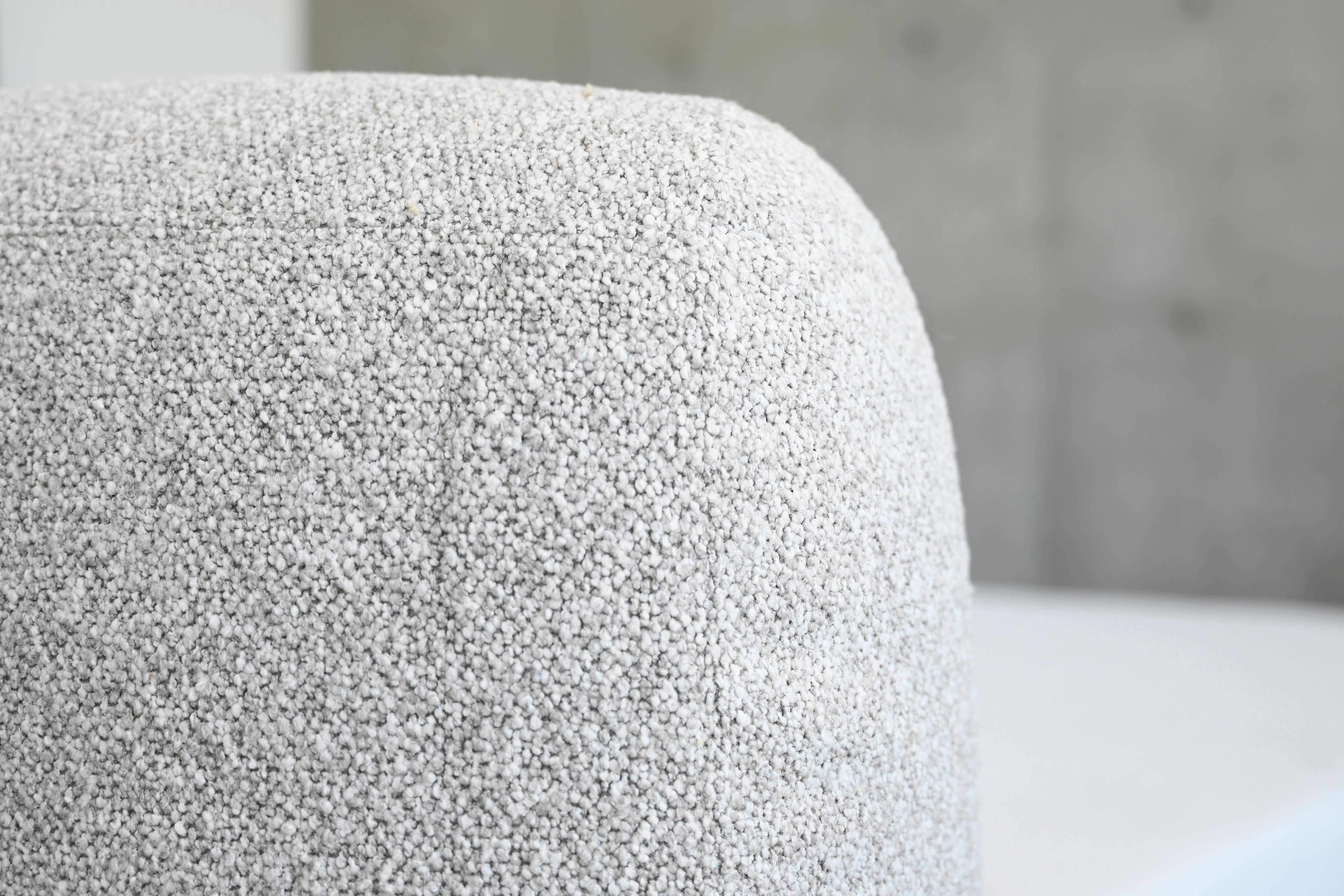The Mesa bed is upholstered in a nubbly oat tweed fabric which seamlessly merges classic design with contemporary appeal, its minimalist frame and headboard allow the distinctive walnut leg design to command attention. Available in both King and Queen.