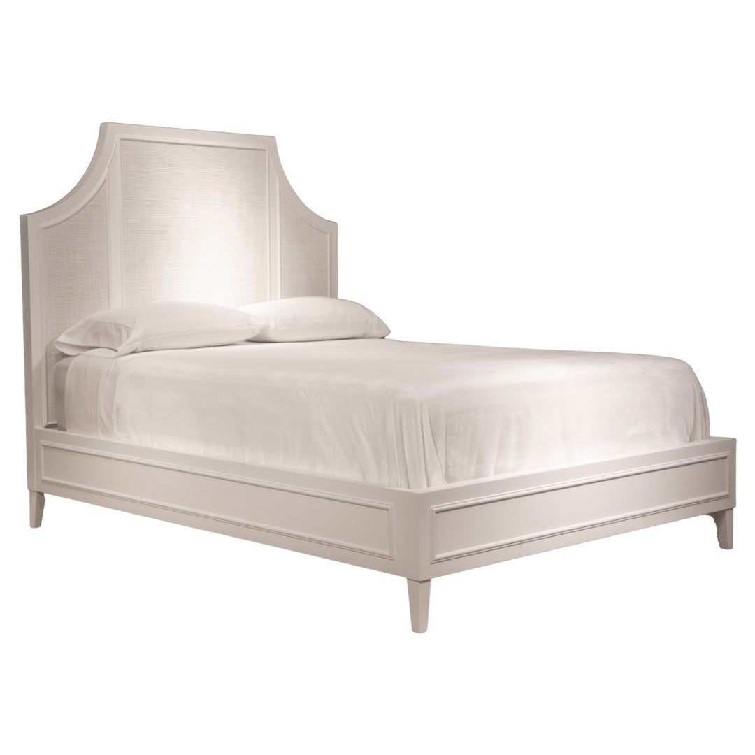 Our Ventura Queen Bed features a shaped headboard with a cane panel inlay, a bead trim on the headboard, and a bead trim panel on both the footboard and side rails