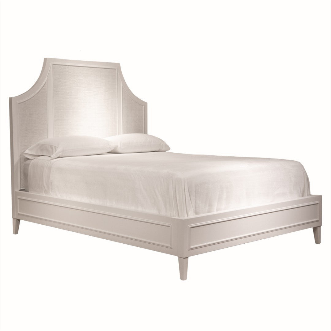 Our Ventura Twin Bed features a shaped headboard with a cane panel inlay, a bead trim on the headboard, and a bead trim panel on both the footboard and side rails