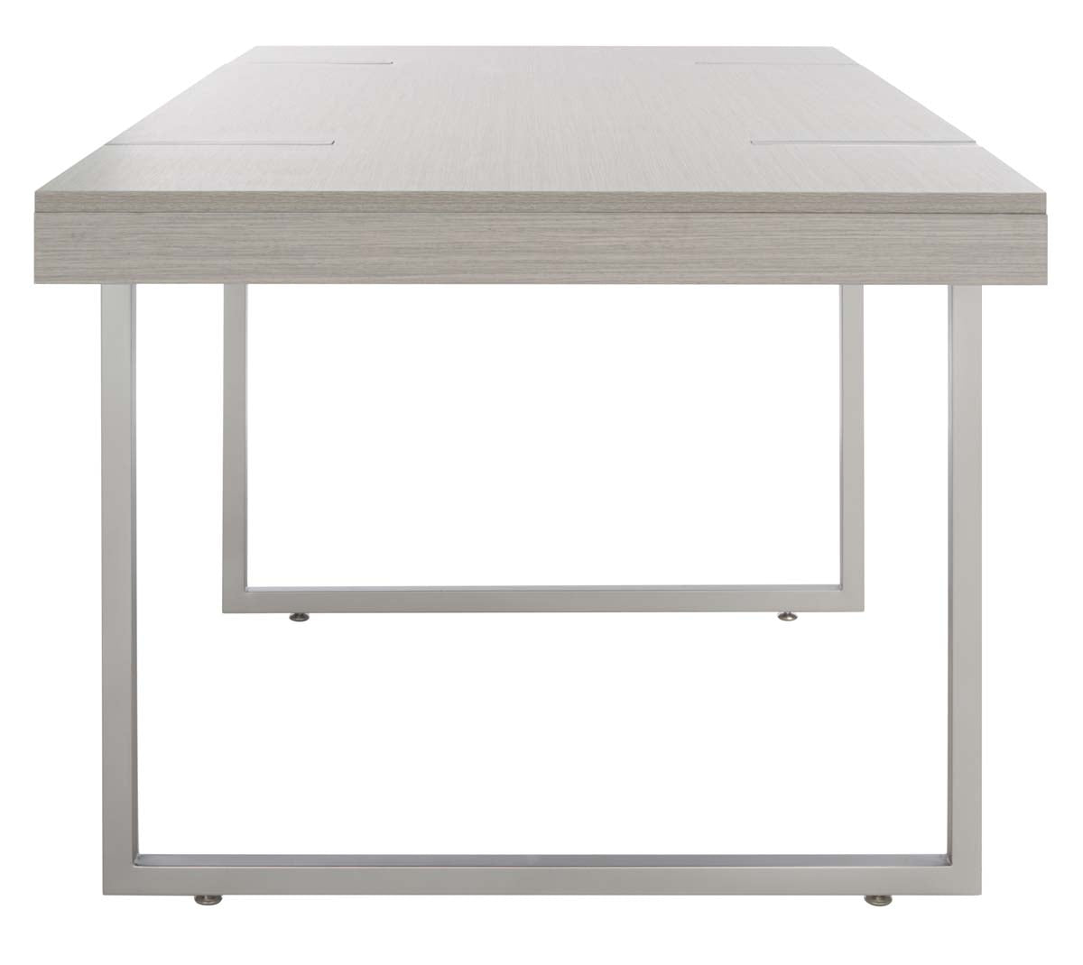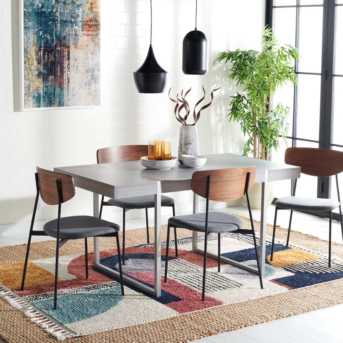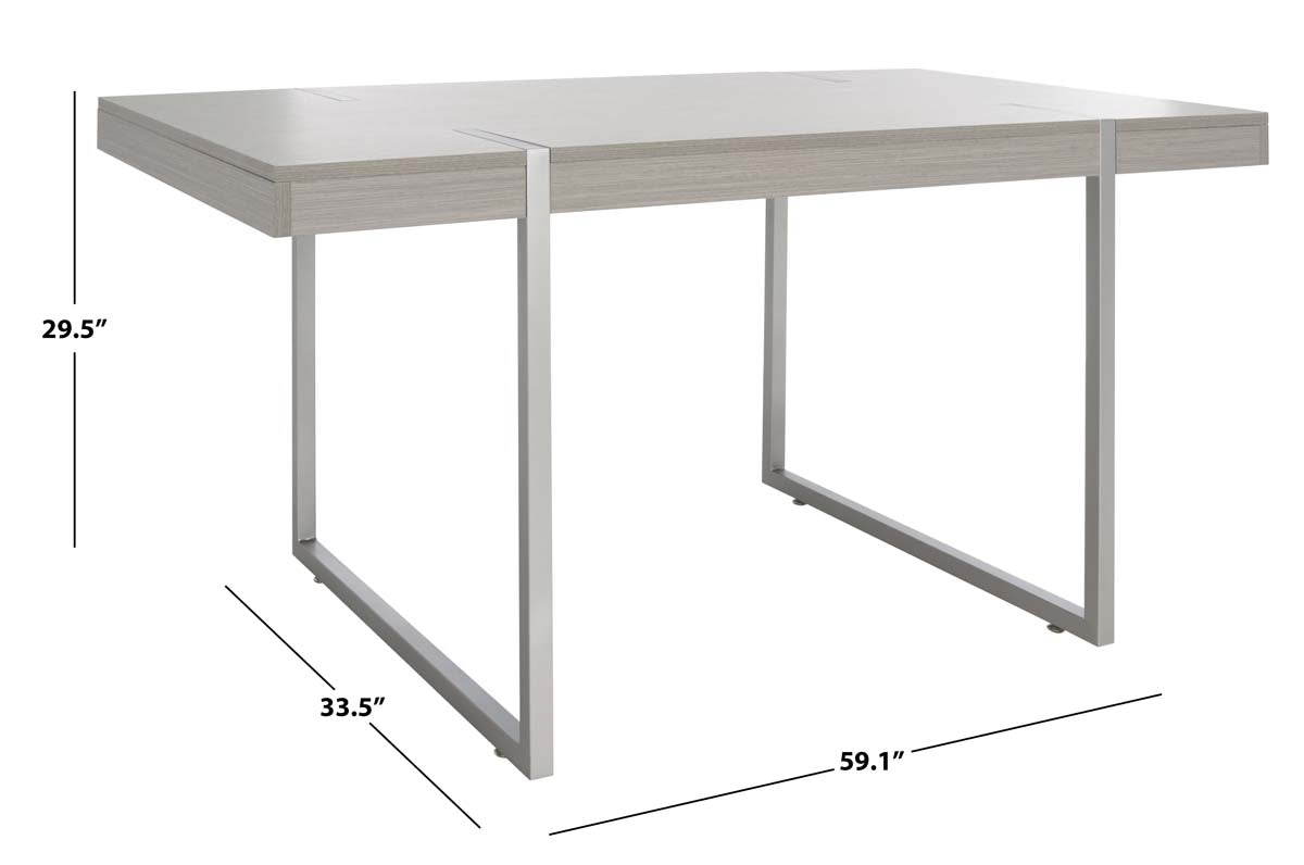 Embrace The Effortless Style And Charm Of Our Cael Dining Table. Defined By Clean And Crisp Lines, Our Dining Table Features A Thick Rectangular Tabletop. Its Silver Metallic Base Meets The Top To Serve As A Unique And Striking Design Feature. Our Dining Table Warms Up With The Rich Grains Of Wood, Finished Off In A Graceful Grey And Silver Color. Perfectly Harmonizing With A Silver Frame, The Stylish And Inviting Dining Table Can Comfortably Seat 4-6 People.