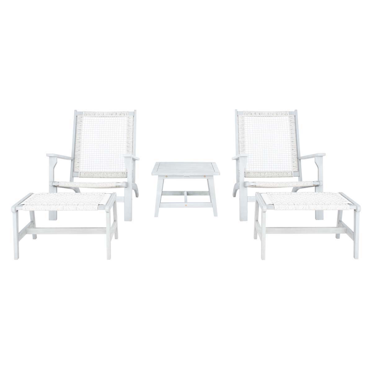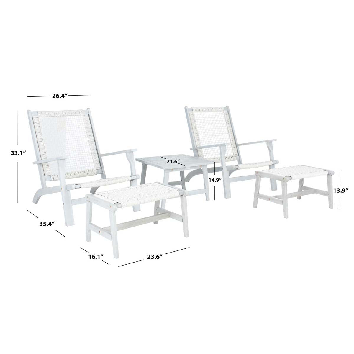 Bring the tropical resort to your own backyard with this coastal Chantelle Set. Chantelle's two low grey acacia seats and matching stools allow you to stretch out and lounge in luxury, and its end table is perfect for aperitifs or appetizers. Designers love Chantelle's complementary grey woven rattan.