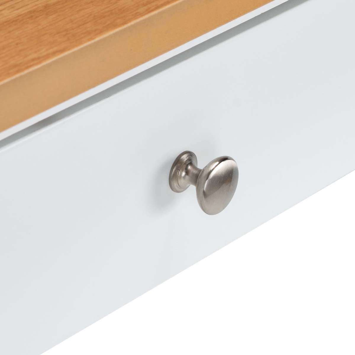 Often used as a miniature portable kitchen island, this Cohyn Kitchen Cart is a must-have for today's stylishly practical eating areas. Cohyn's two shelves and two drawers are ideal for produce, spices, or cutlery, and its chic pairing of white and natural wood finishes are decisively dynamic.